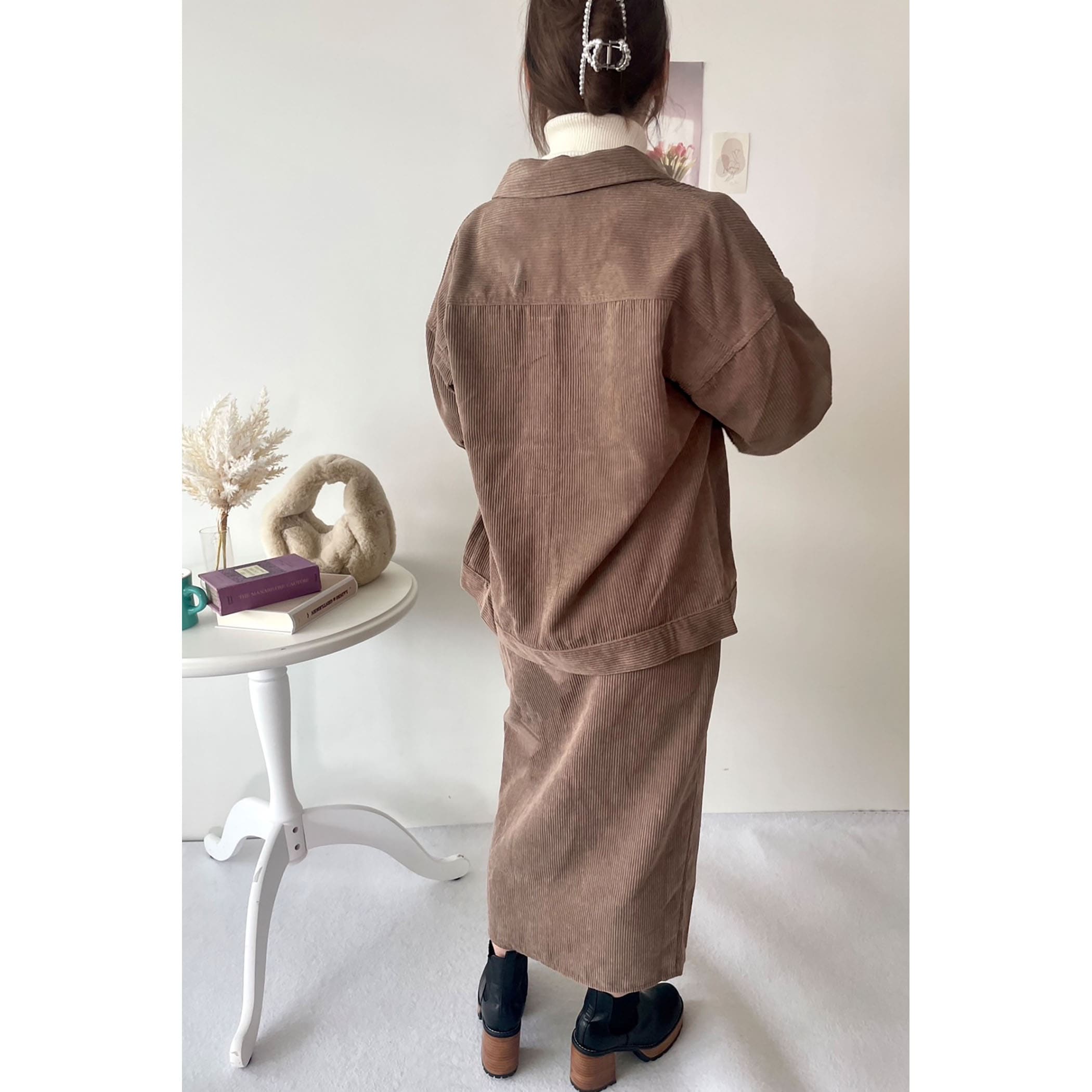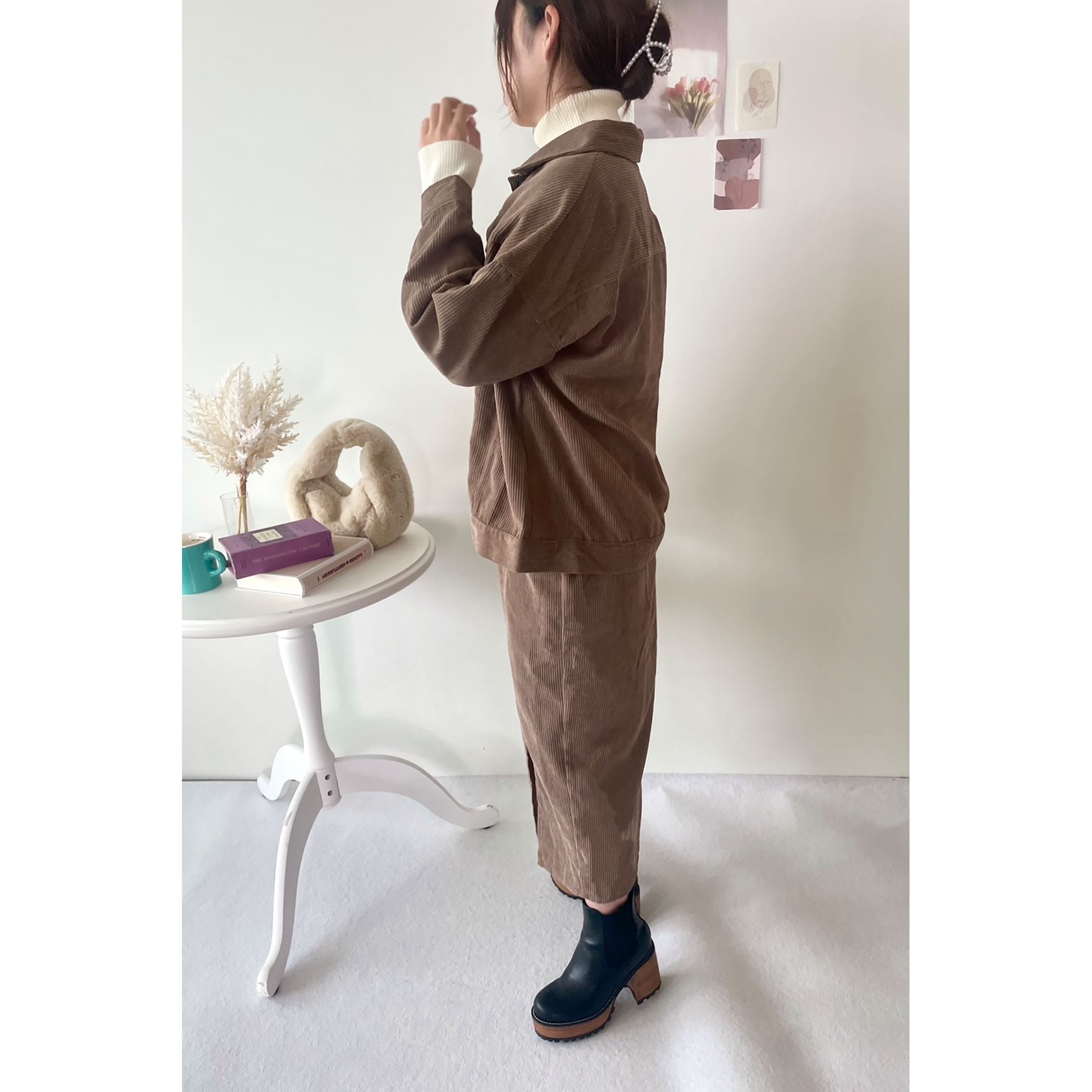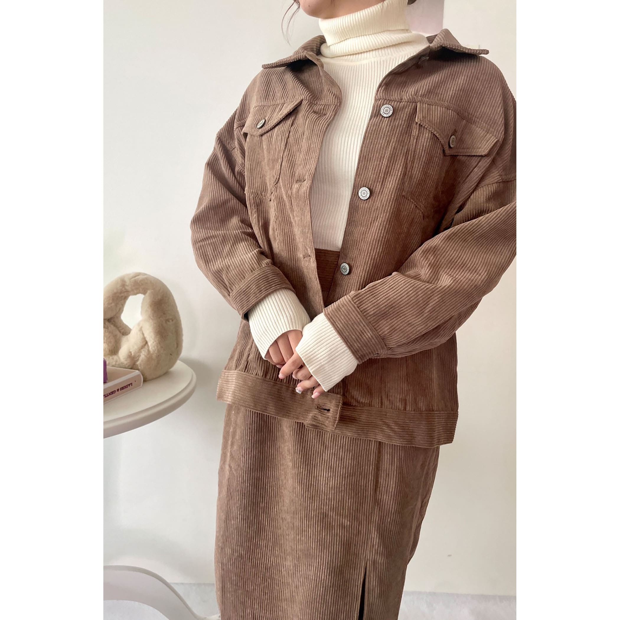 メンズライクなサイズ感がおしゃれなオーバーサイズのコーデュロイジャケット。ドロップショルダーでゆとりのあるシルエットが旬な着こなしを演出。パンツにもスカートにも合わせやすいアイテムなので、ワードローブに加えていただきたい一枚です。