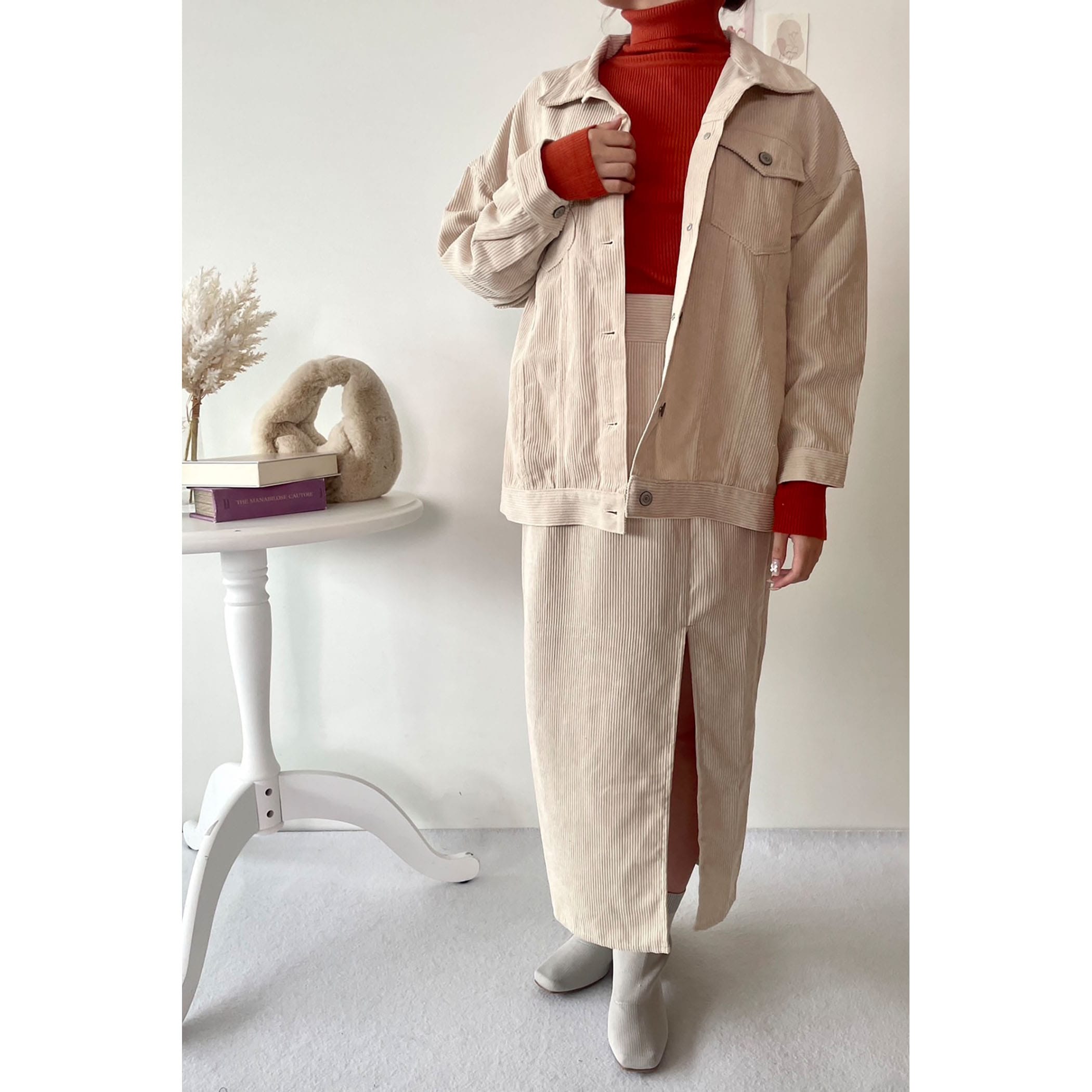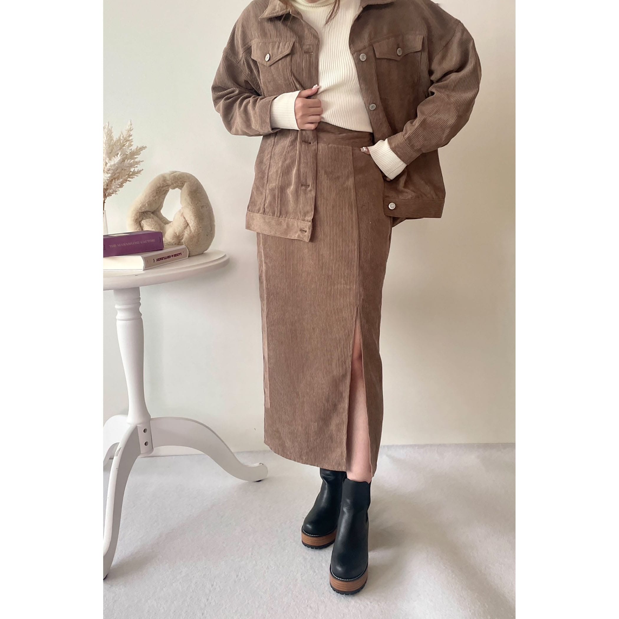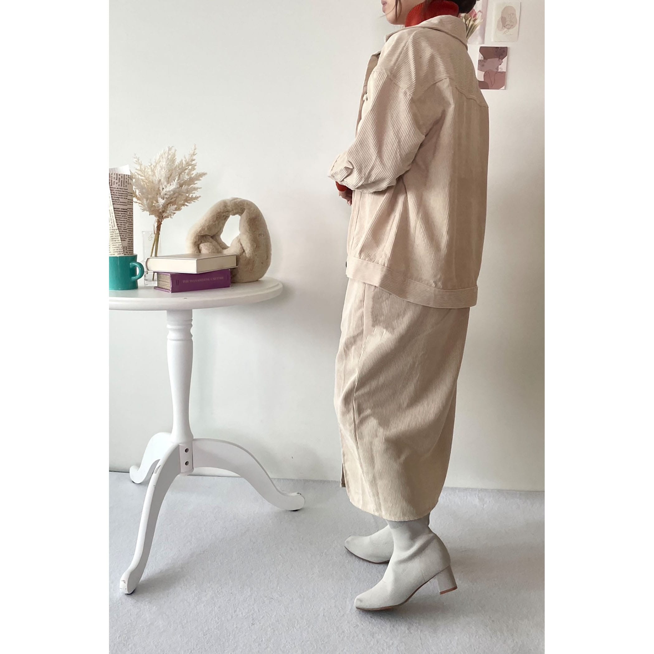メンズライクなサイズ感がおしゃれなオーバーサイズのコーデュロイジャケット。ドロップショルダーでゆとりのあるシルエットが旬な着こなしを演出。パンツにもスカートにも合わせやすいアイテムなので、ワードローブに加えていただきたい一枚です。
