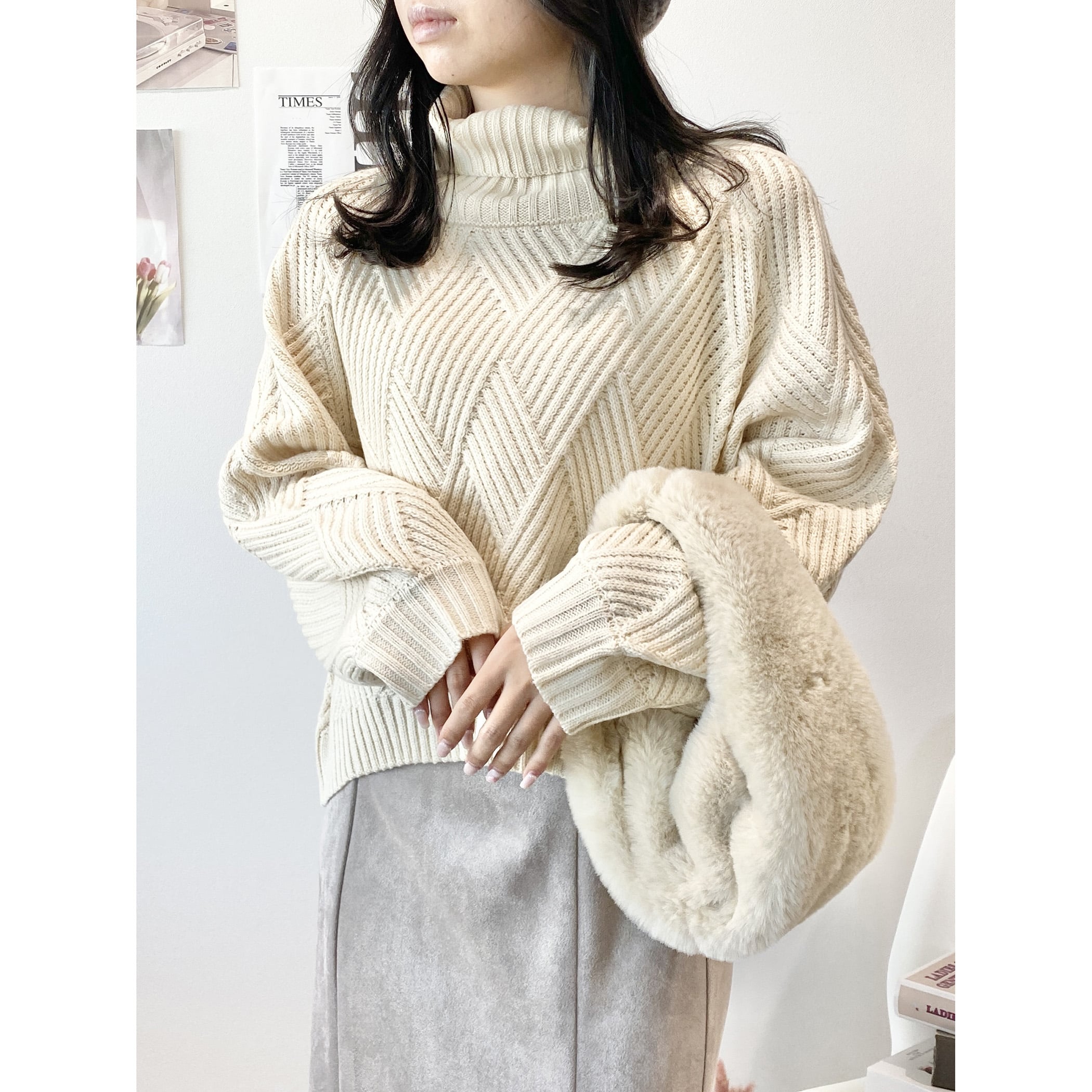 3011423 柄編みタートルネックショート丈ボリューム袖ニット | ニット | CECIL McBEE(セシルマクビー) | ミーコレクト公式オンラインストア | Mecollect ONLINE STORE | セシルマクビー(CECIL McBEE)