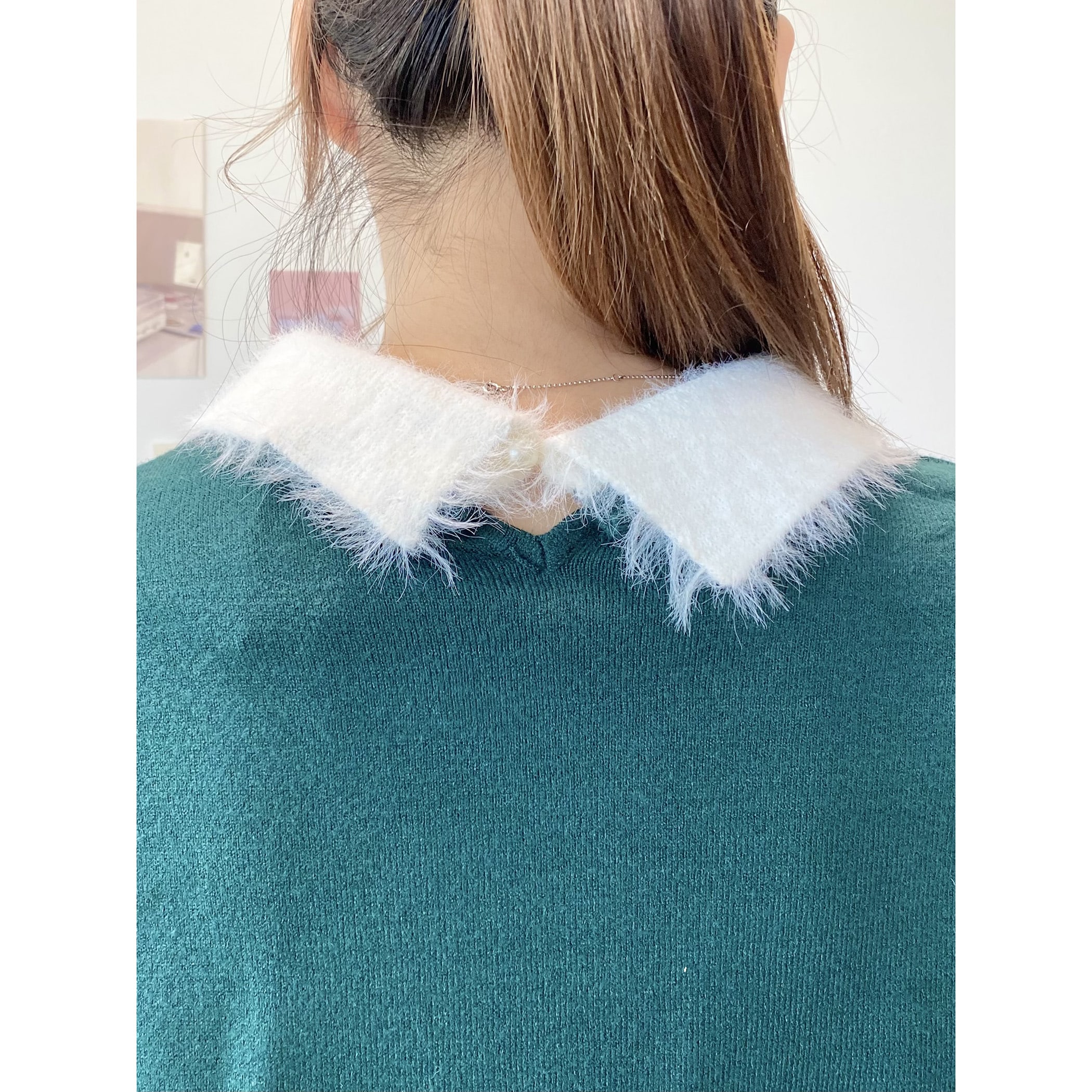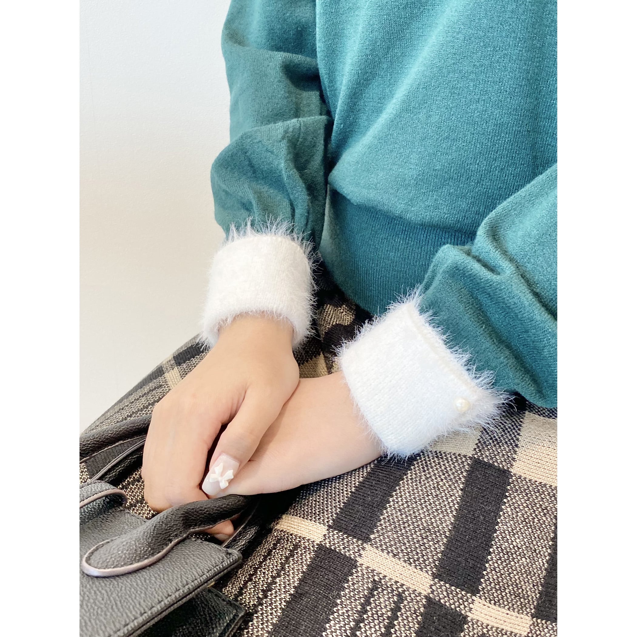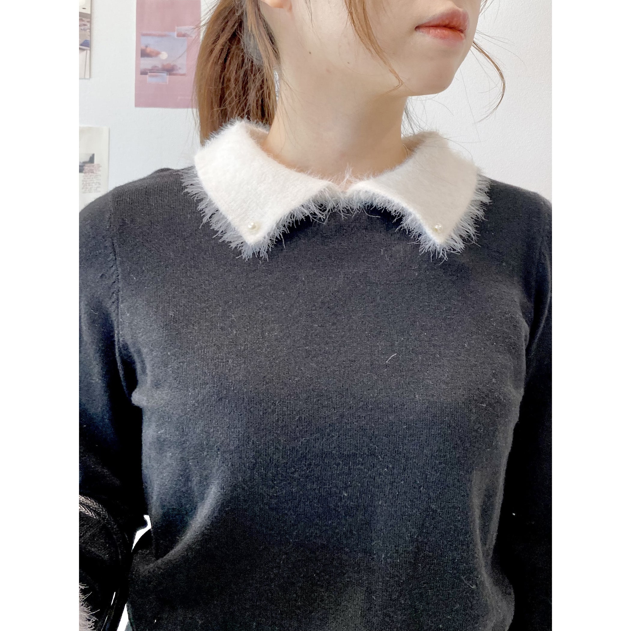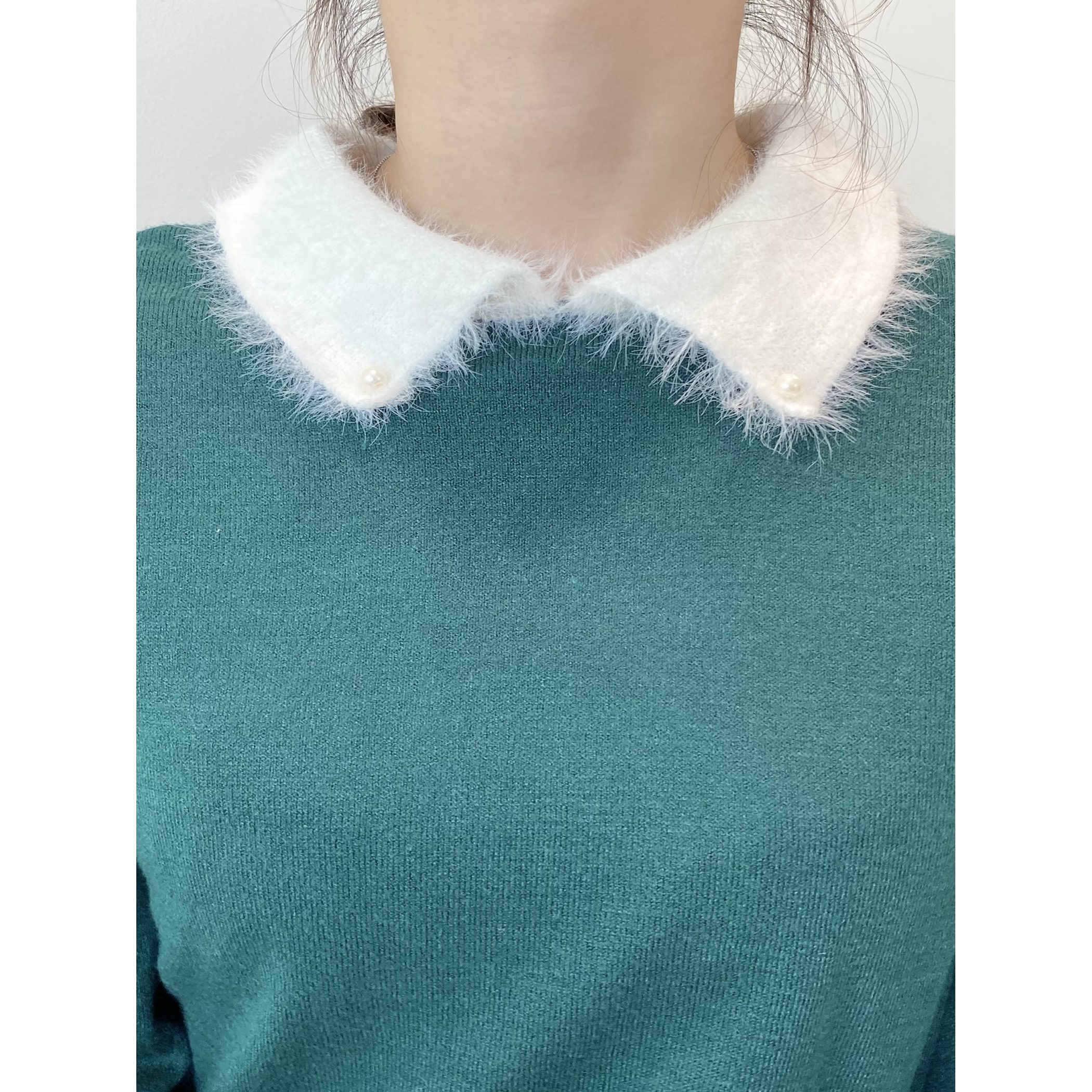 ファーの襟とカフスが大人可愛いプルオーバー。襟のさりげないパールもポイント。ボトムスを選ばないのでスカートで女性らしく、デニムでカジュアルダウンするのもオススメです◎