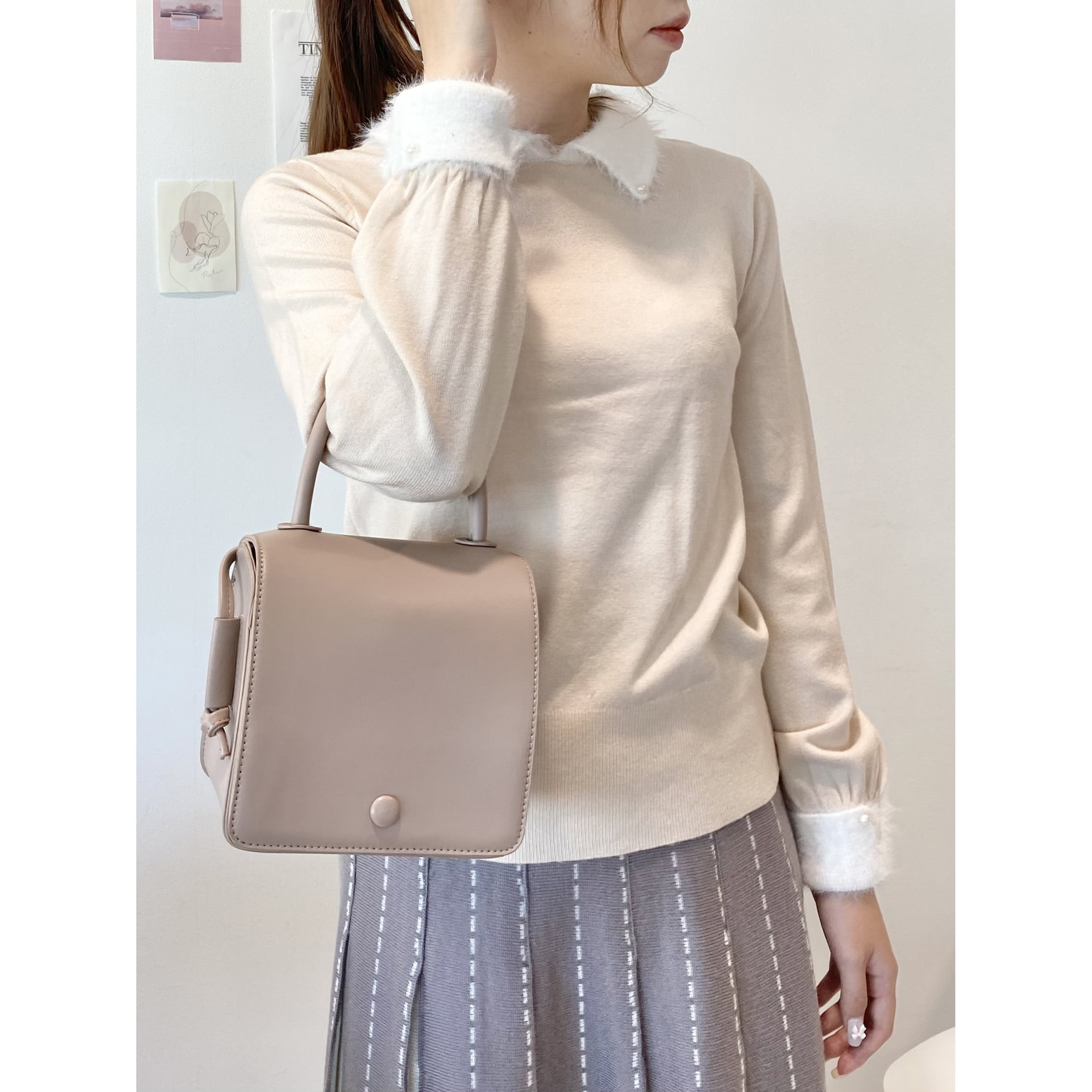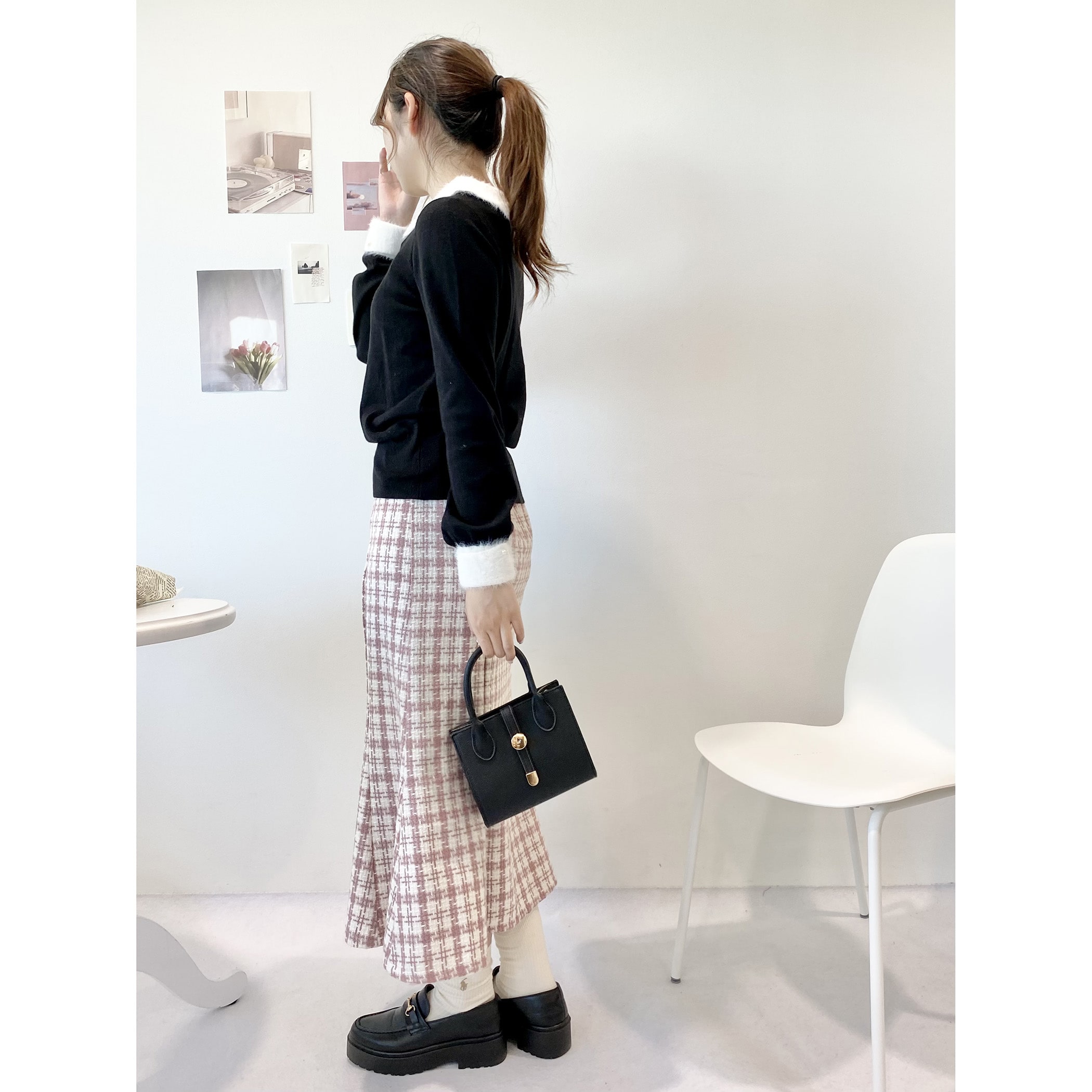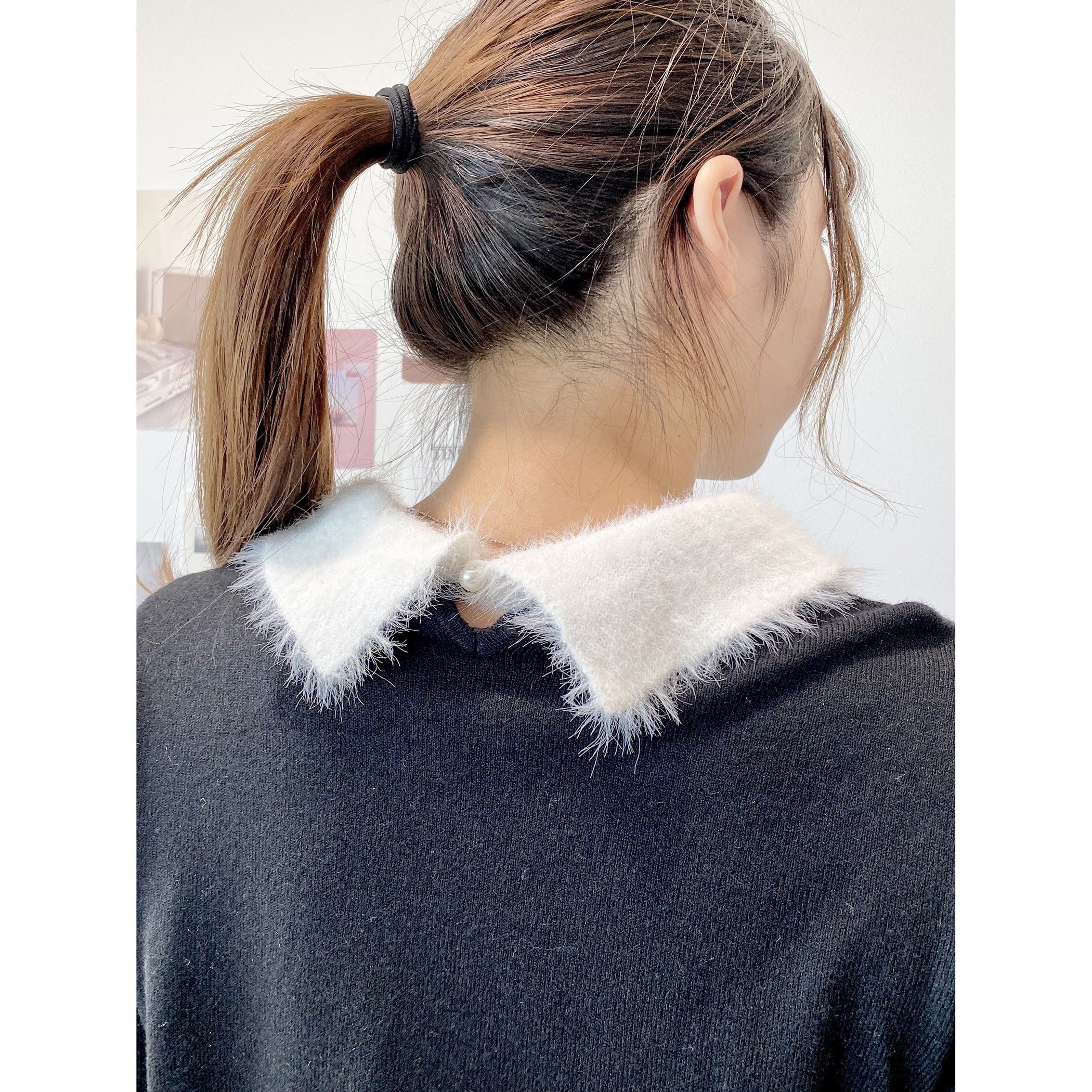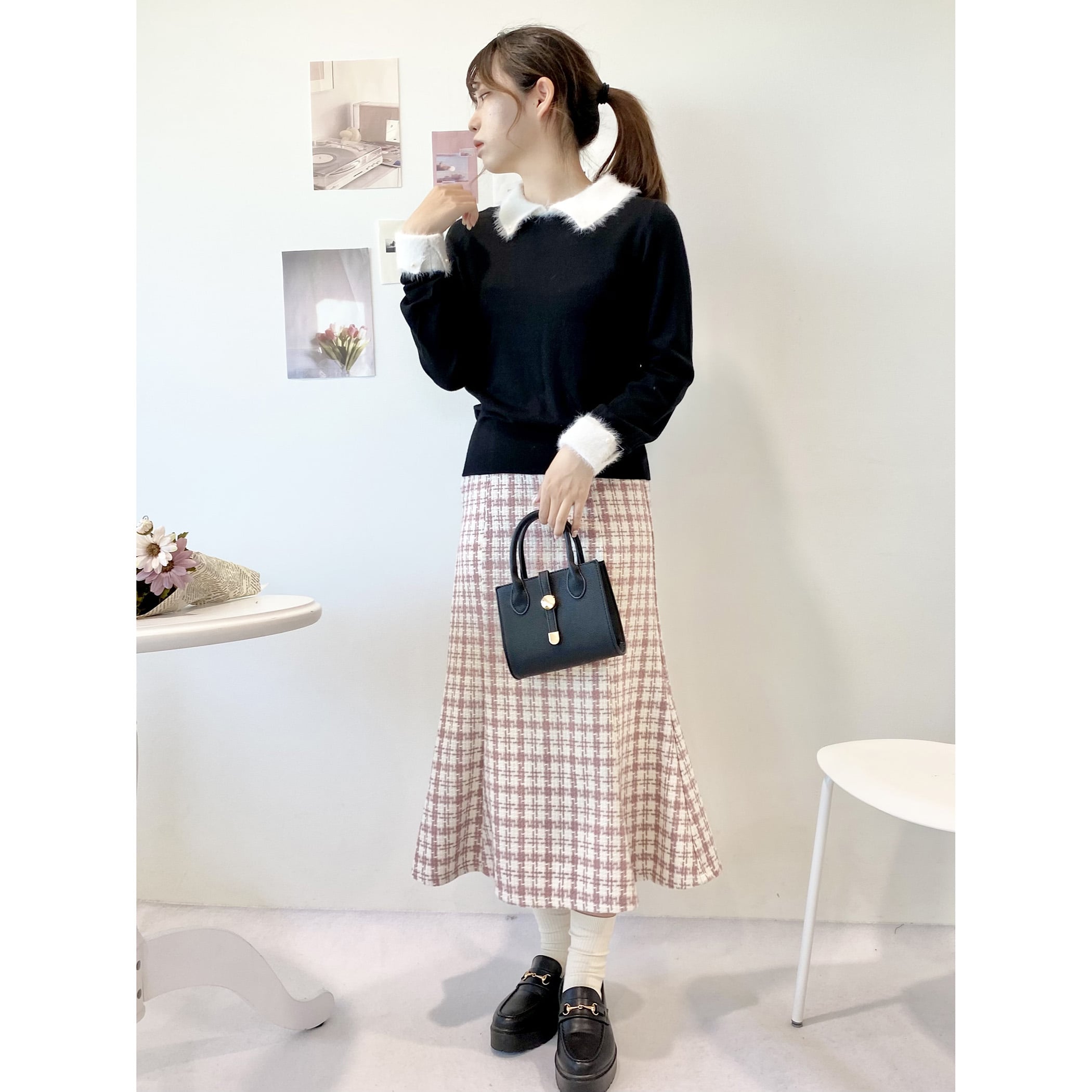 ファーの襟とカフスが大人可愛いプルオーバー。襟のさりげないパールもポイント。ボトムスを選ばないのでスカートで女性らしく、デニムでカジュアルダウンするのもオススメです◎