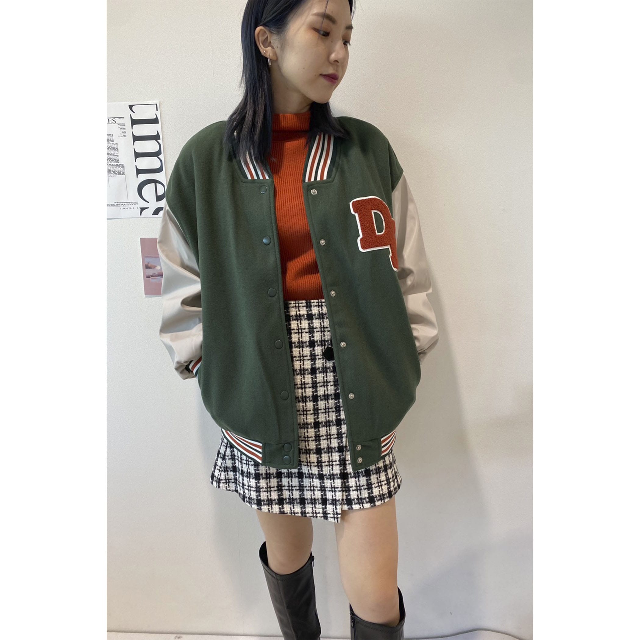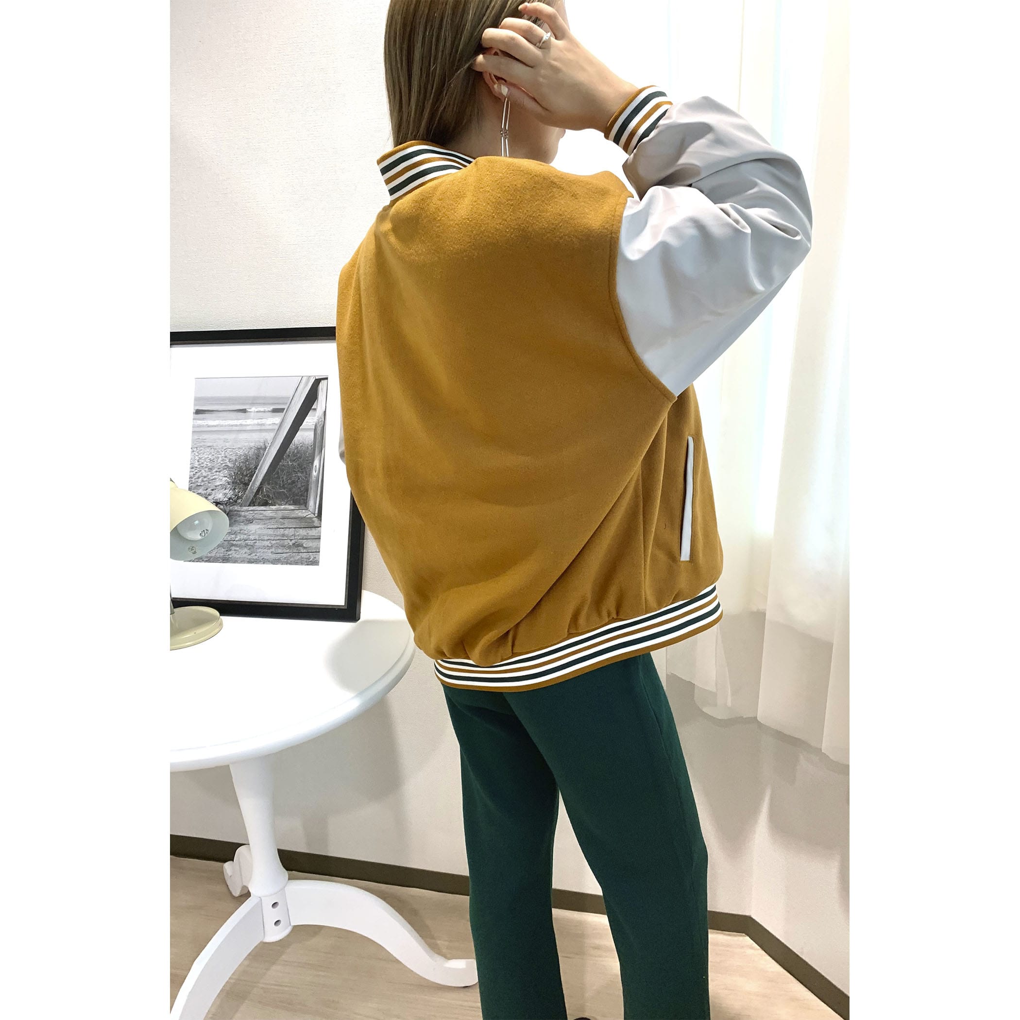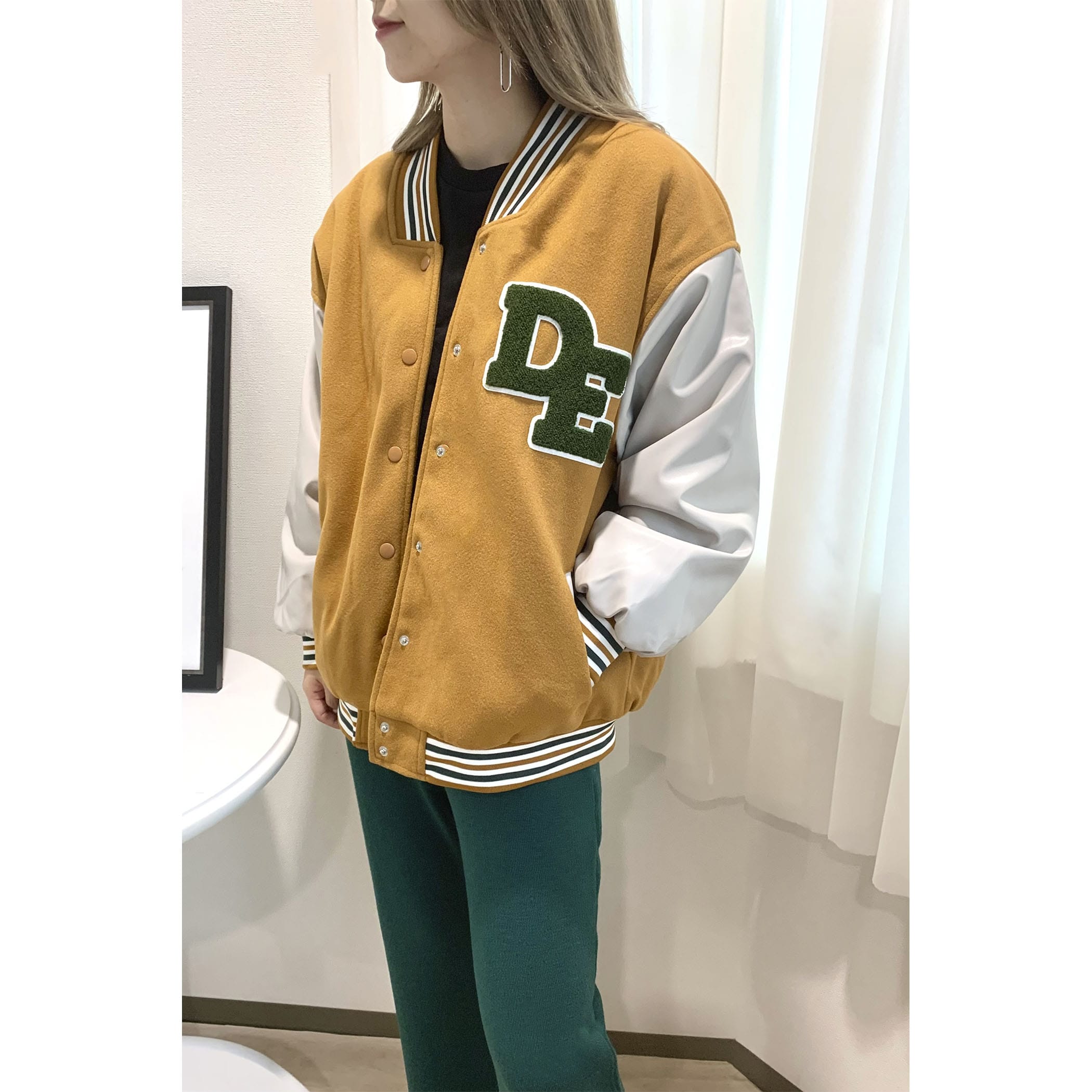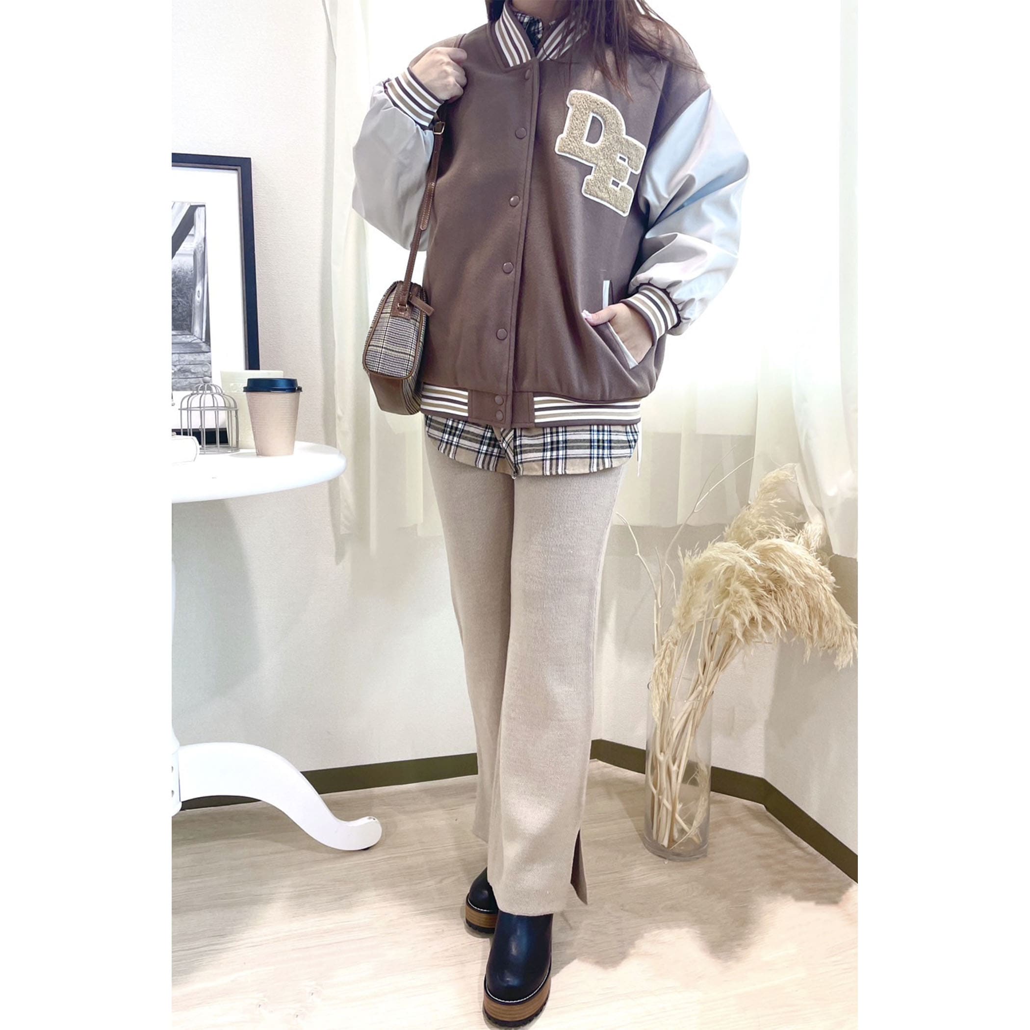 カジュアルコーデには欠かせないワッペン付きスタジャン。袖のエコレザーの切替がスタイリッシュかつ、中綿仕様なので防寒対策も◎。ドロップショルダーで大きめのシルエットなので、ゆるめのトップスを着ても窮屈に感じにくくメンズライクかつユニセックスな印象を与えてくれます。裾と袖口がリブで絞られているのでシルエットにメリハリを持たせていて、着膨れすることなく着用いただけます。