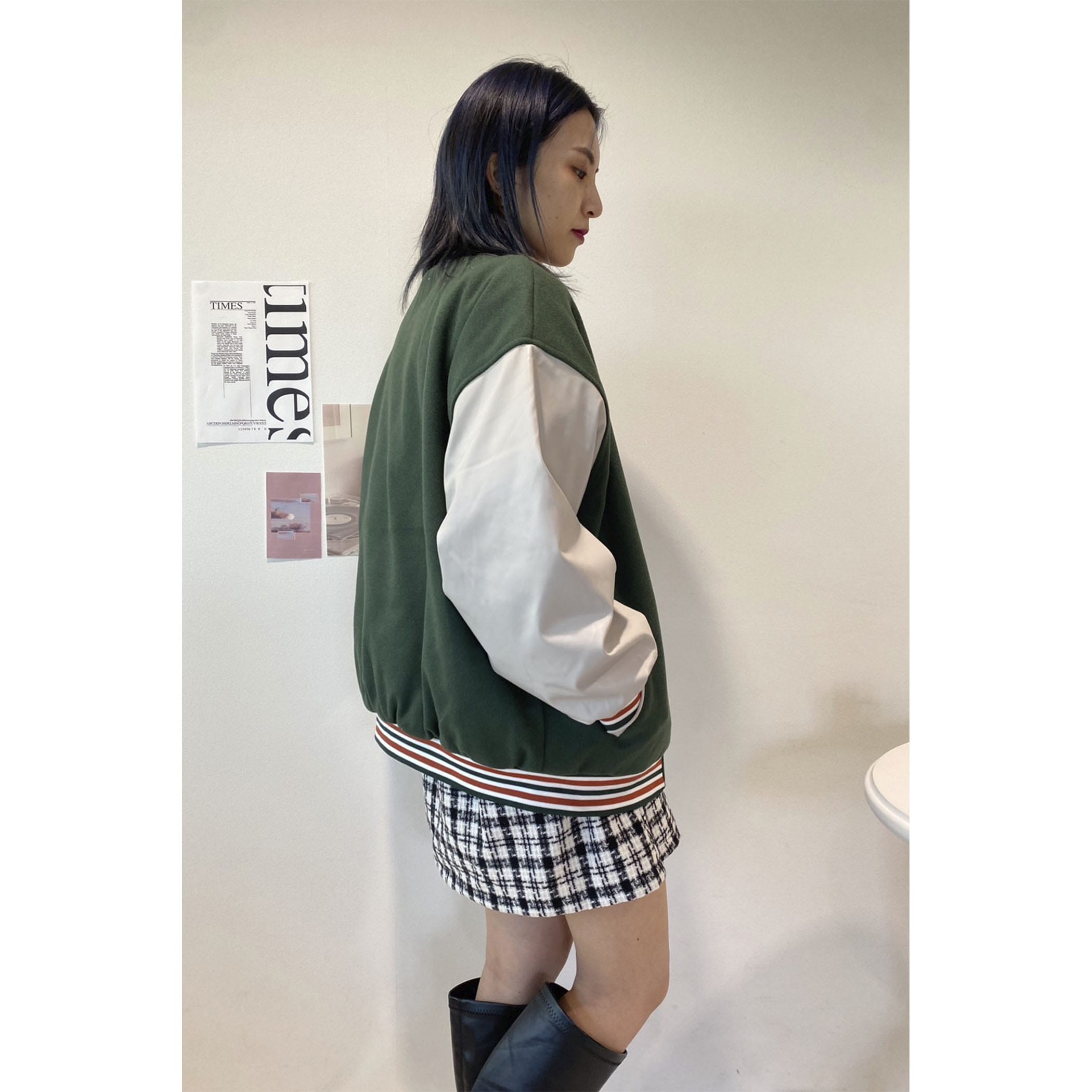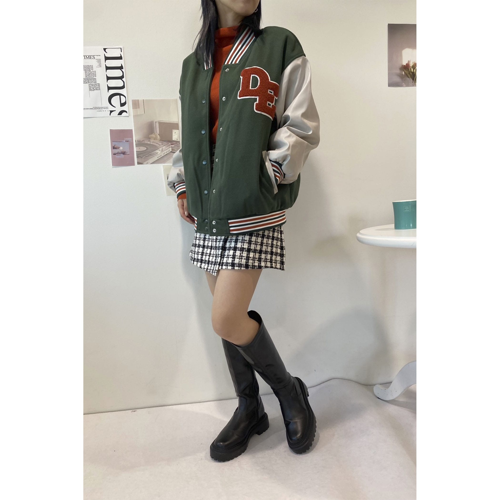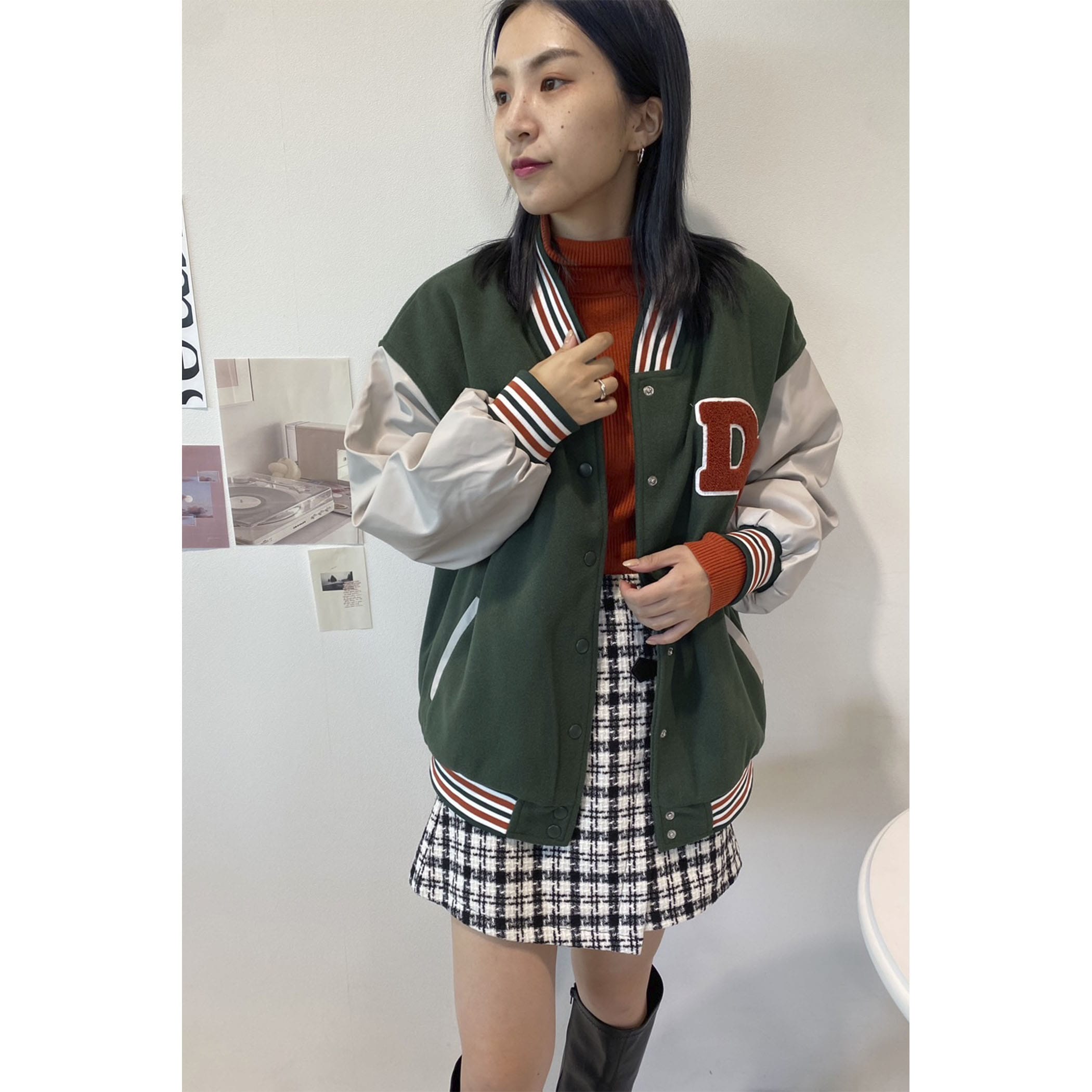 カジュアルコーデには欠かせないワッペン付きスタジャン。袖のエコレザーの切替がスタイリッシュかつ、中綿仕様なので防寒対策も◎。ドロップショルダーで大きめのシルエットなので、ゆるめのトップスを着ても窮屈に感じにくくメンズライクかつユニセックスな印象を与えてくれます。裾と袖口がリブで絞られているのでシルエットにメリハリを持たせていて、着膨れすることなく着用いただけます。