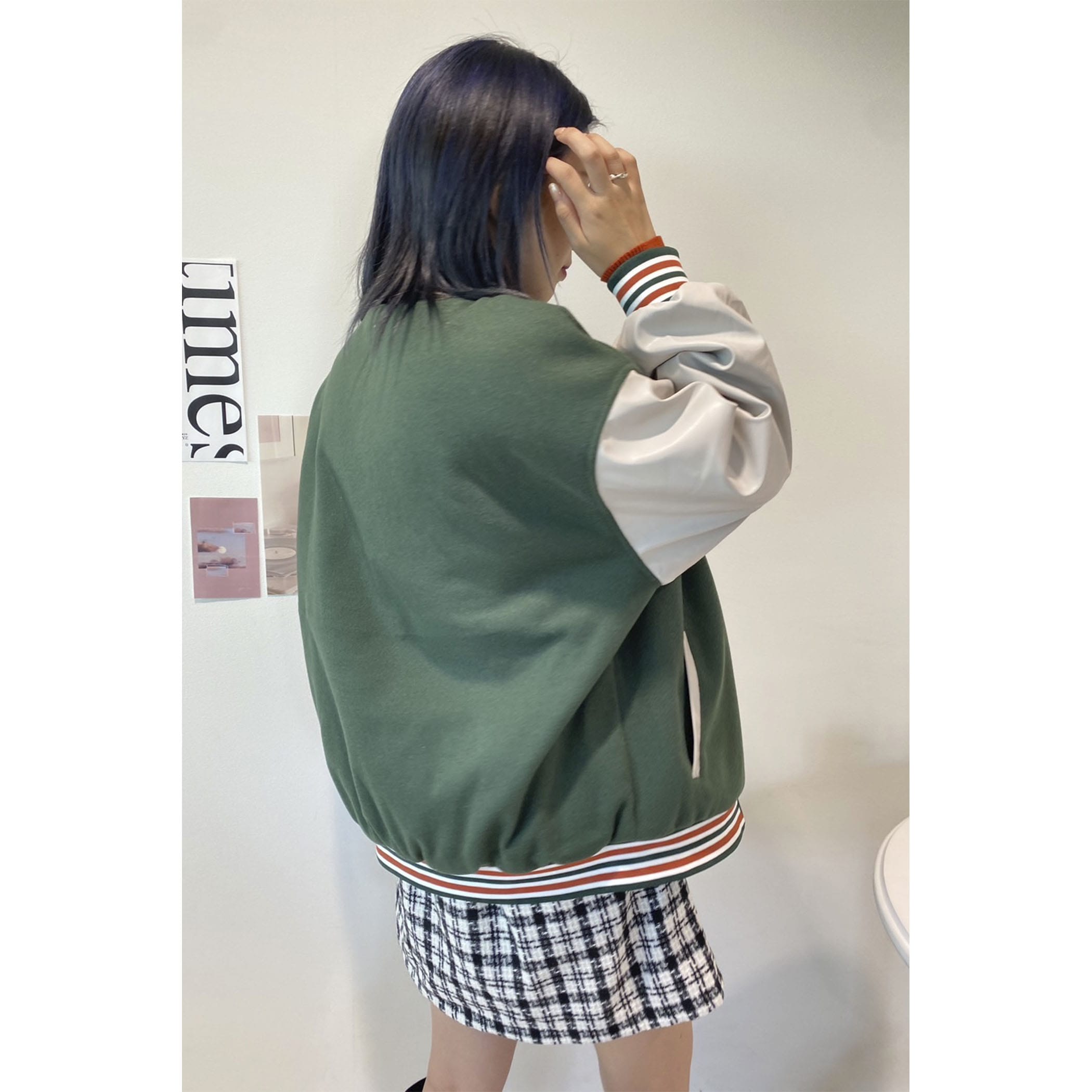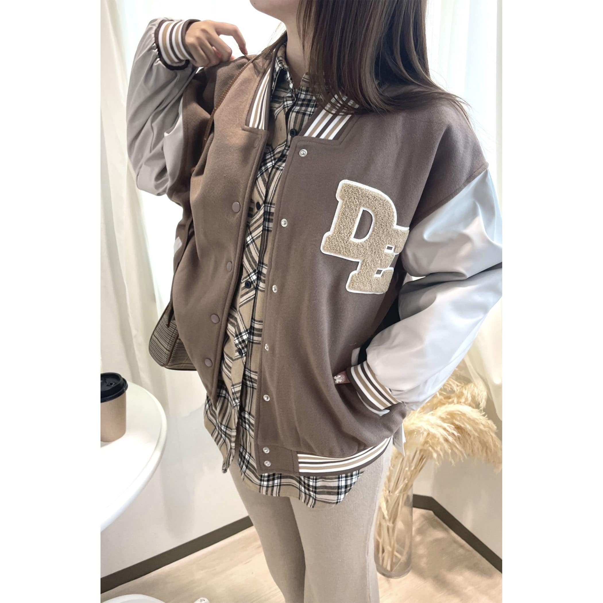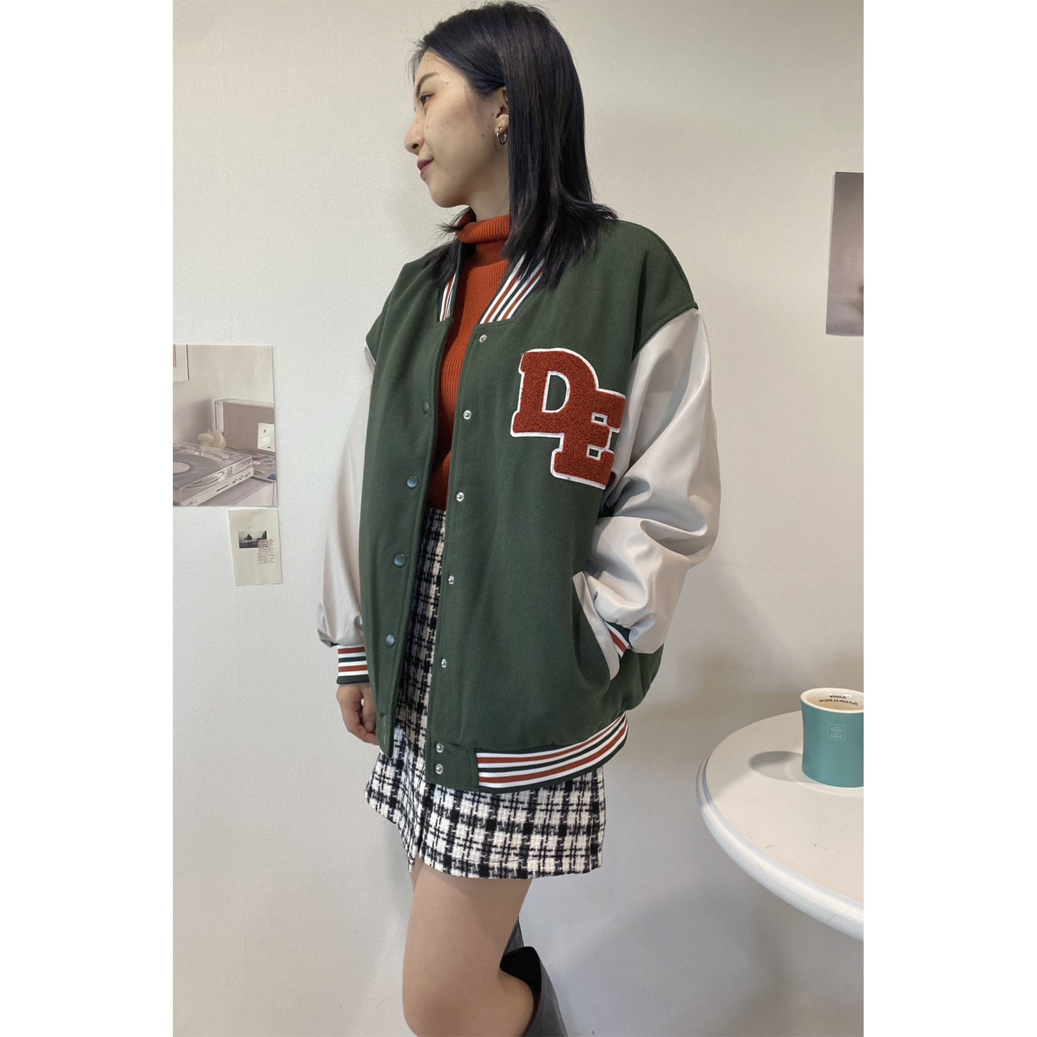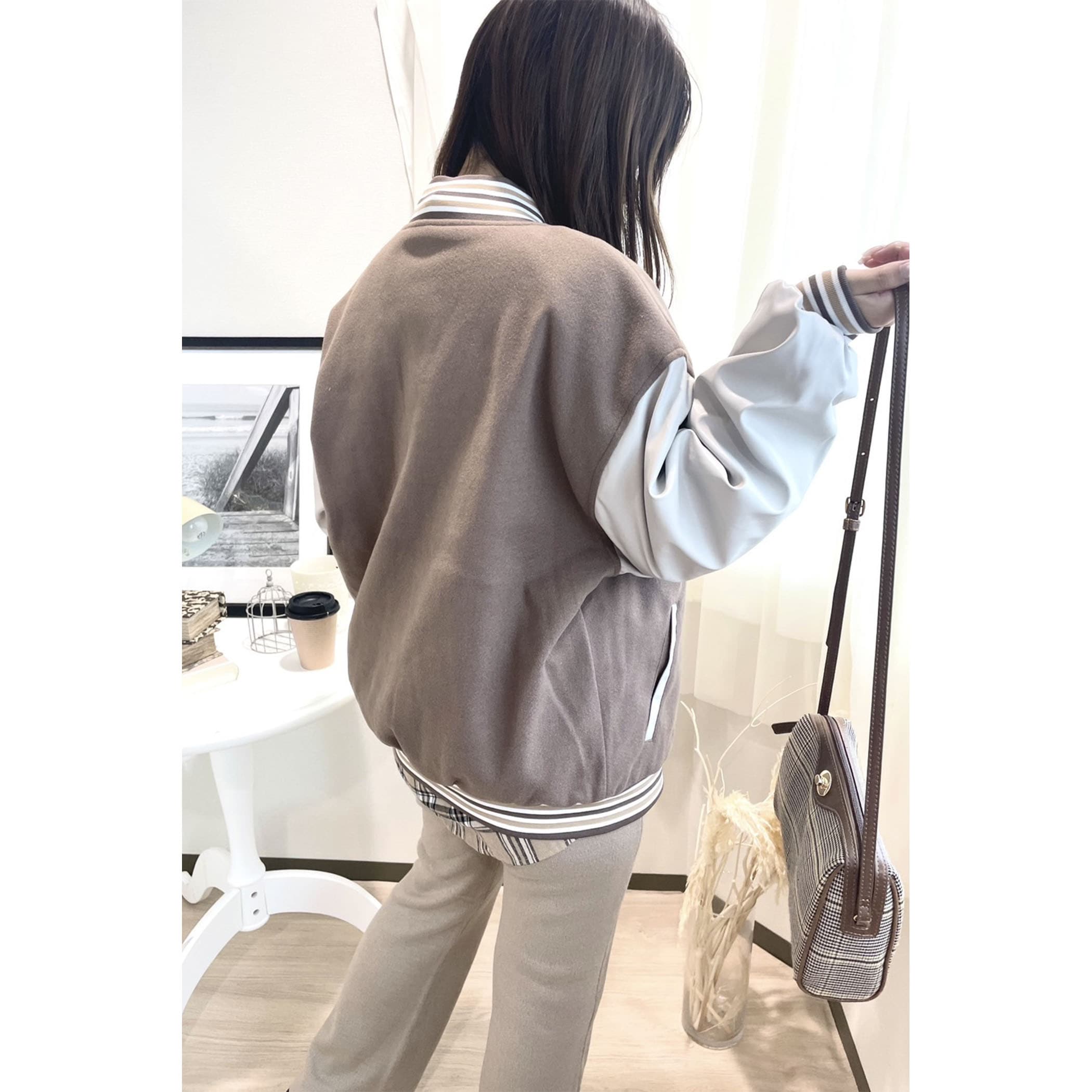 カジュアルコーデには欠かせないワッペン付きスタジャン。袖のエコレザーの切替がスタイリッシュかつ、中綿仕様なので防寒対策も◎。ドロップショルダーで大きめのシルエットなので、ゆるめのトップスを着ても窮屈に感じにくくメンズライクかつユニセックスな印象を与えてくれます。裾と袖口がリブで絞られているのでシルエットにメリハリを持たせていて、着膨れすることなく着用いただけます。