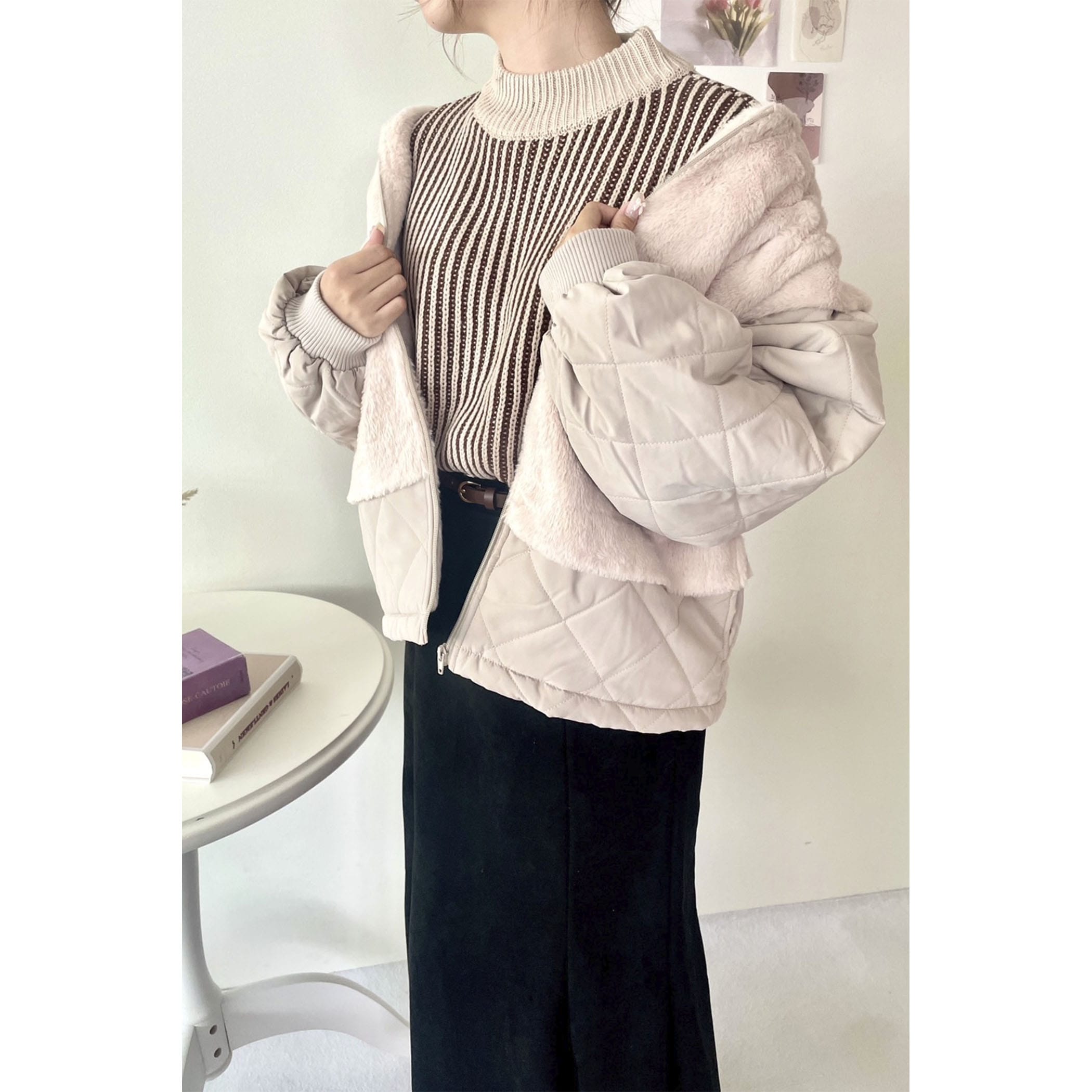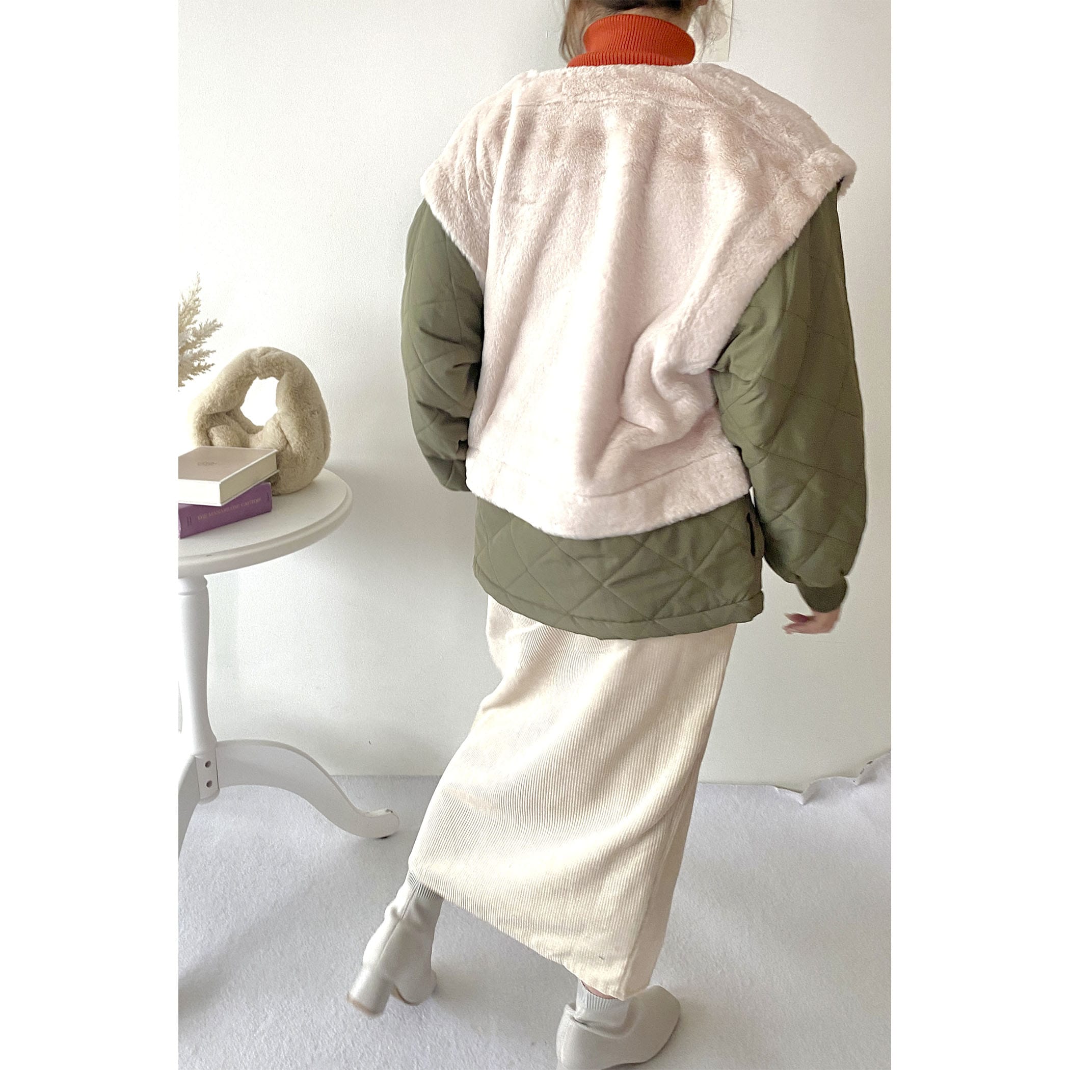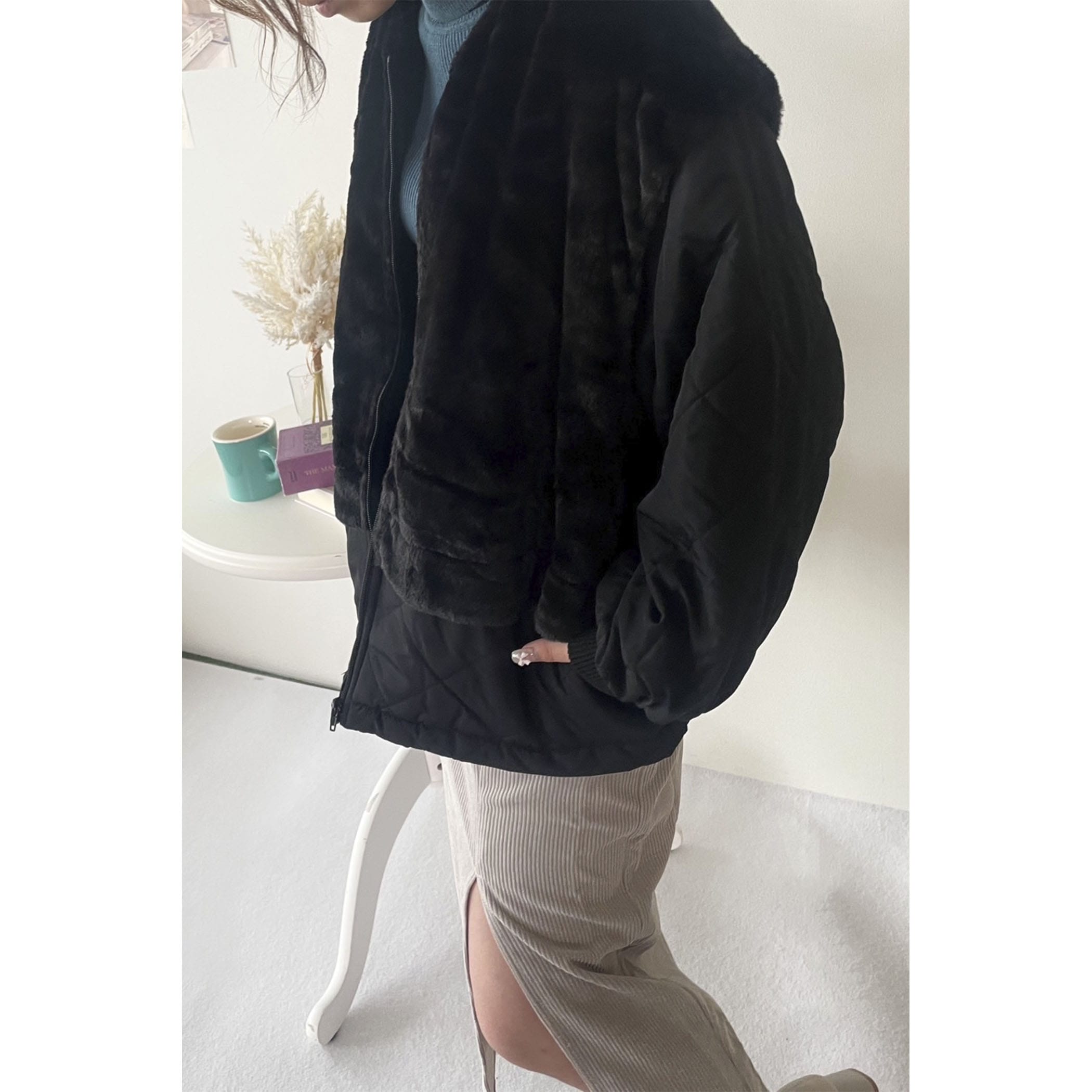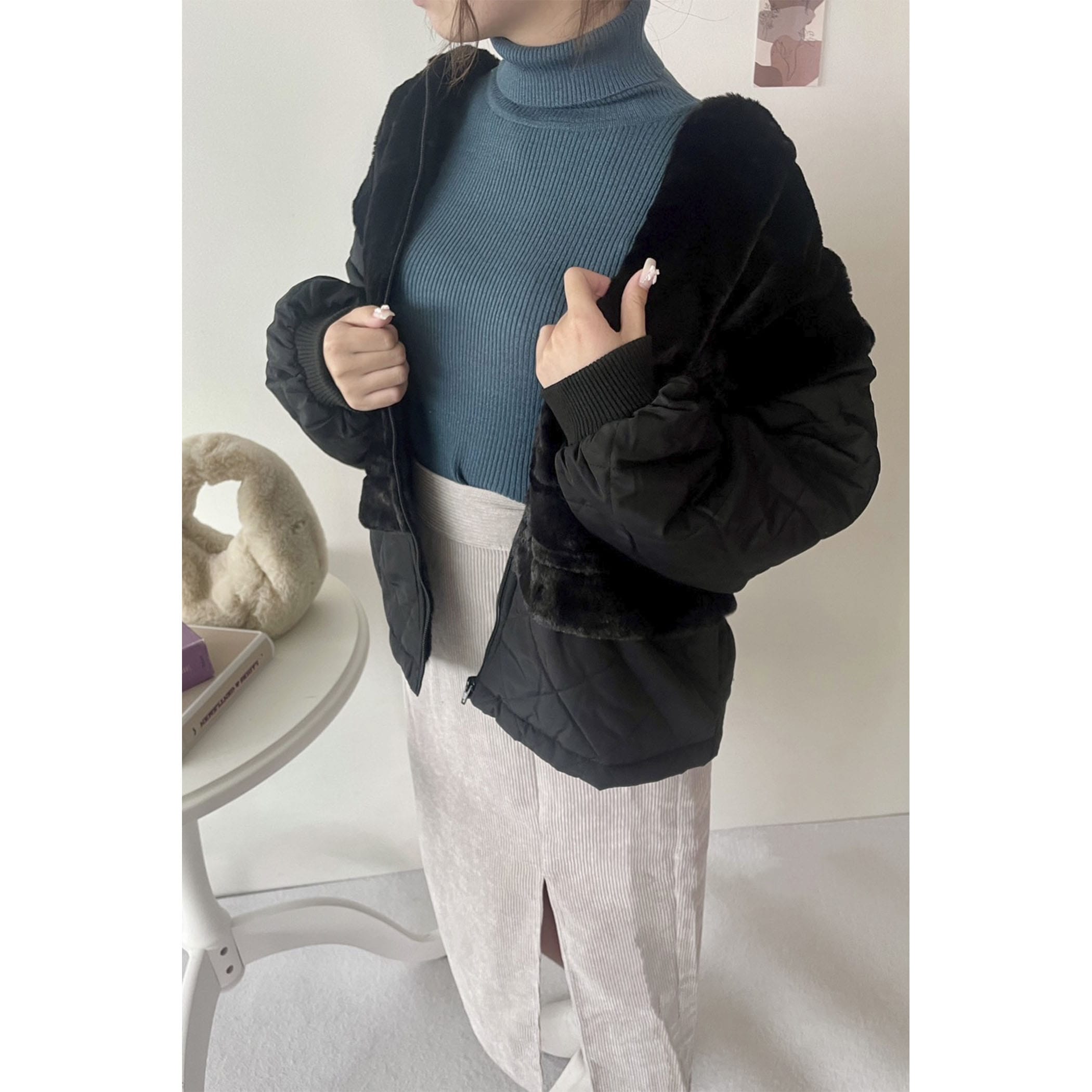 キルトアウターとベストがレイヤードされたようなトレンドライクな中綿アウター。カジュアルな印象のアイテムですが、マーメイドスカートやワンピース・フレアボトムとも相性のいい一枚です。衿ぐりがVネックなのでタートネックのアイテムとあわせてレイヤードスタイルも楽しめます。