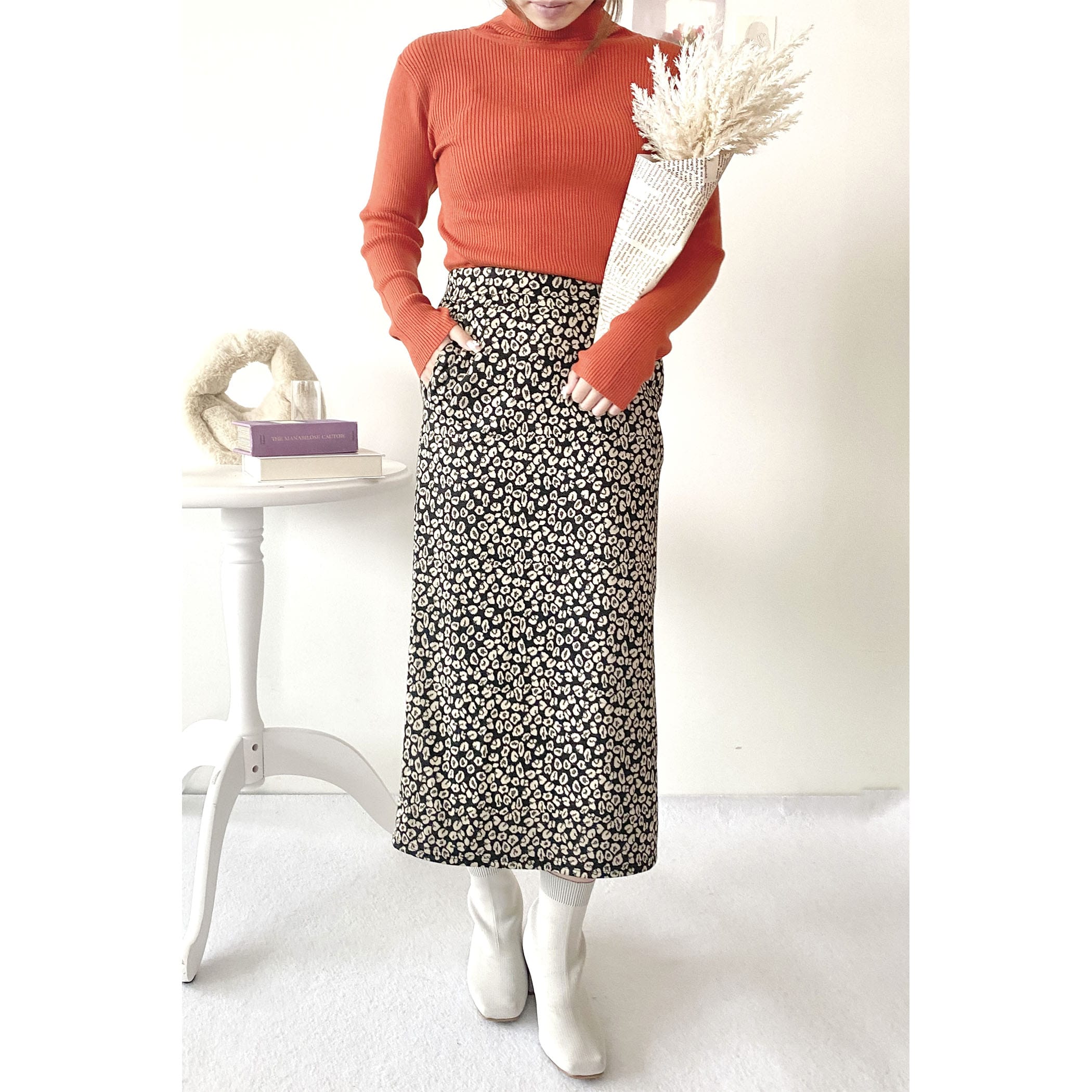 トレンドのヒョウ柄は主張しすぎないカラーでコーディネートしやすく、主役になってくれるナロースカートです!