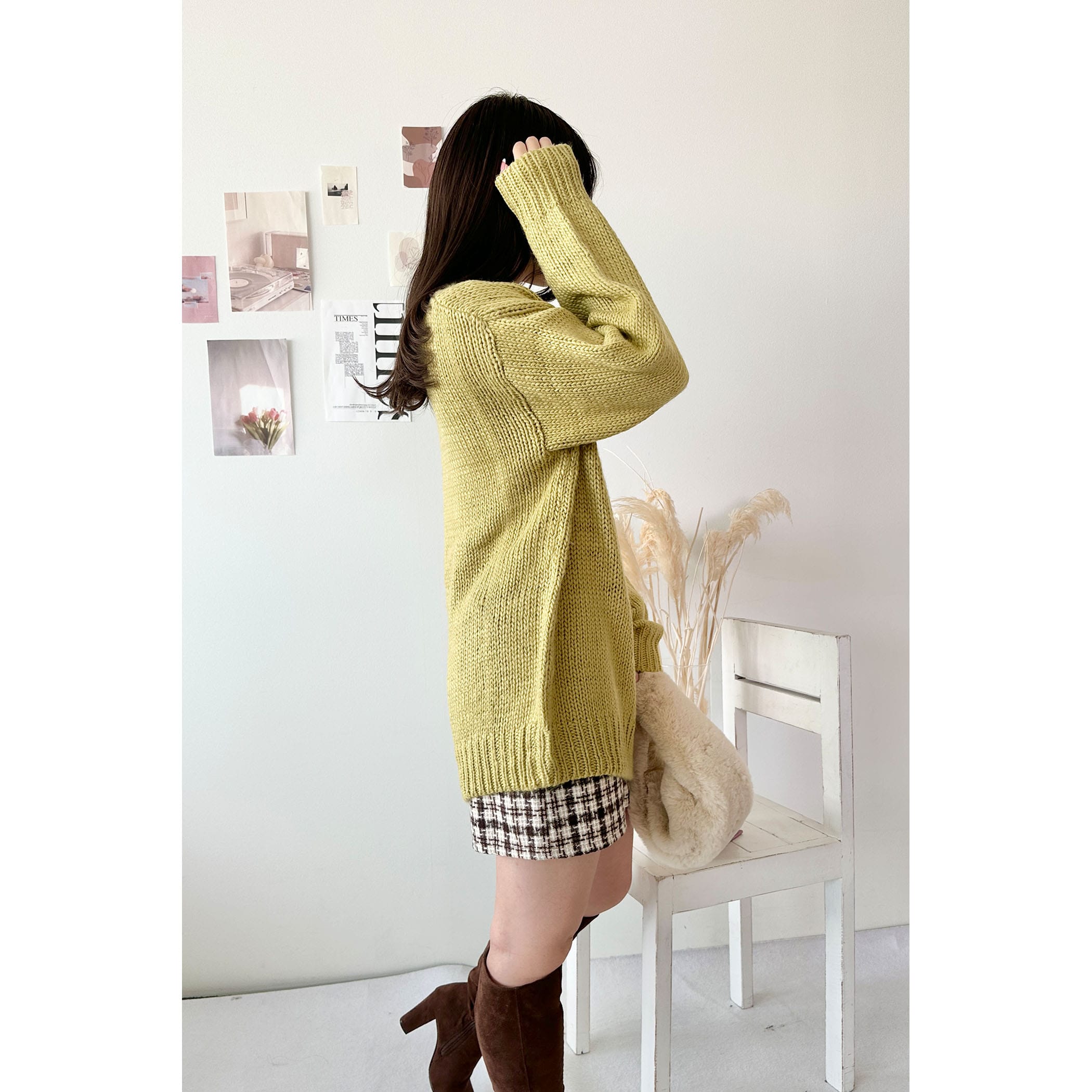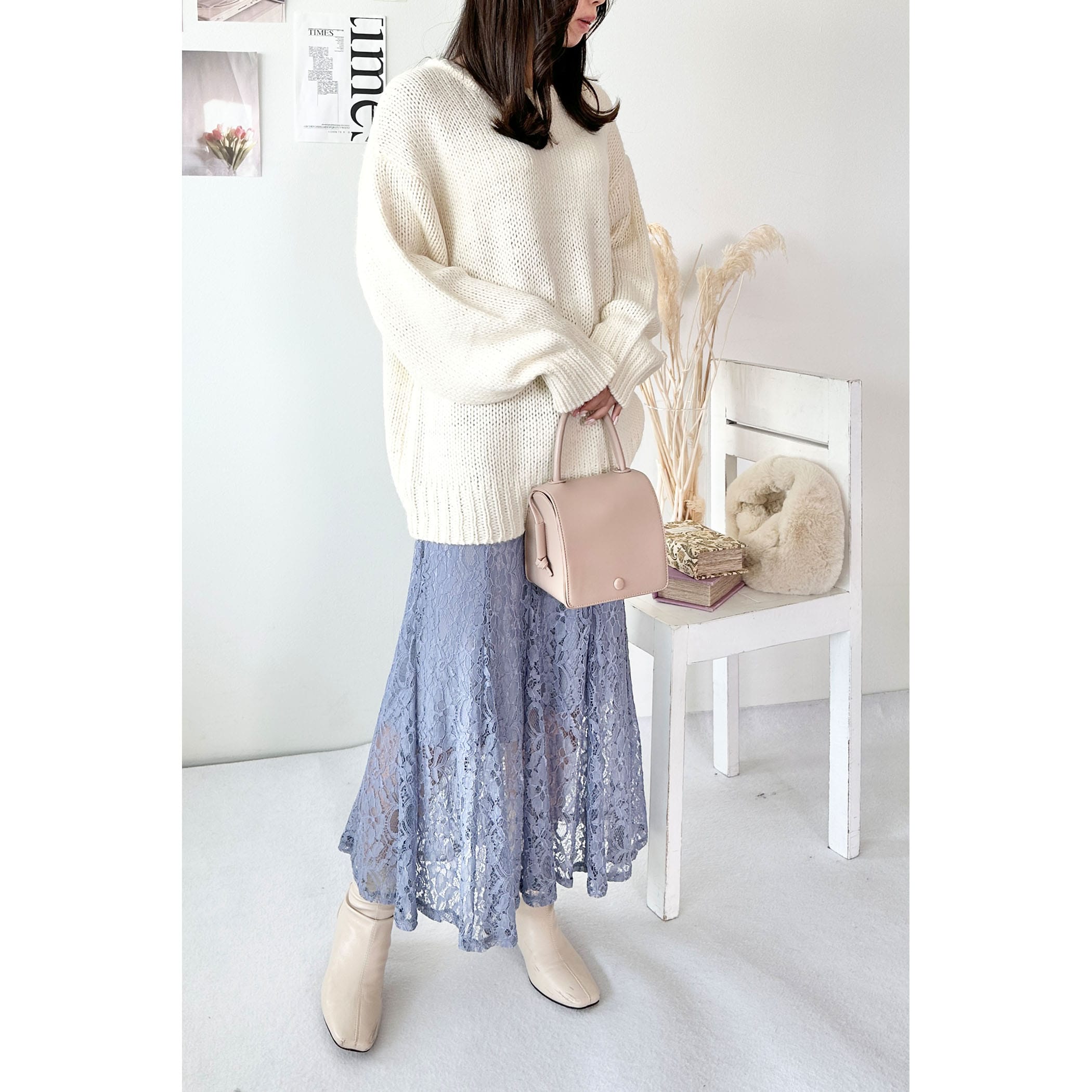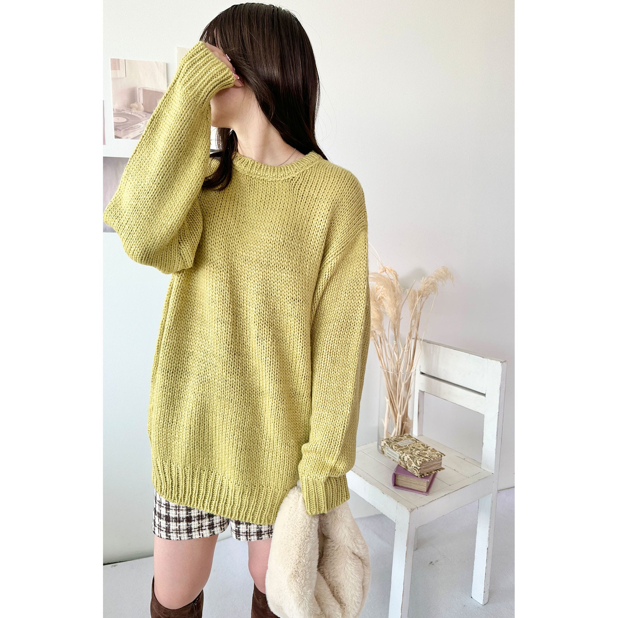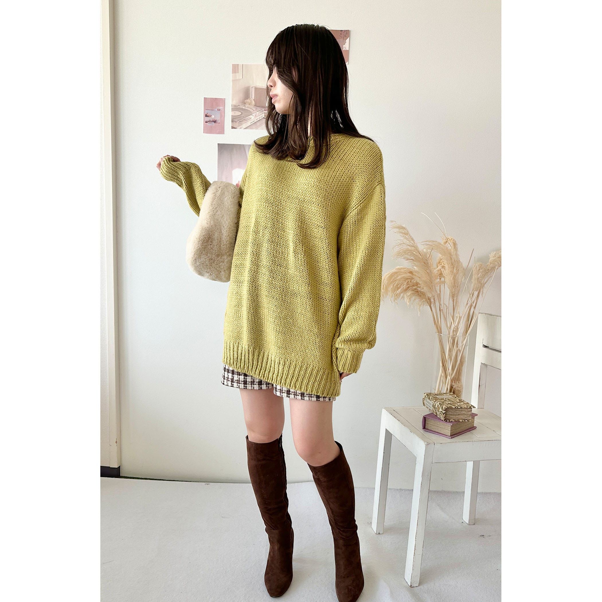手編みのようなふんわりあたたかい風合いが魅力のニットプルオーバー。首元はすっきりとしたUネック×ドロップショルダーの落ち感で、こなれ感あふれる雰囲気に。ゆったりとしたオーバーサイズとチュニック丈でヒップ回りをカバーしてくれます。パンツはもちろんのこと、スカート、ワンピースのレイヤードなど着回し抜群の1枚です。