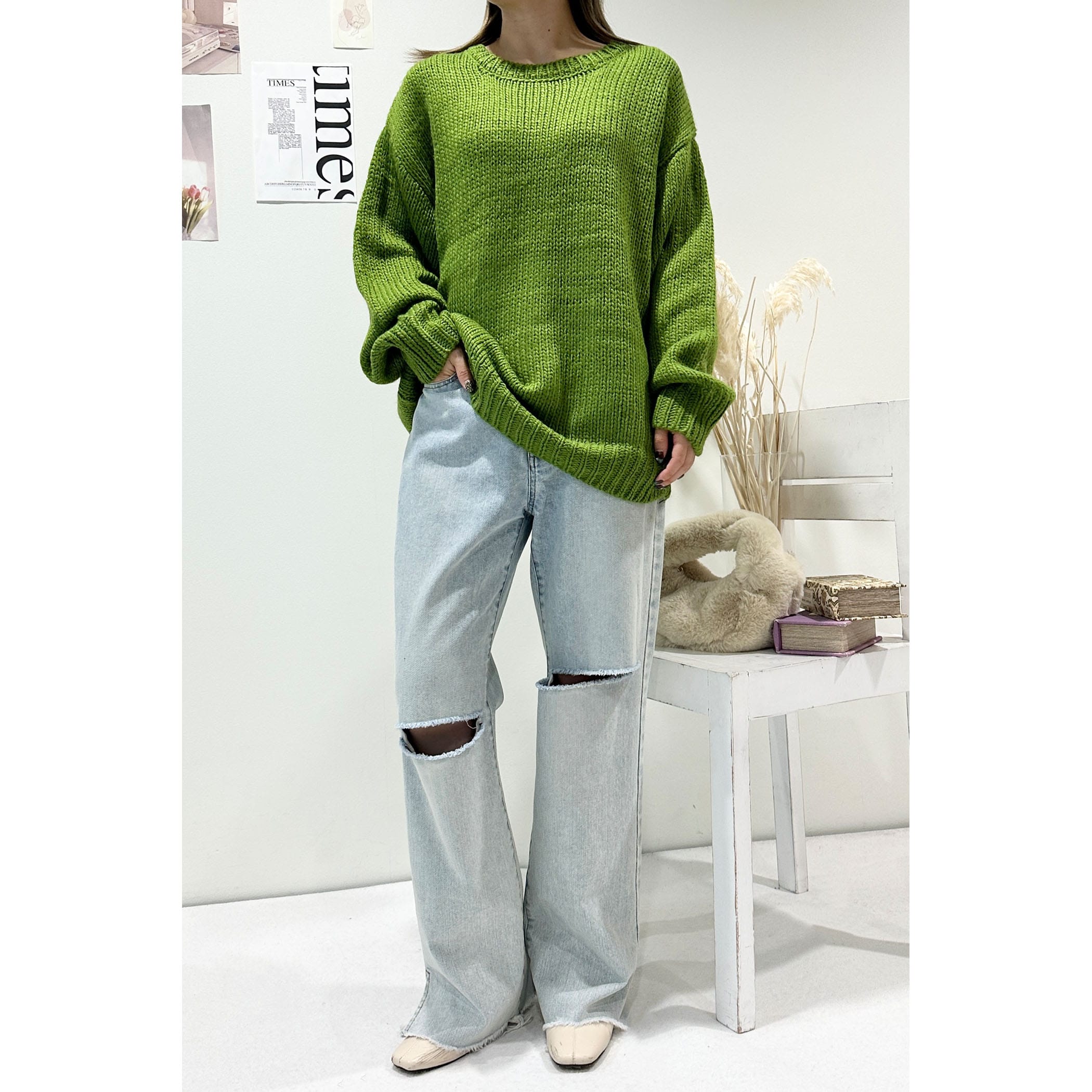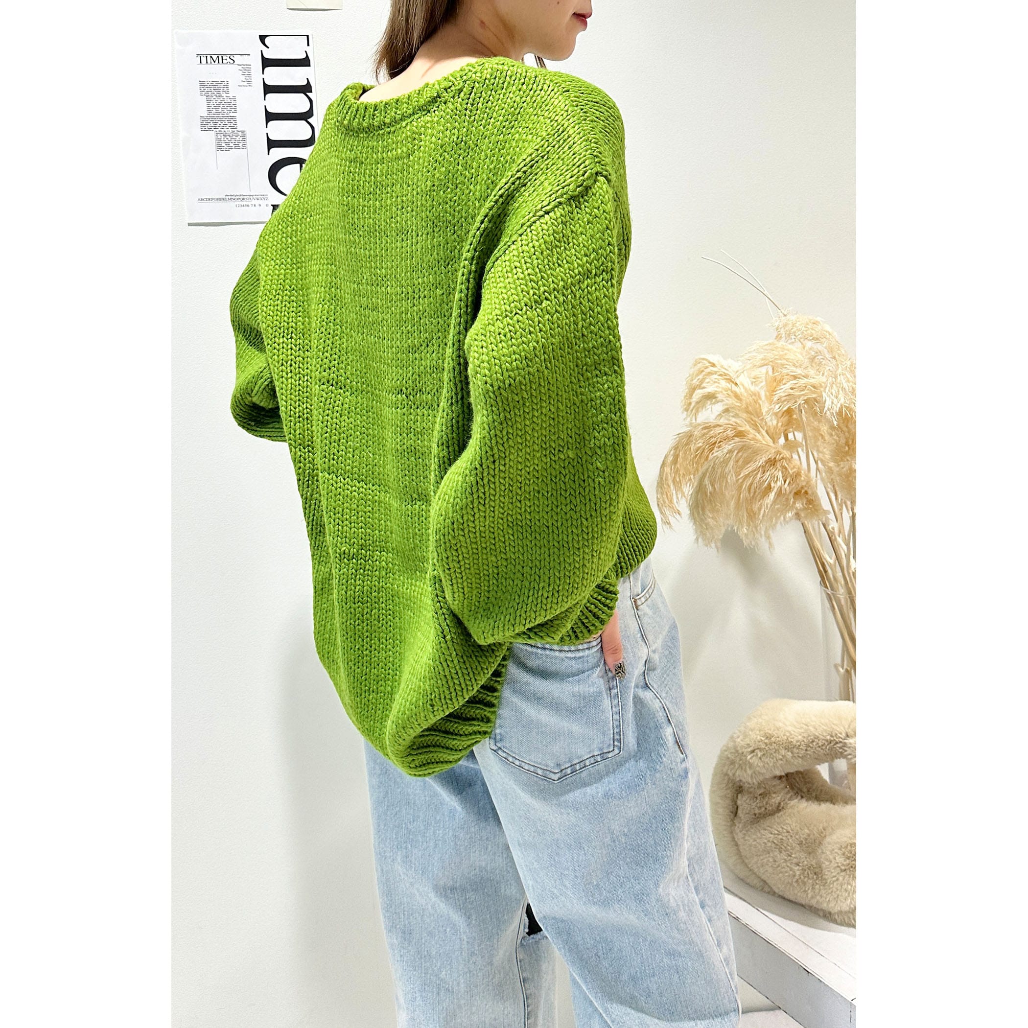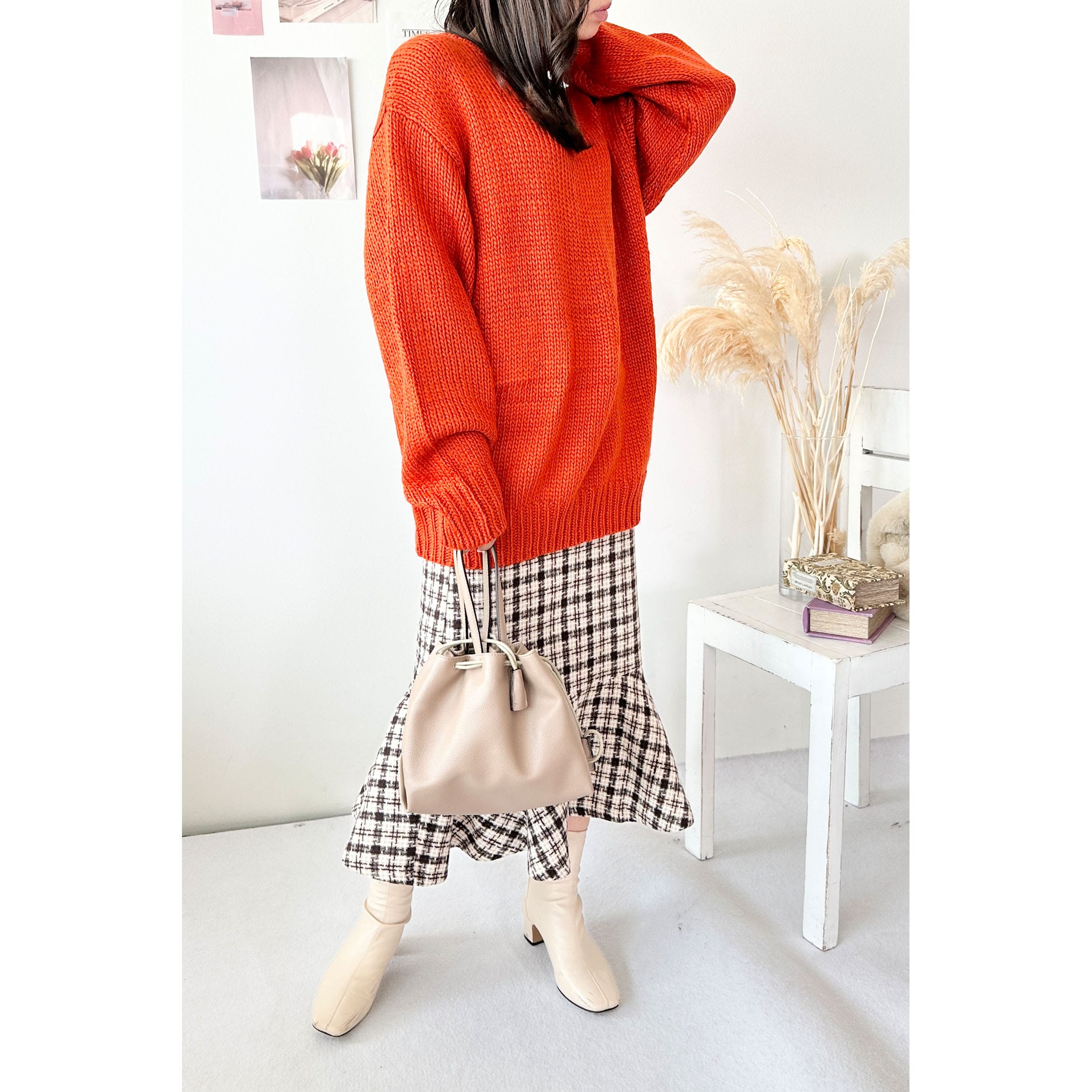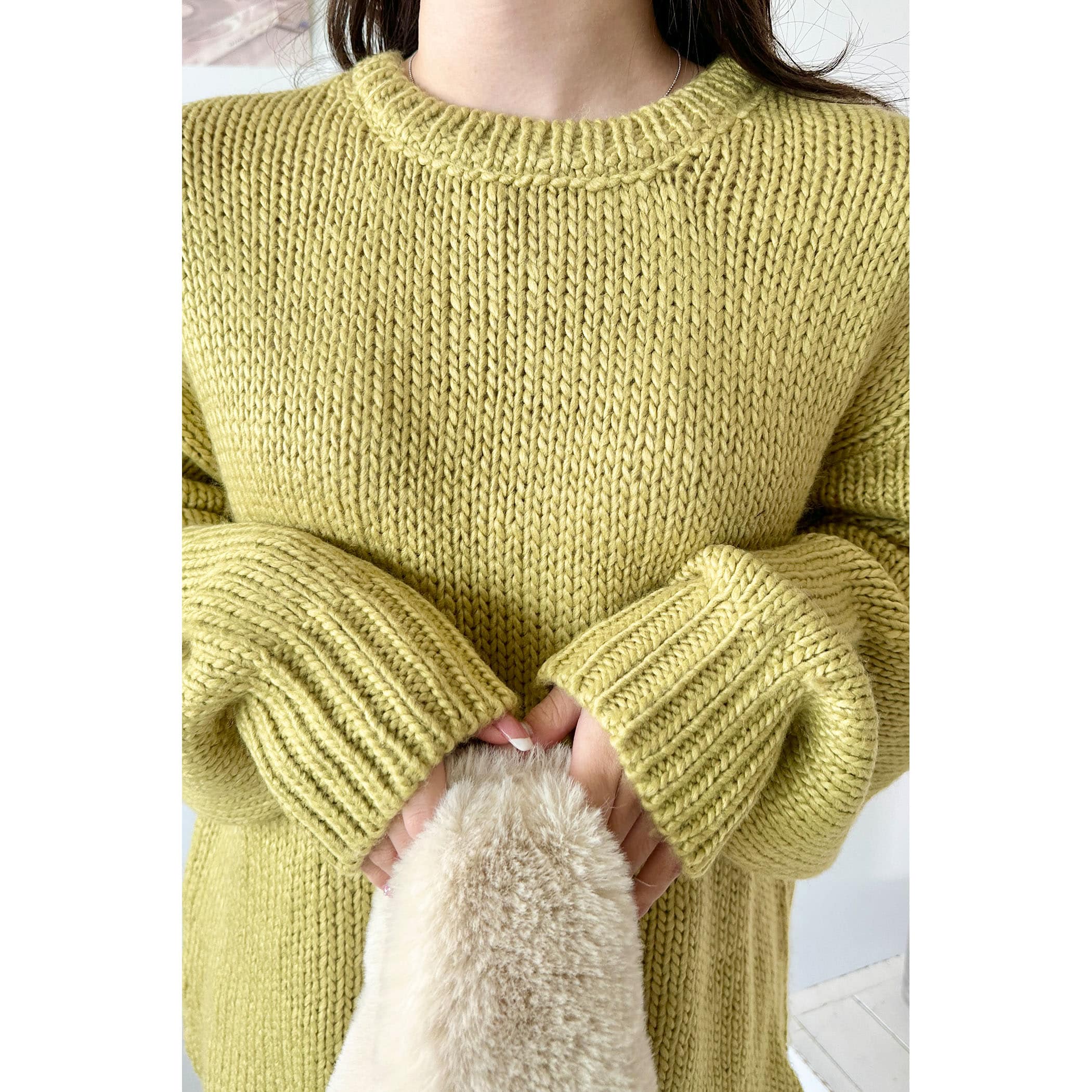 手編みのようなふんわりあたたかい風合いが魅力のニットプルオーバー。首元はすっきりとしたUネック×ドロップショルダーの落ち感で、こなれ感あふれる雰囲気に。ゆったりとしたオーバーサイズとチュニック丈でヒップ回りをカバーしてくれます。パンツはもちろんのこと、スカート、ワンピースのレイヤードなど着回し抜群の1枚です。