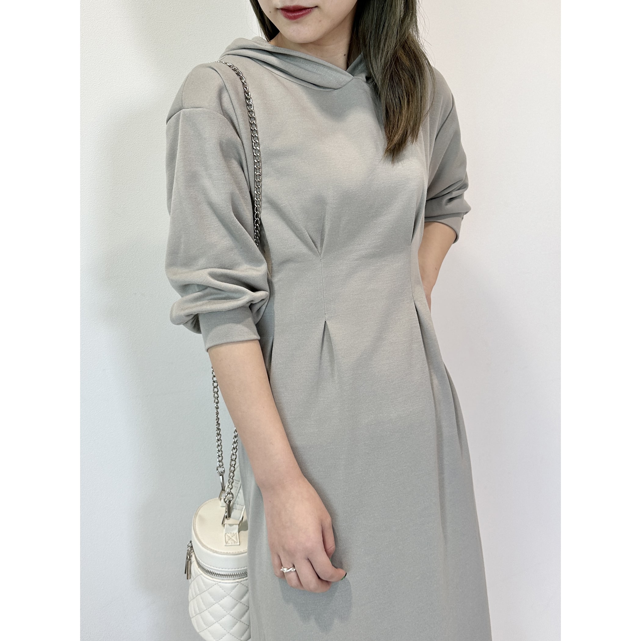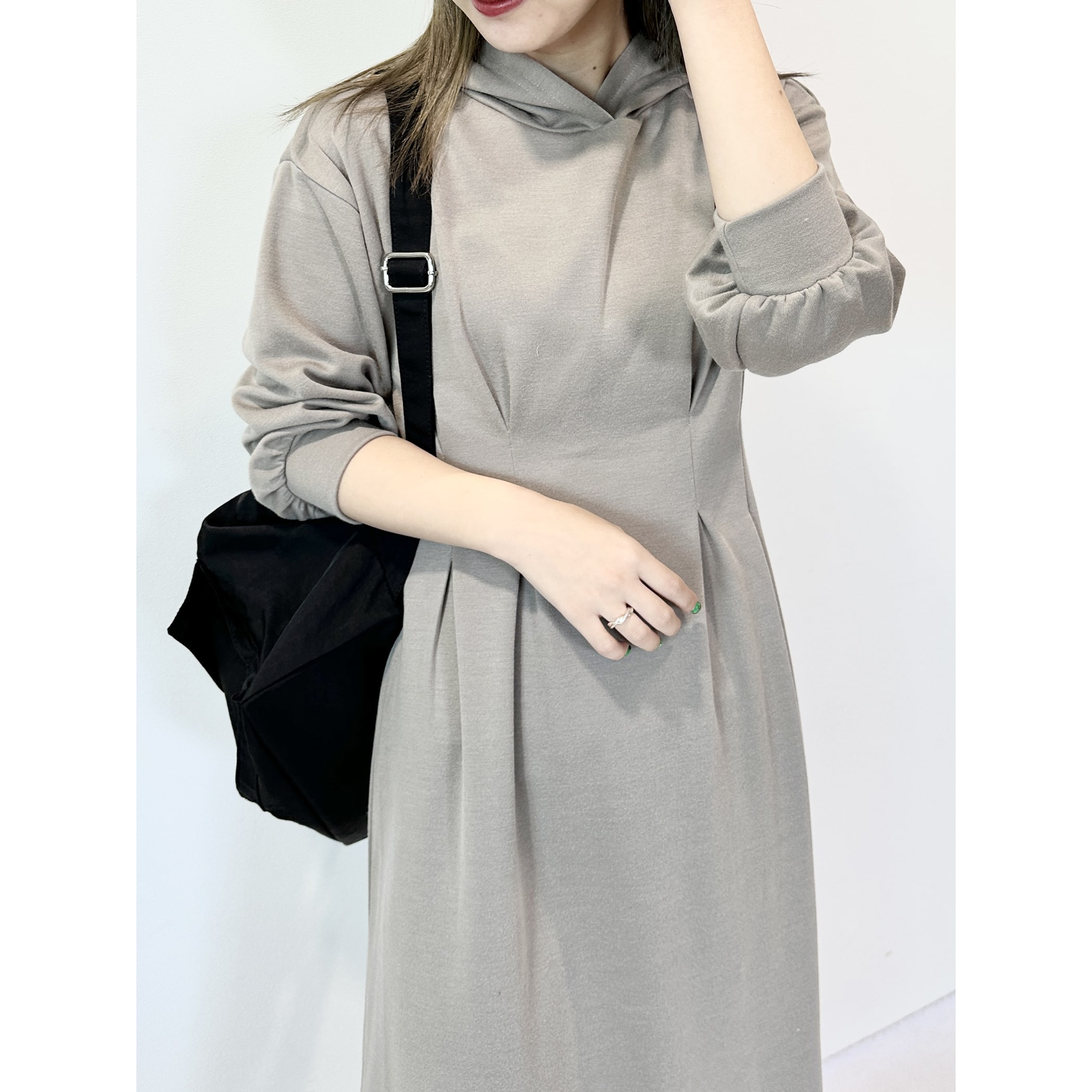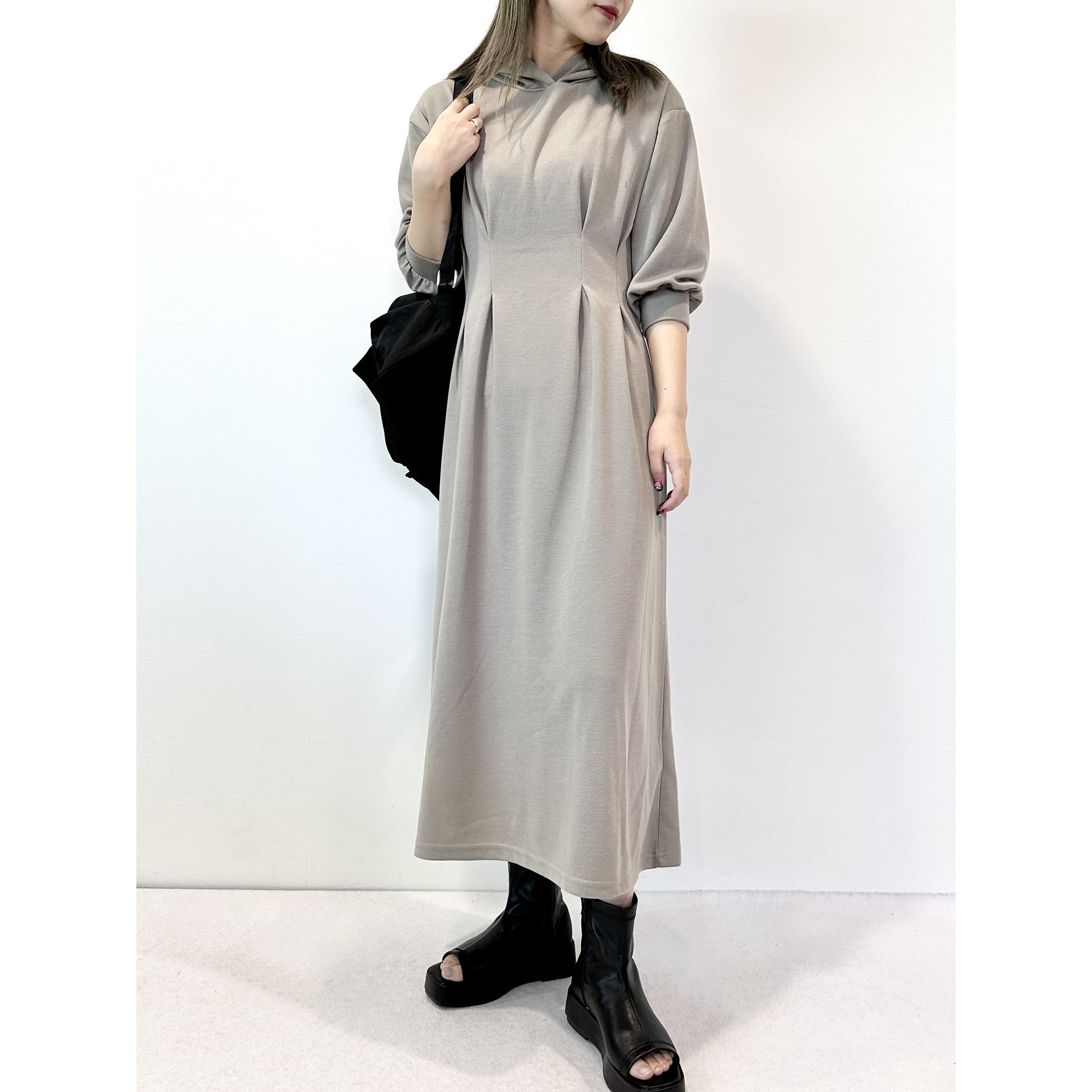 ウエストにタックが施されたスタイル効果抜群のフーディワンピース。後ウエストにはゴムが入っており、体のラインに合わせて綺麗なシルエットを演出してくれます。落ち感がありさらりとした素材なので着心地も抜群です。ブーツともスニーカーとも相性のいいアイテムです。