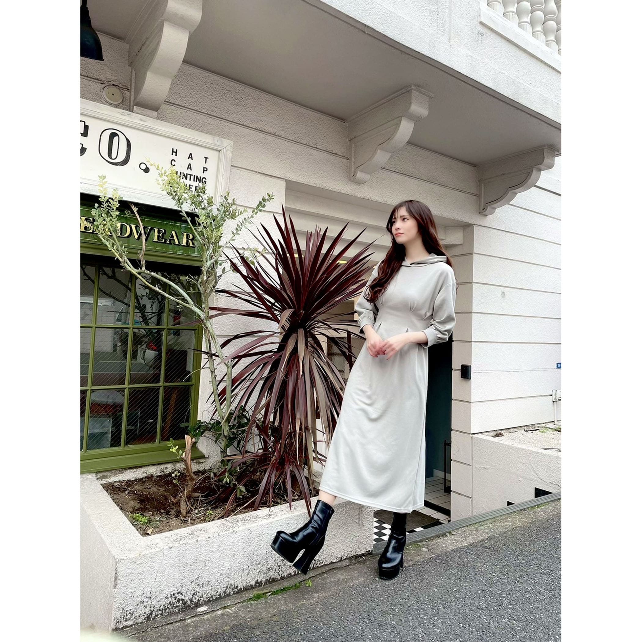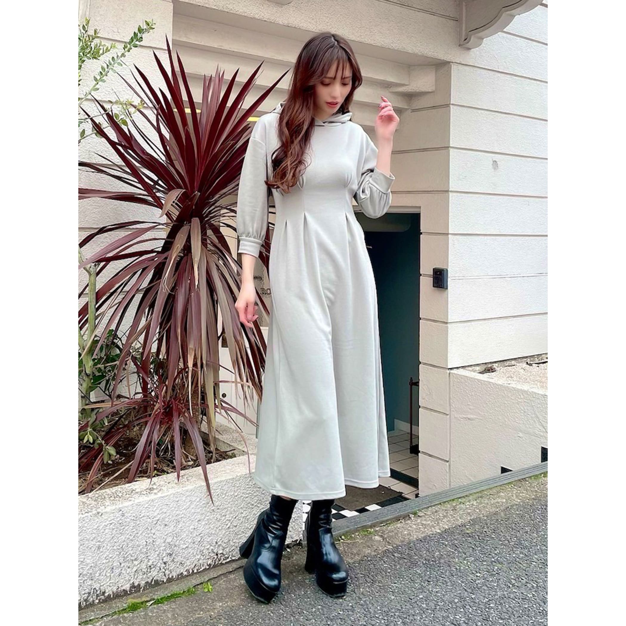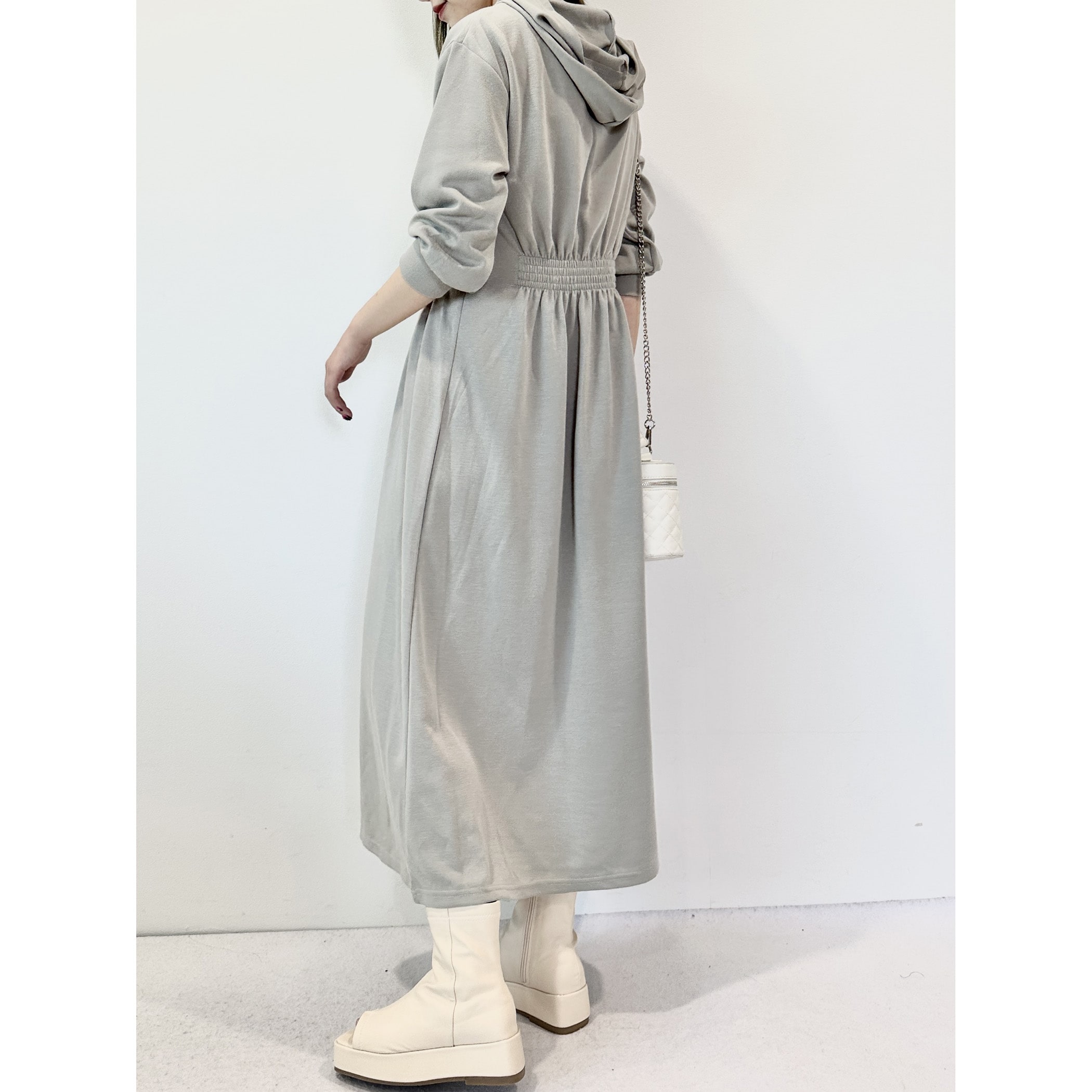ウエストにタックが施されたスタイル効果抜群のフーディワンピース。後ウエストにはゴムが入っており、体のラインに合わせて綺麗なシルエットを演出してくれます。落ち感がありさらりとした素材なので着心地も抜群です。ブーツともスニーカーとも相性のいいアイテムです。