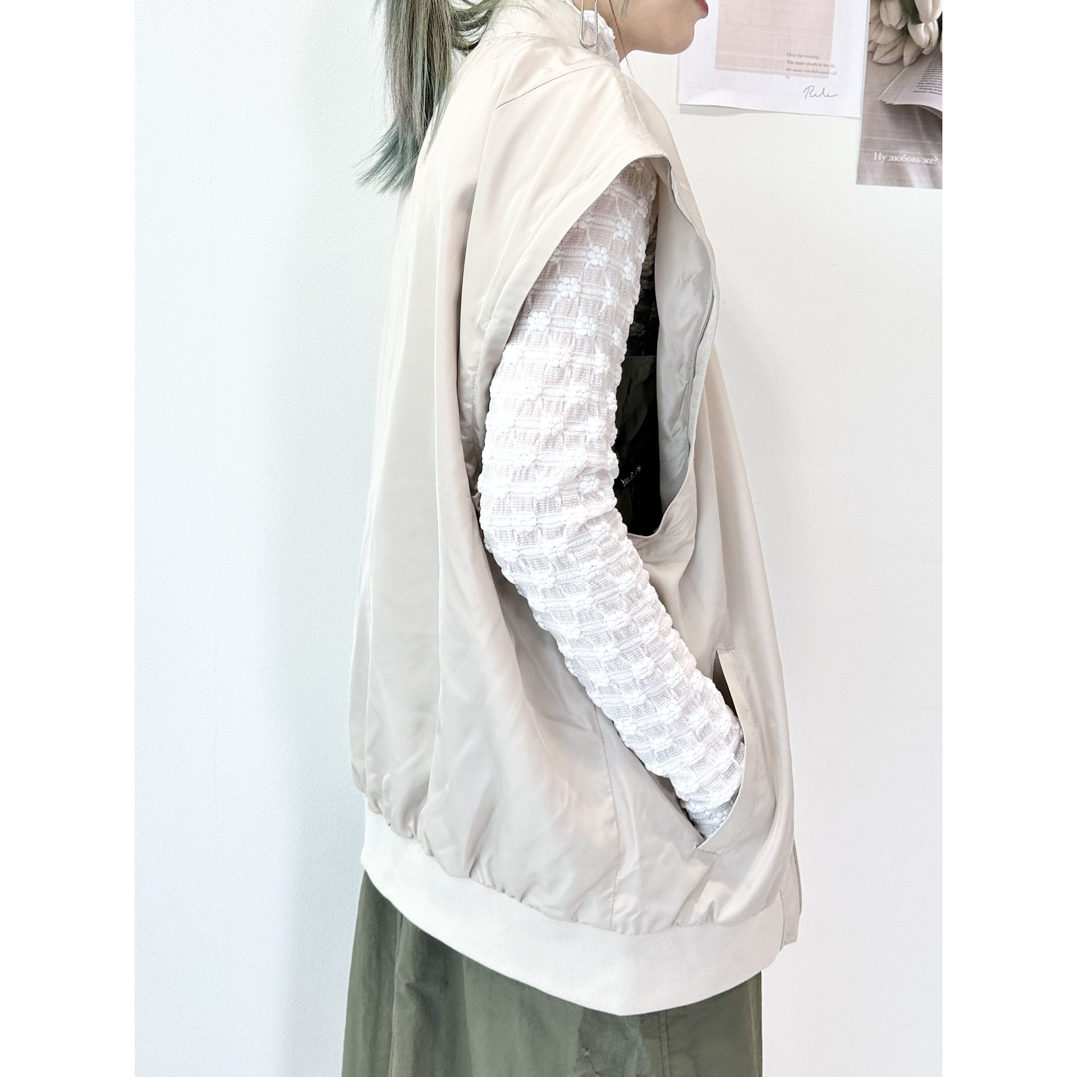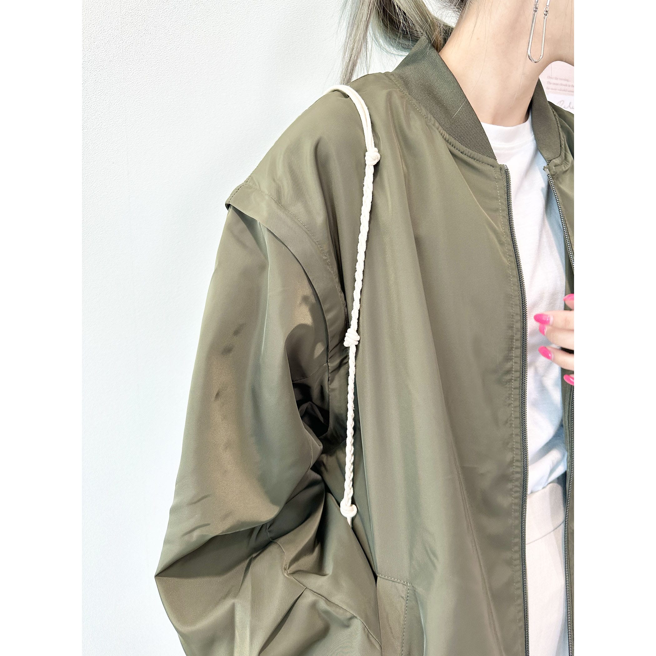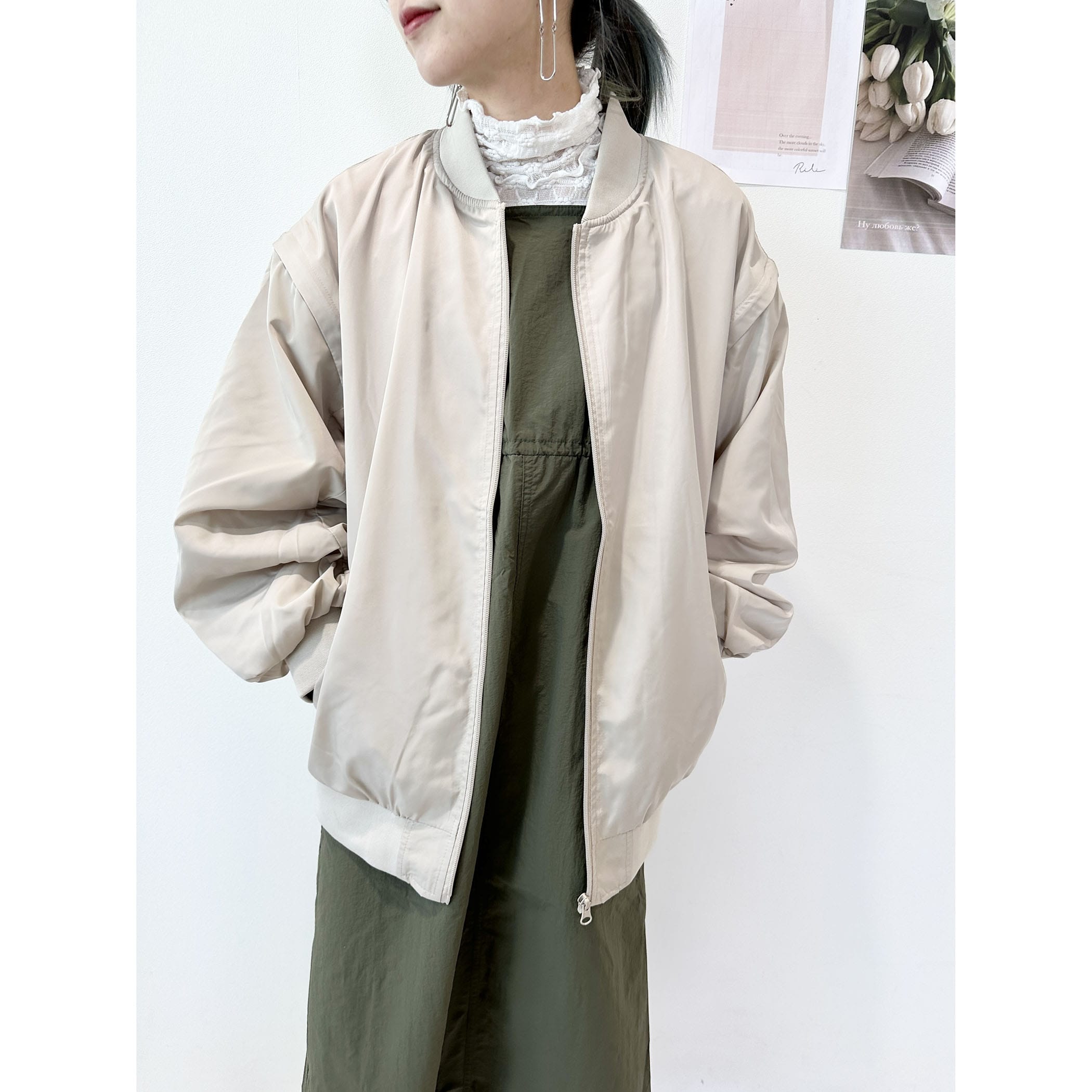 マルチに着まわせるビックブルゾン。袖にはファスナーが付いていて取り外しができ、ベストとしても着用できる2WAYデザインのトレンドライクなアイテムです。ビックシルエットなので、メンズライクな雰囲気と着るだけでこなれ感のでるオシャレな一枚です。