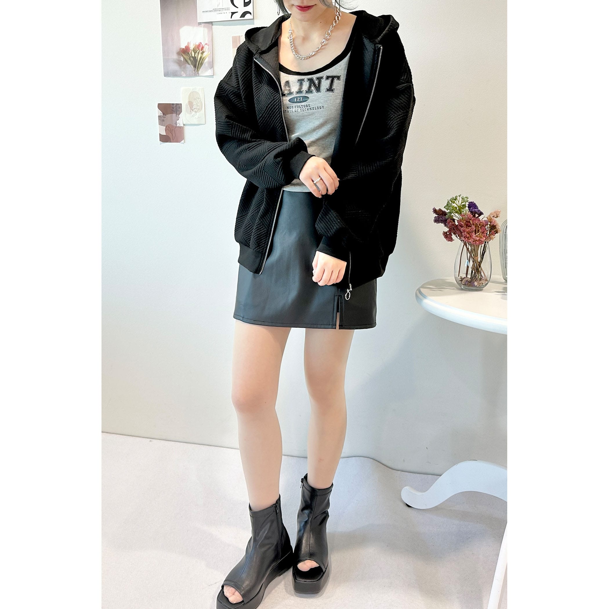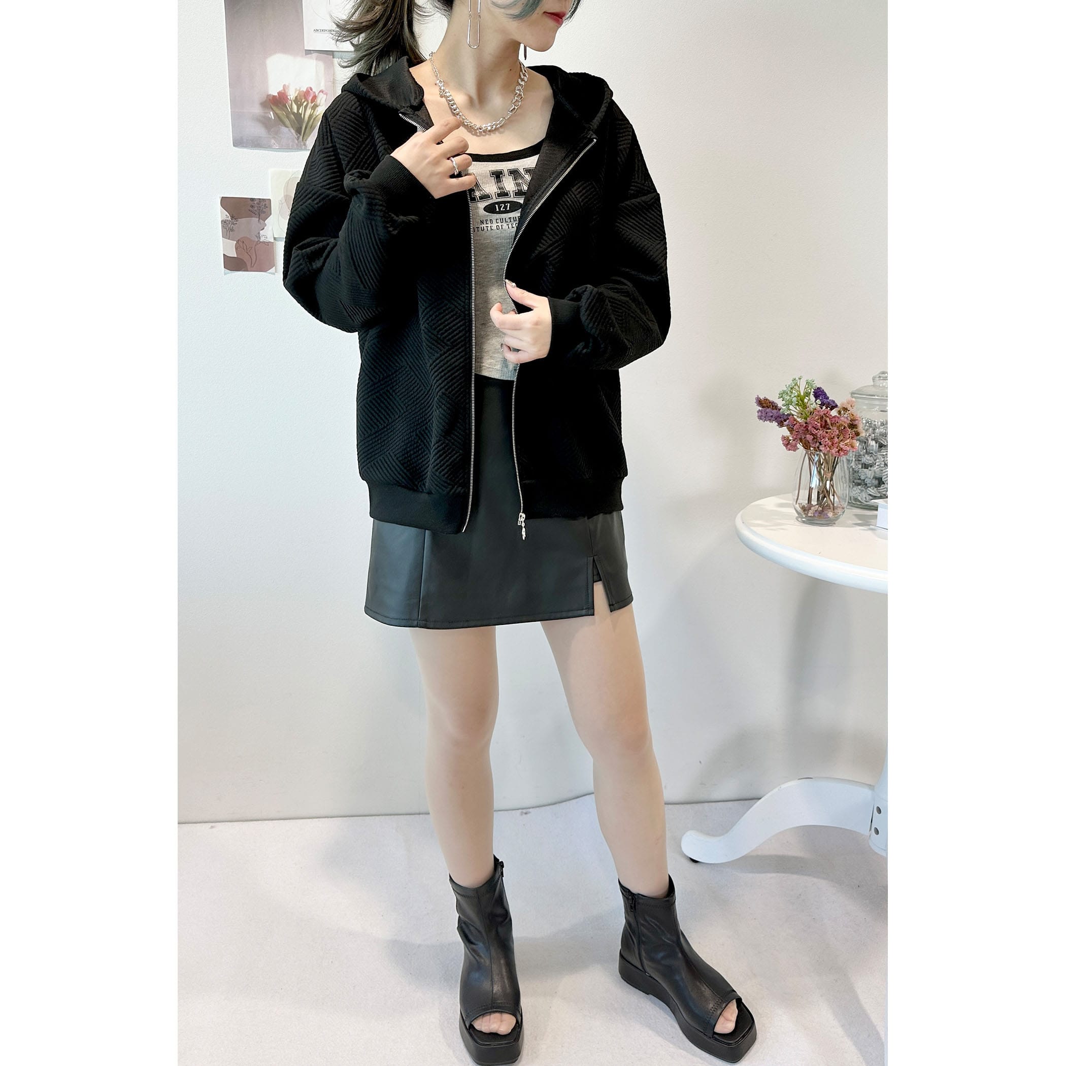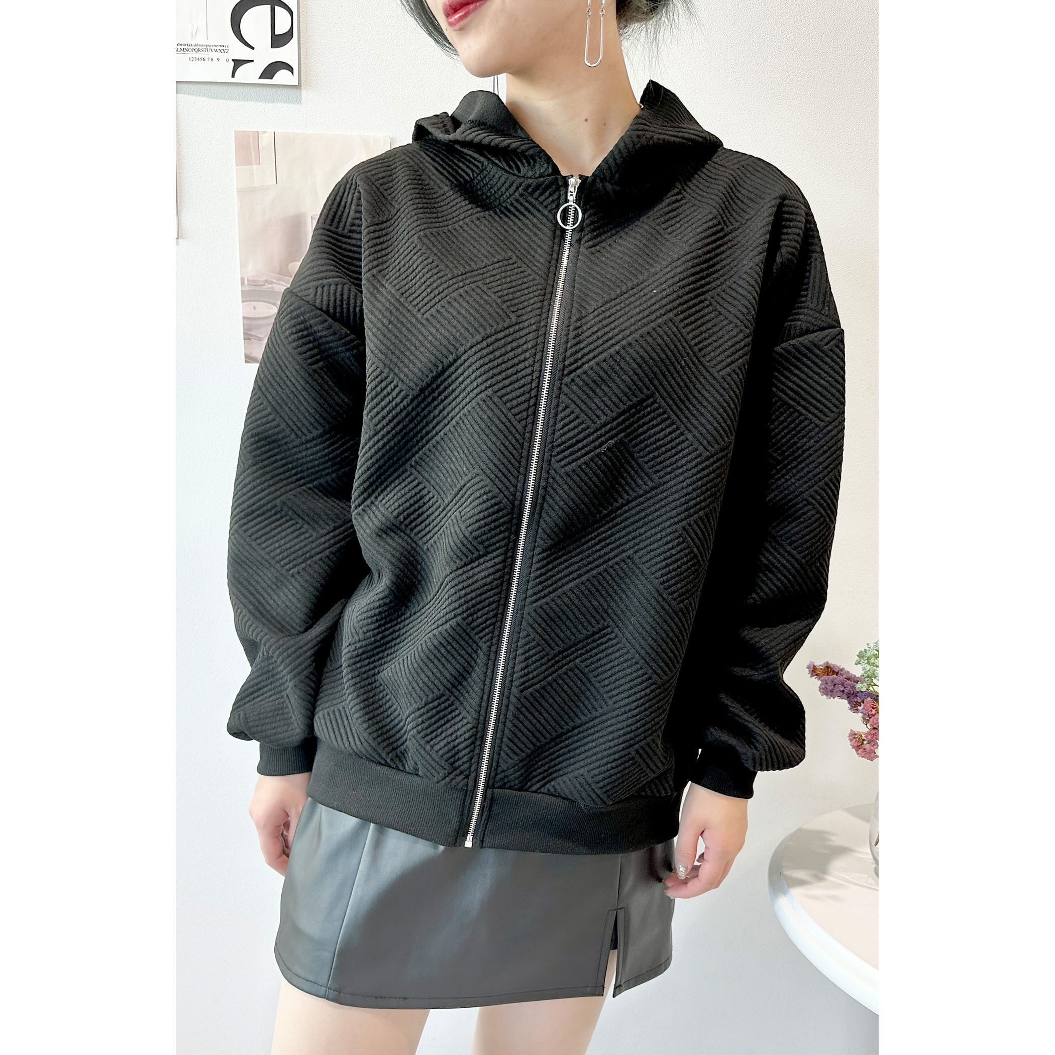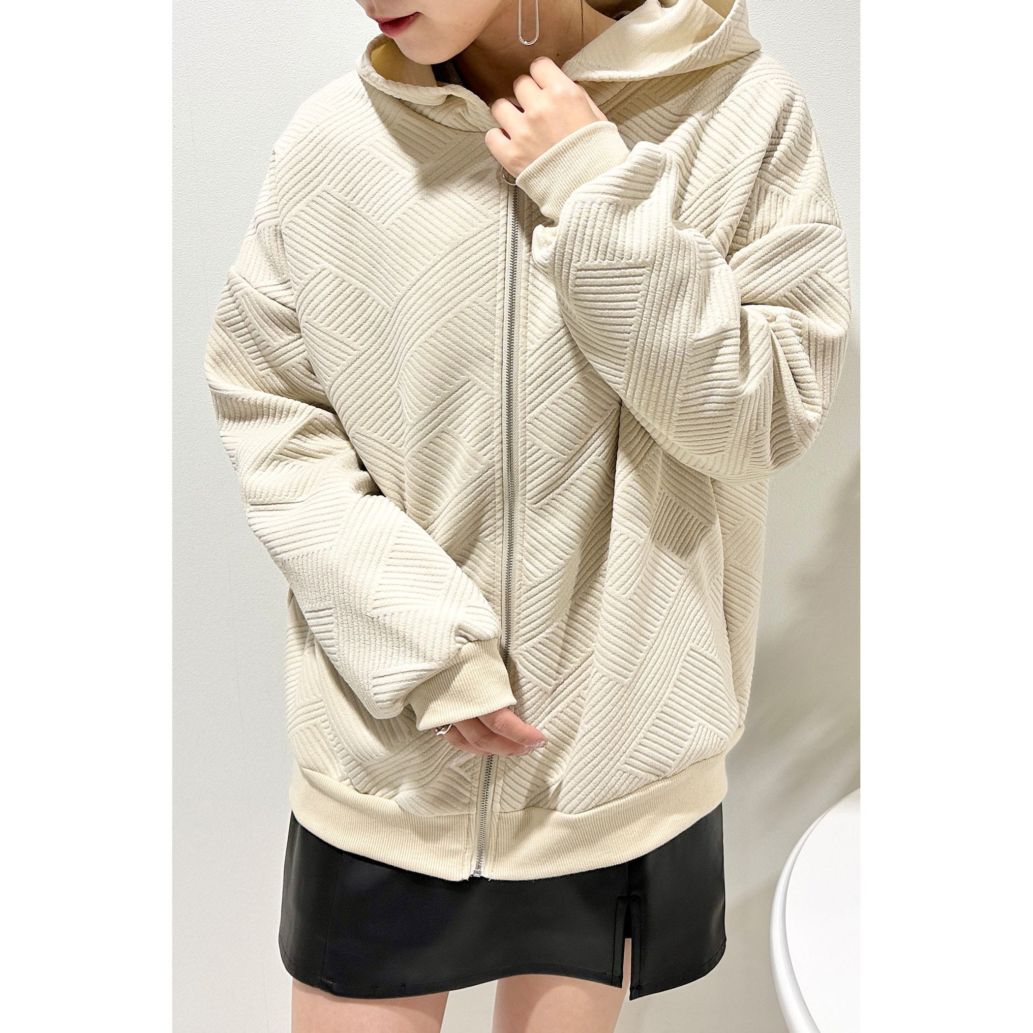 膨れジャガードZIPパーカー