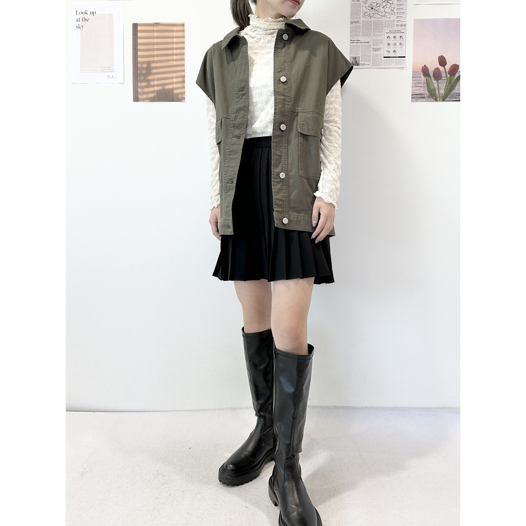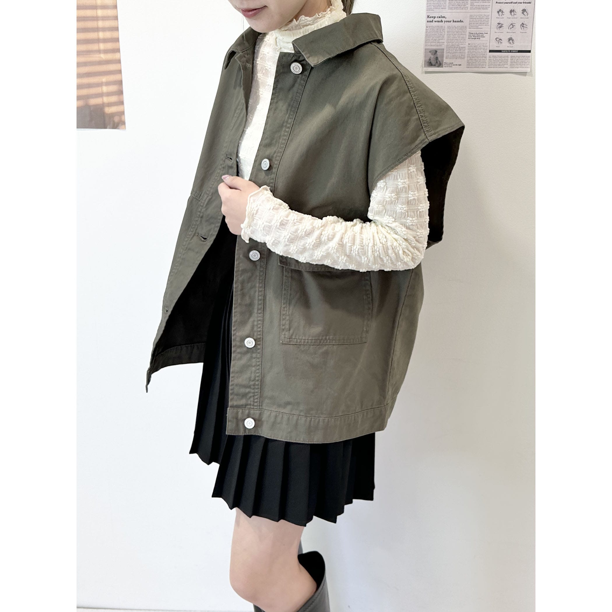 合わせるインナーによってロングシーズン着まわせるミリタリーアウター。大きめのポケットがメンズライクな雰囲気を持たせ、オーバーシルエットが羽織るだけで旬なレイヤードコーデが完成します。程よくハリ感のあるツイル素材なので、へたれず綺麗なシルエットをキープしてくれるのも◎。