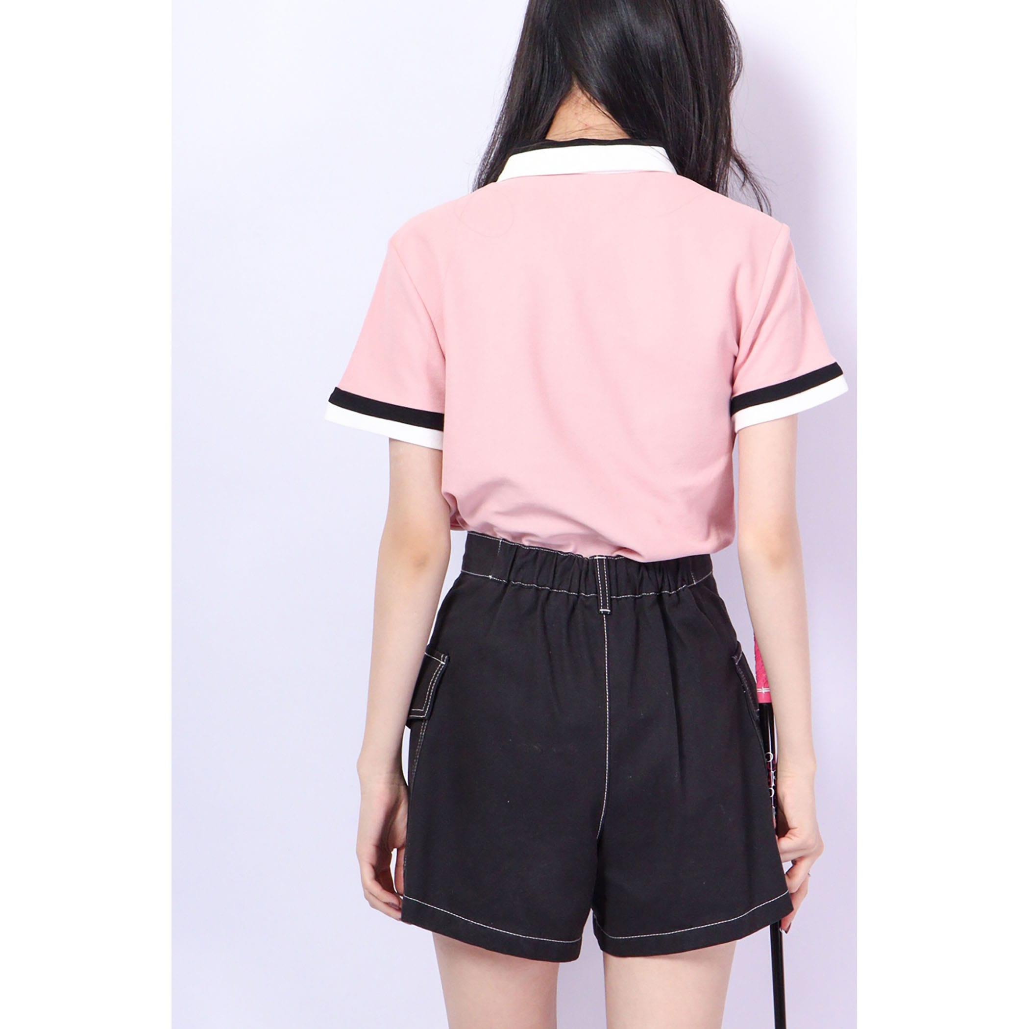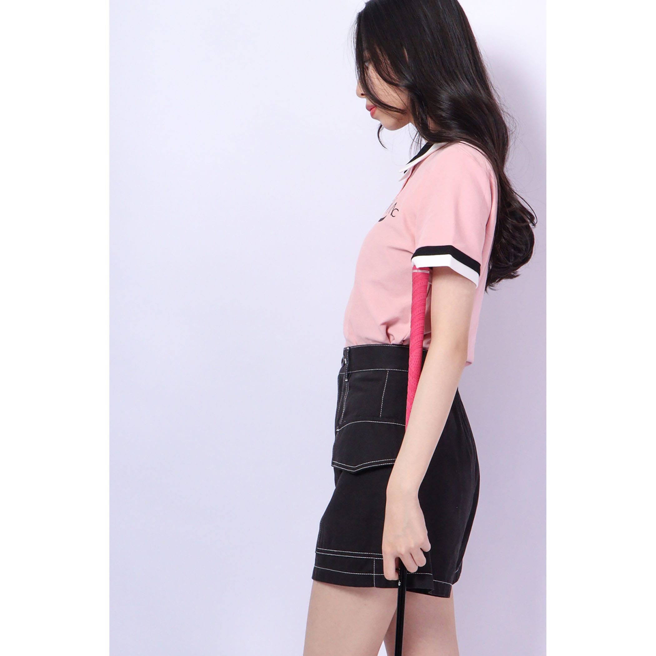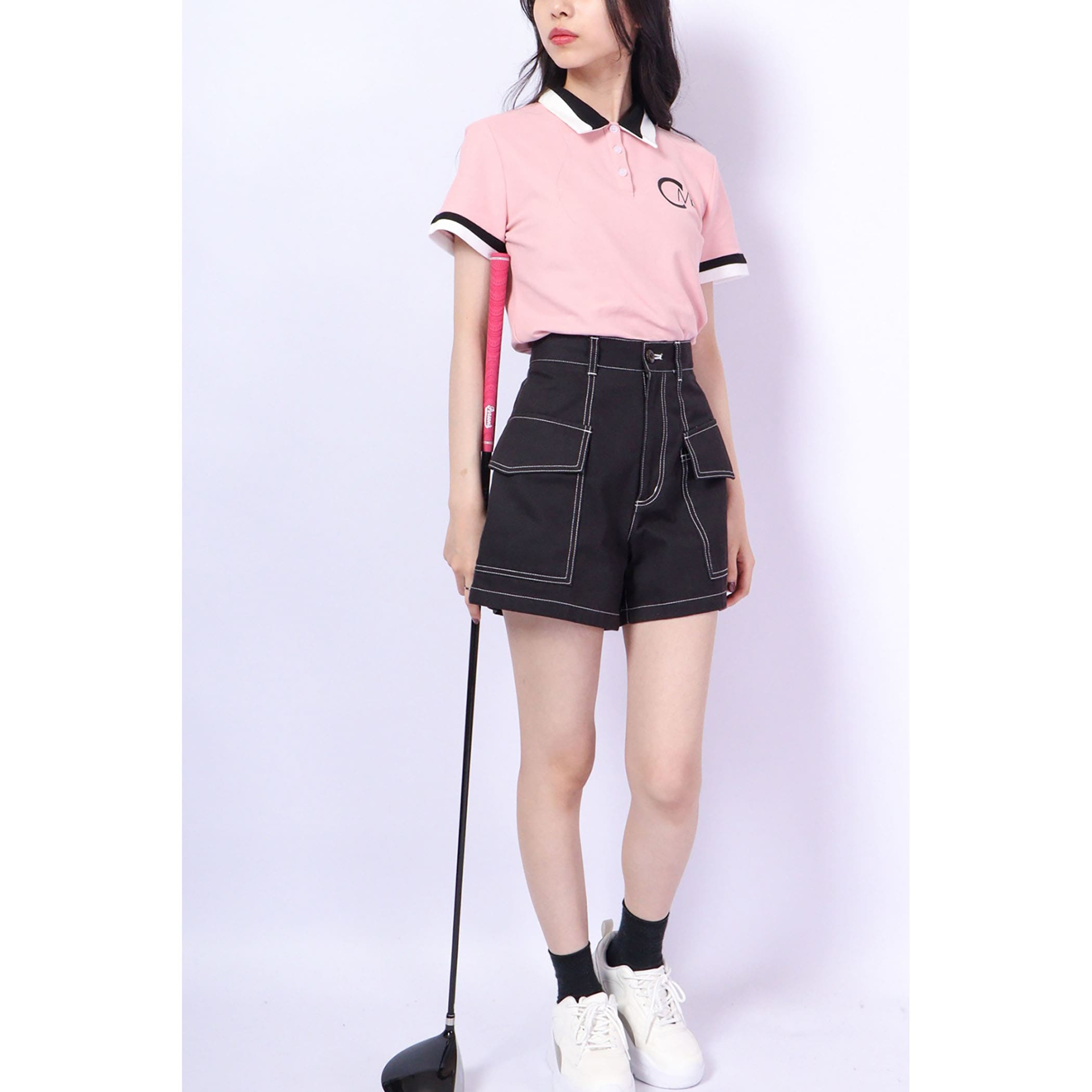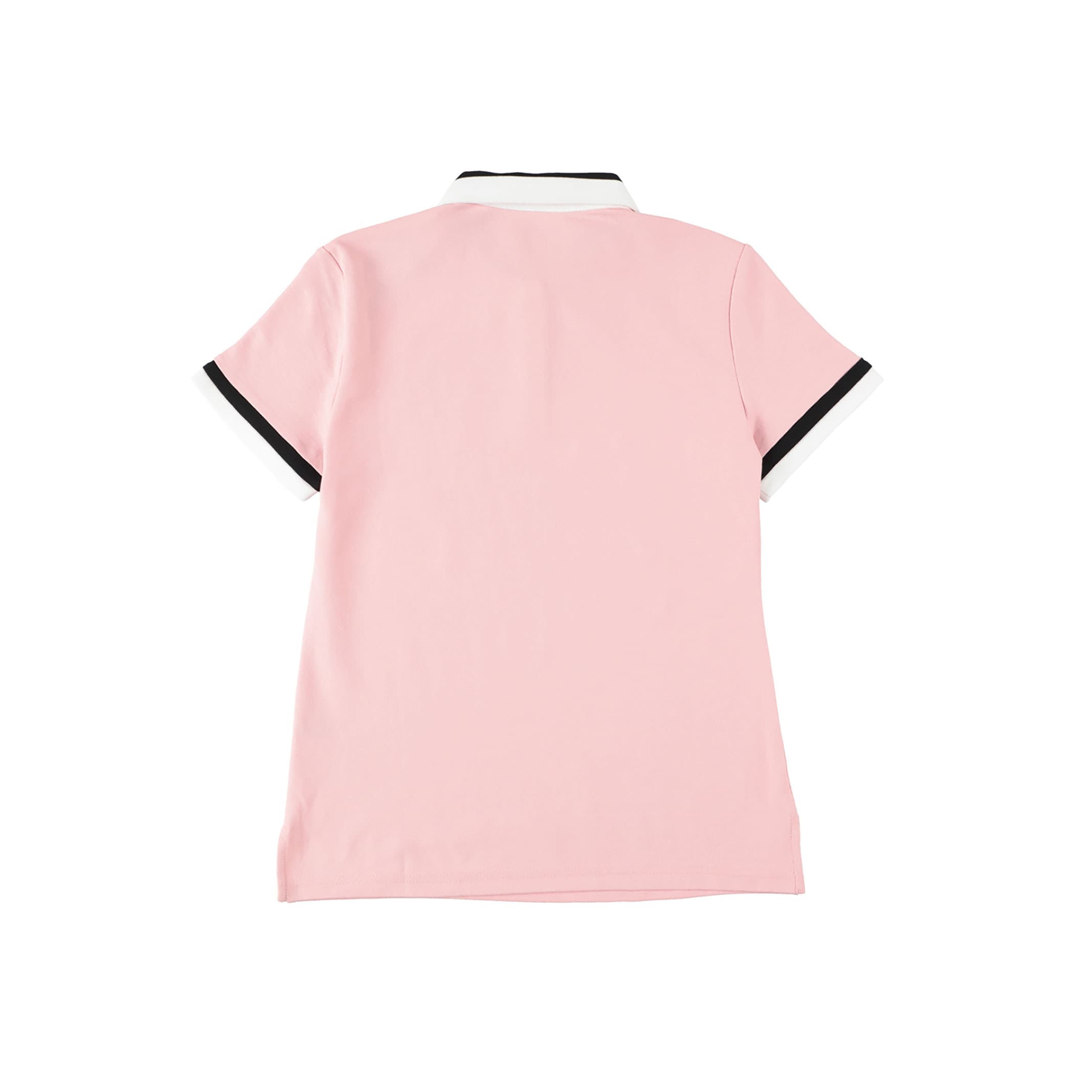ラインポロシャツ。シンプルなポロシャツも襟と袖回りにラインの切り替え。胸にはCMCのロゴ入り。ウエストも少し絞っているので、着やせ効果もあるシルエットにしています。ポリエステルなので、速乾性があります。