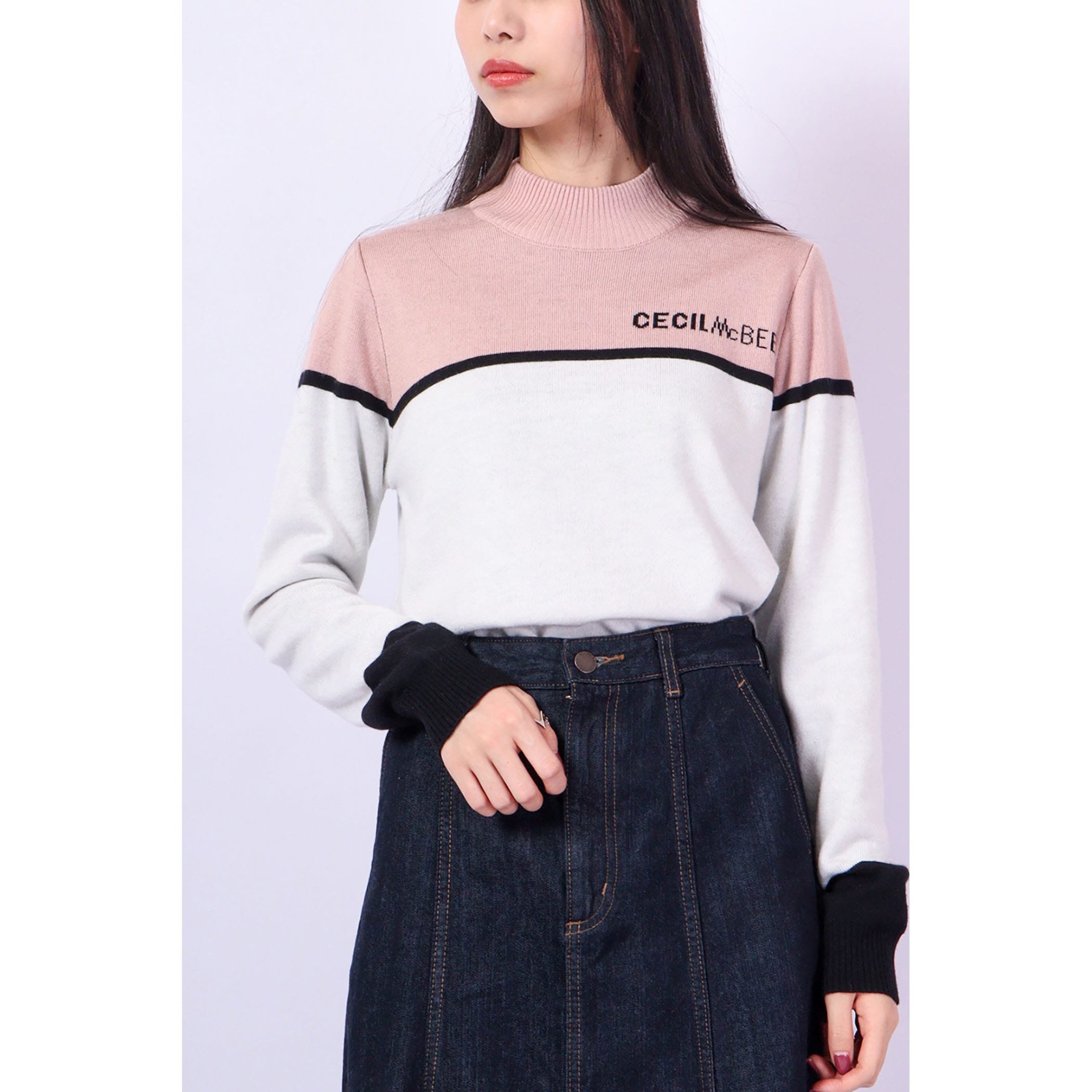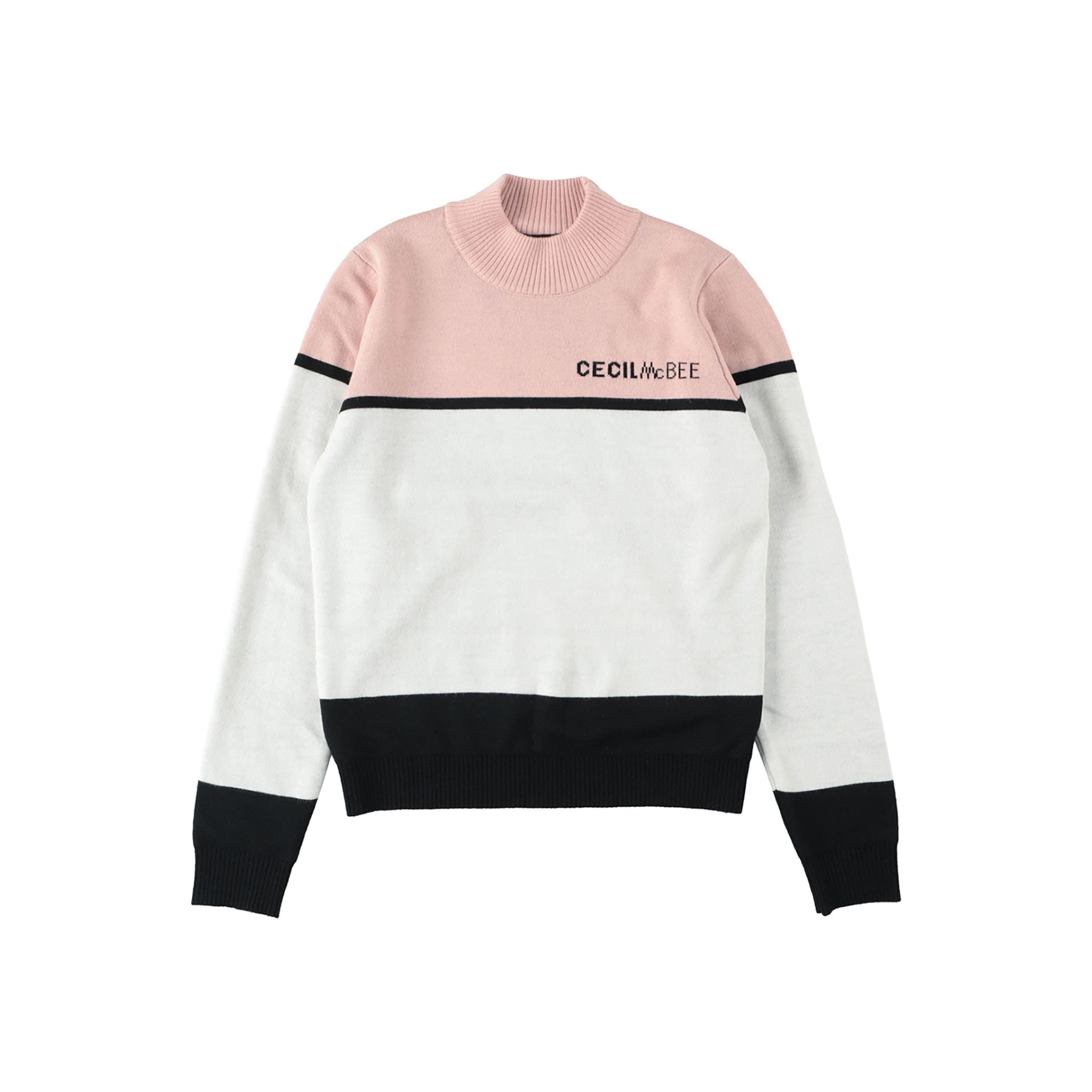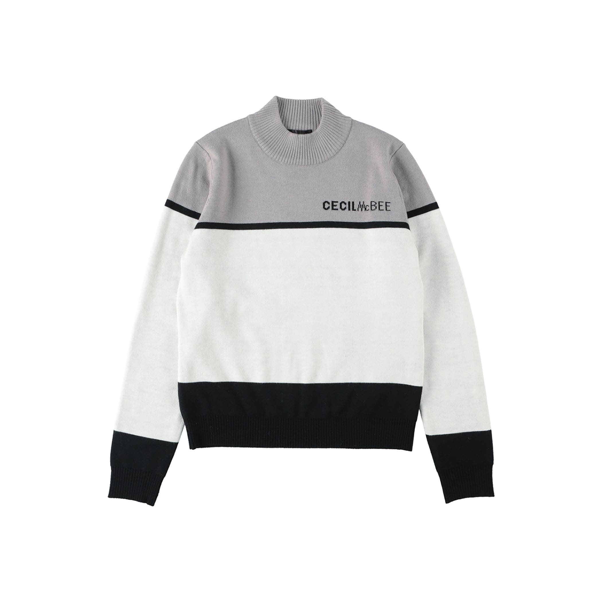 ゆったりシルエットのバイカラーモックネック。左胸にCMC・CECIL McBEEのロゴ入り。カジュアルなスタイルで普段使いもできるアイテムです。