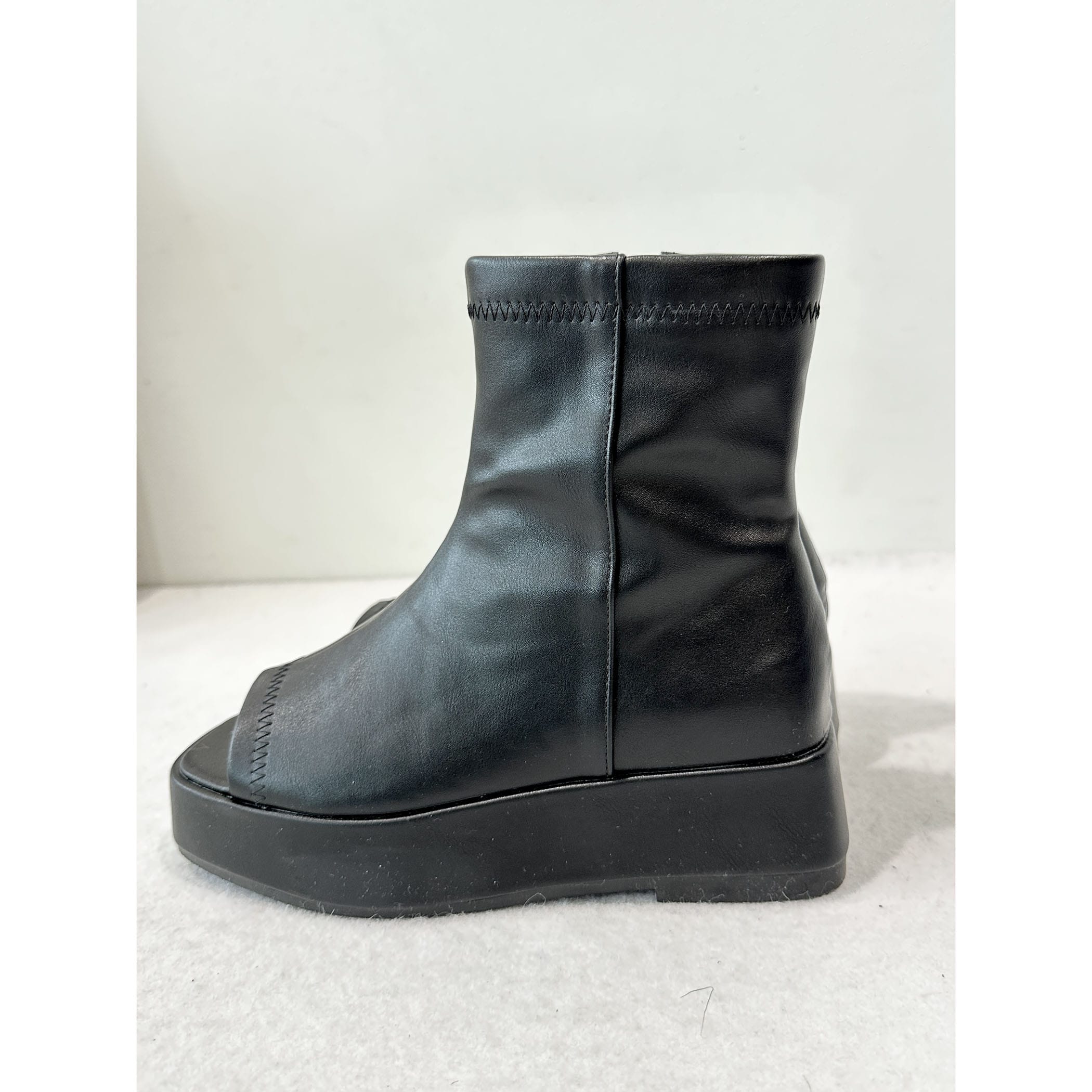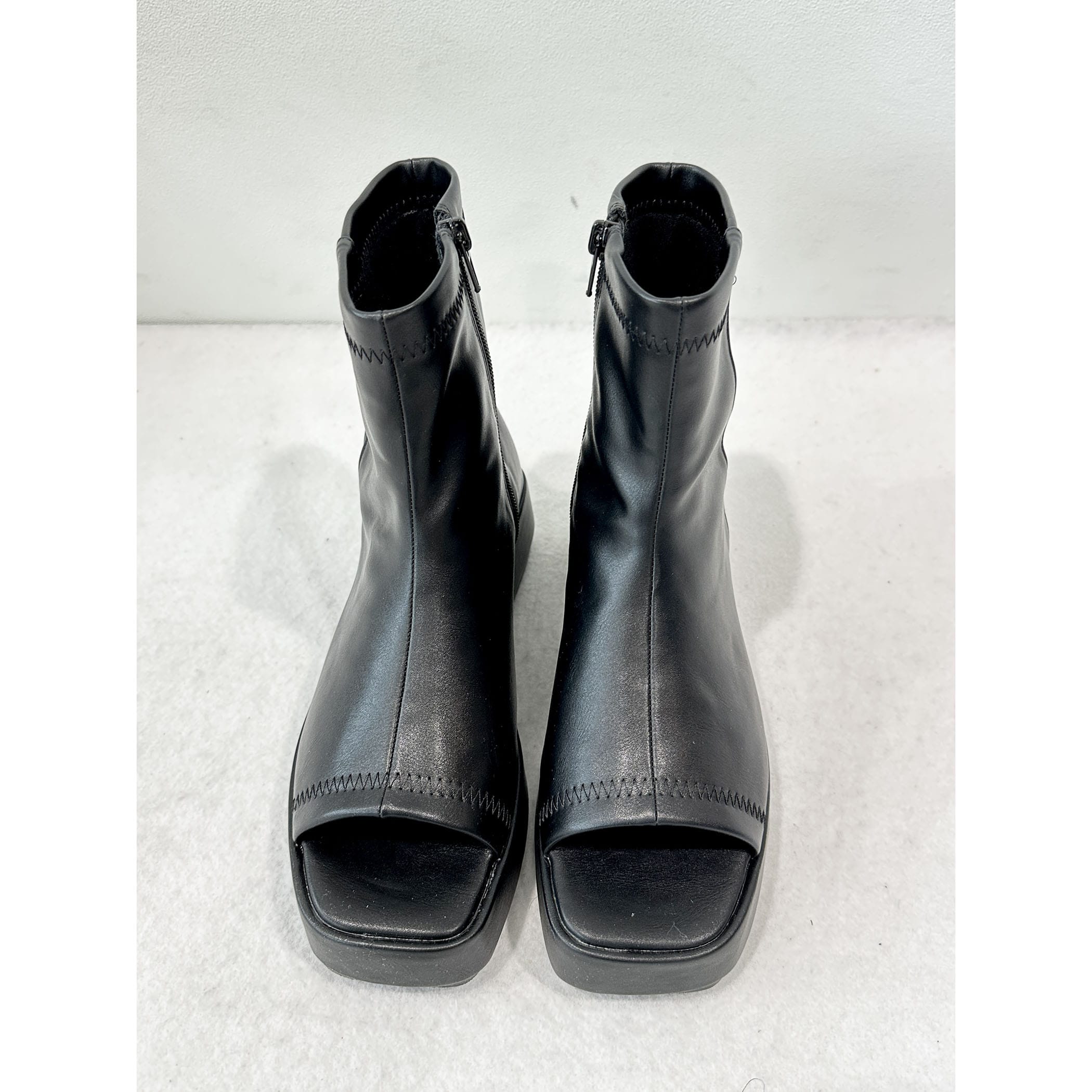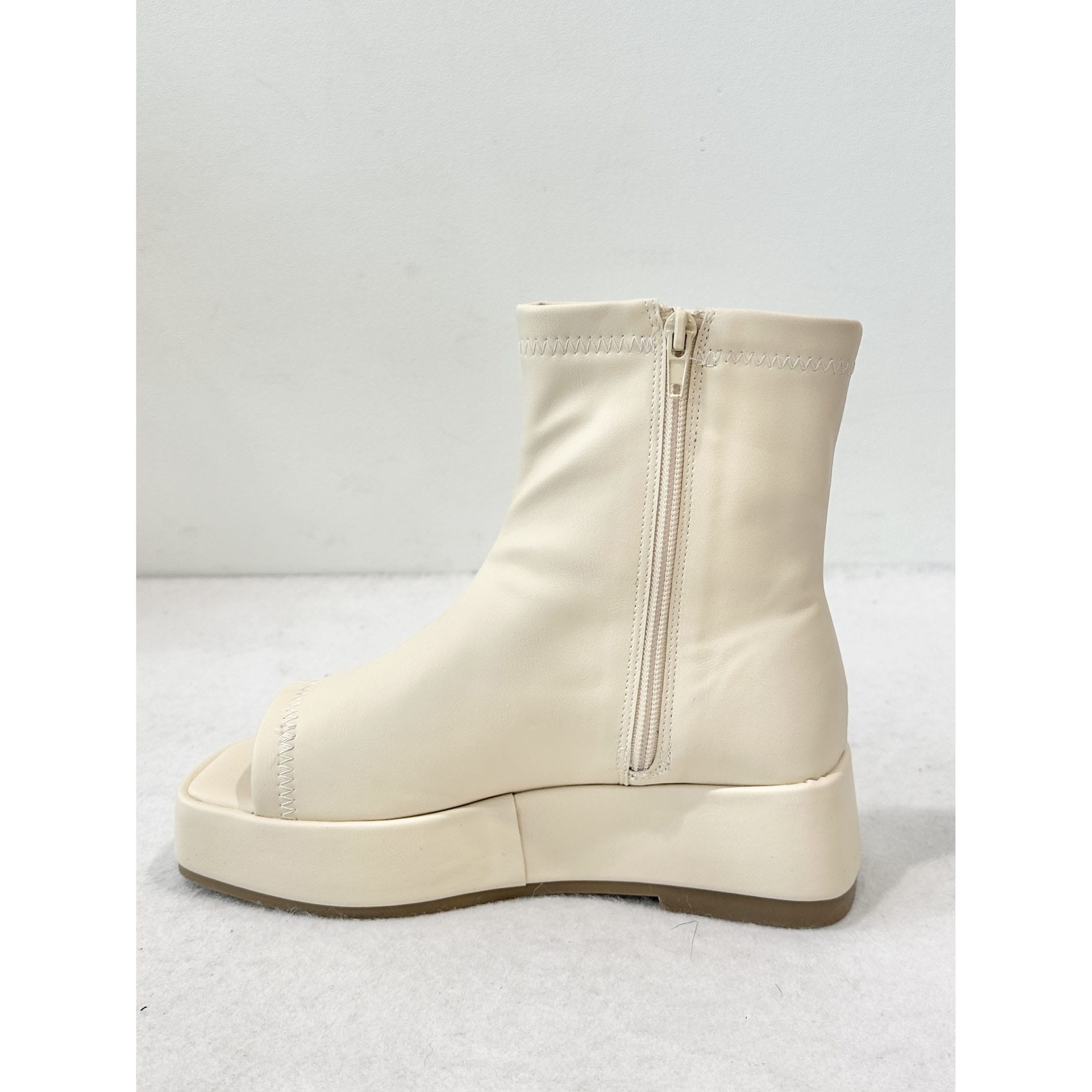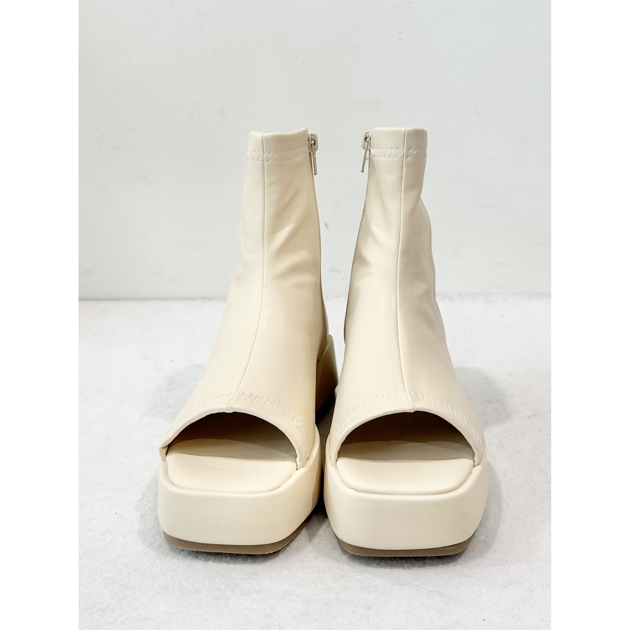 厚底のデザインがコーデのポイントになるオープントゥアンクルブーツ。