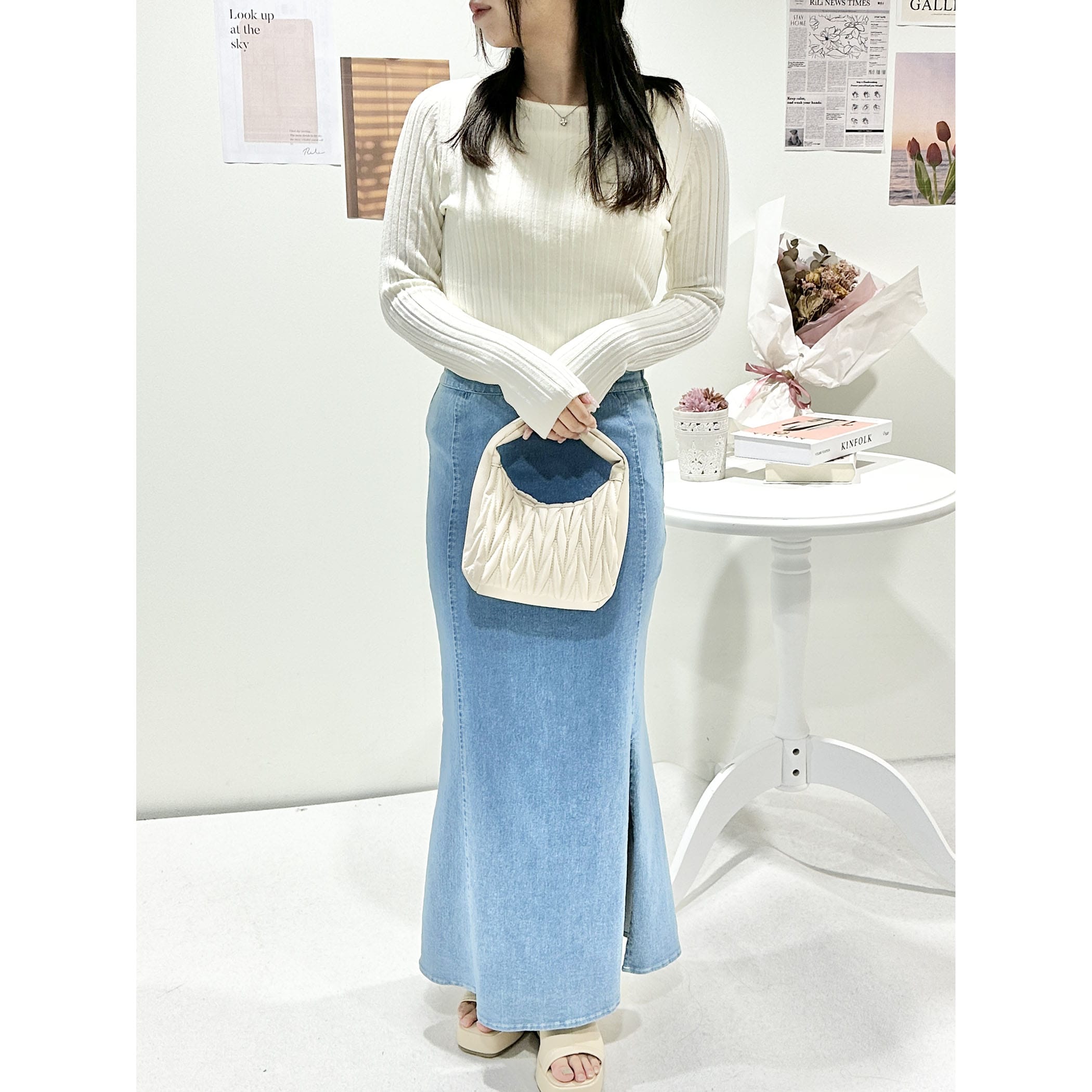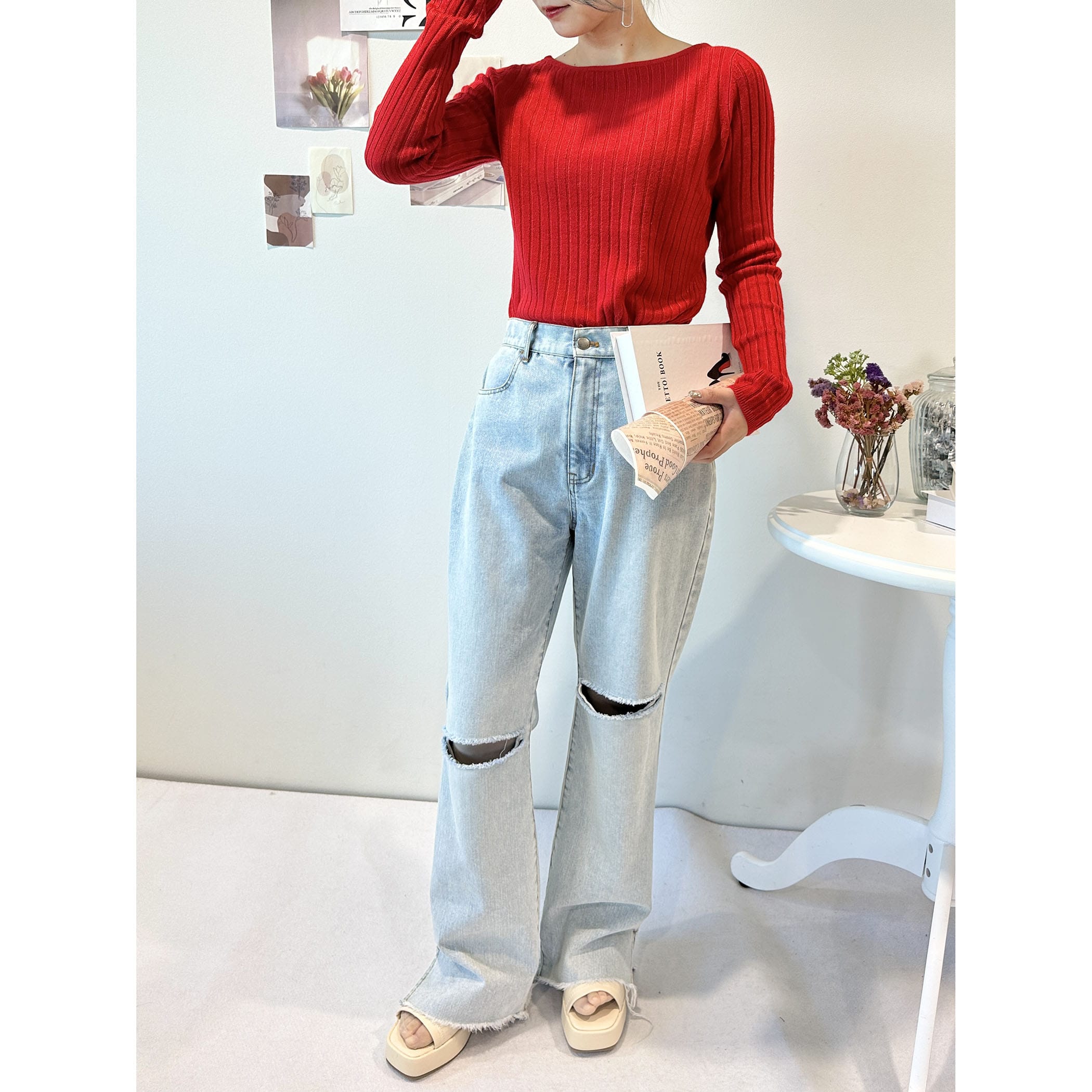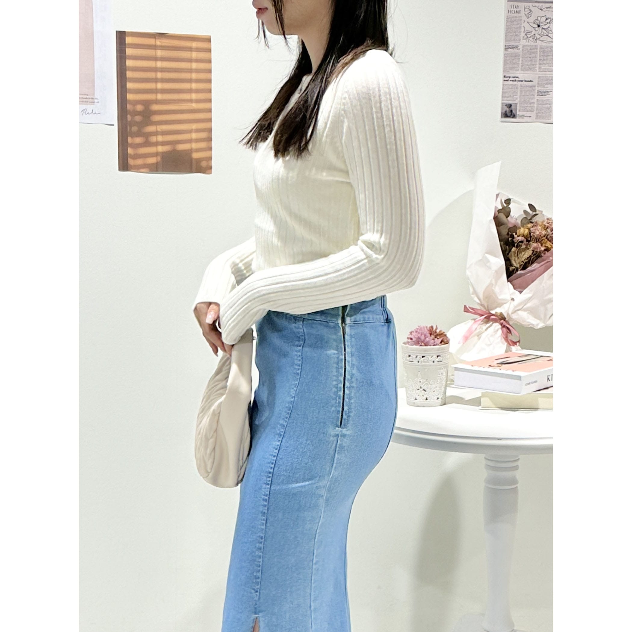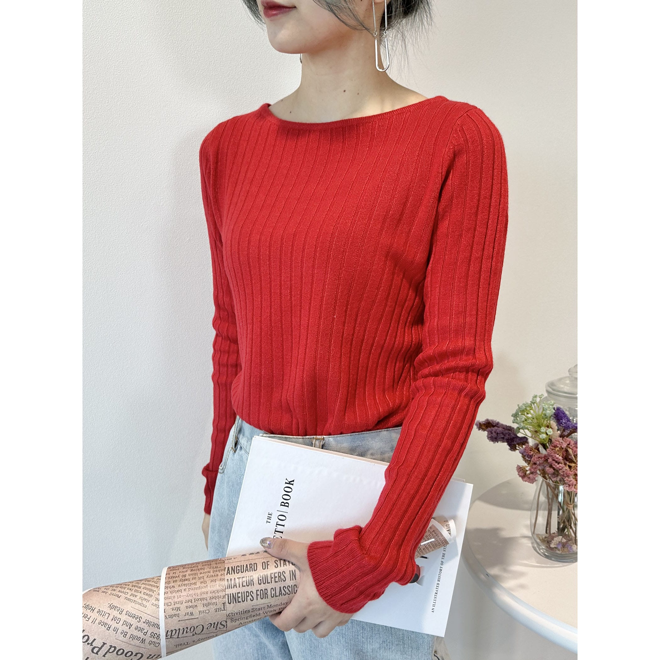 もちもちな肌触りが心地良いリブニット。手洗いが可能なのでご自宅でもお手入れしやすく、デイリーに着回して頂けるアイテムです。ボートネックデザインで、フェイスラインに女性らしい雰囲気を演出してくれます。フェミニンなスカートやカジュアルなデニムボトムスなど様々なボトムスと相性抜群。サロペットやジャンスカのINにも使えるシンプルニットです。