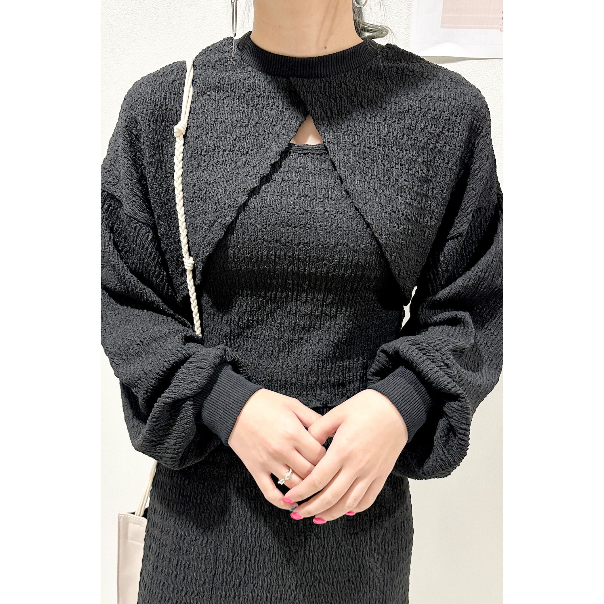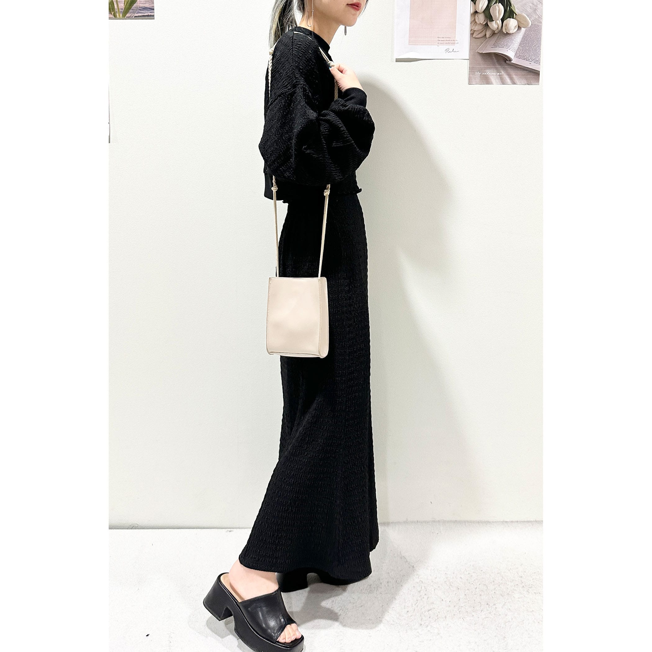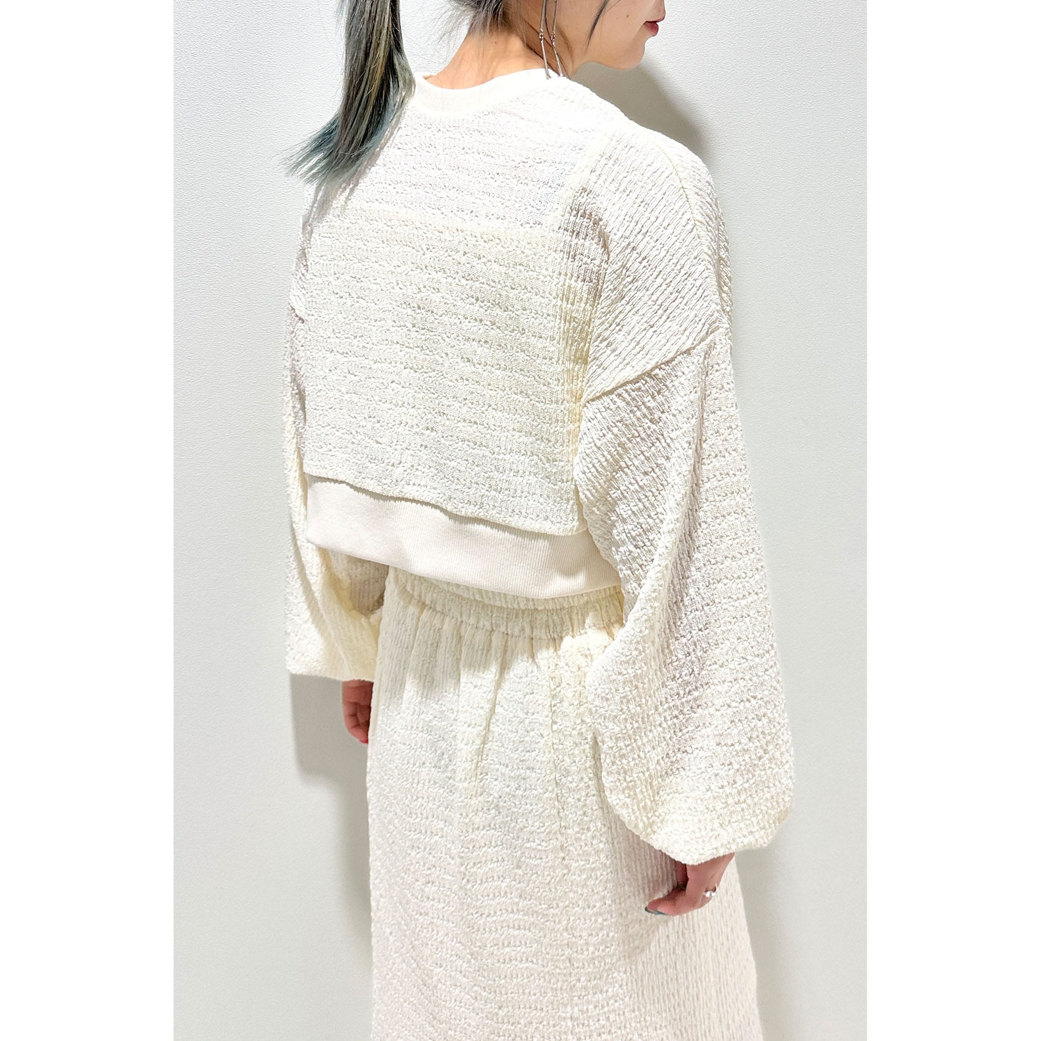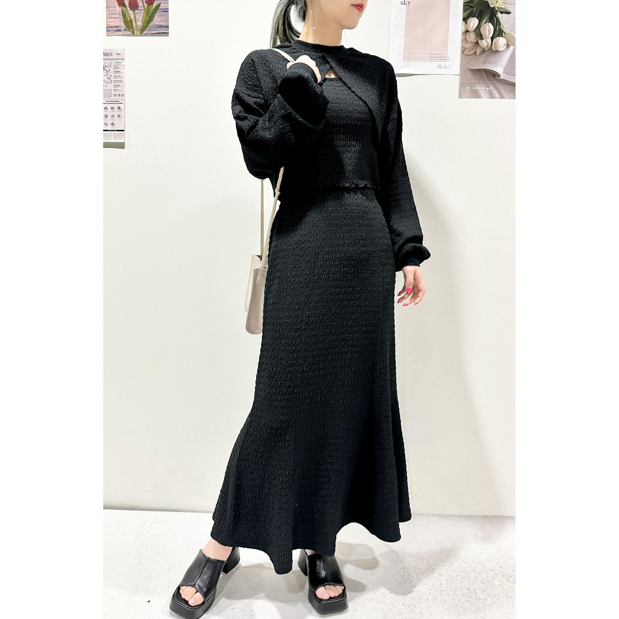 クロップド丈でトレンディムード高まる短丈トップスとキャミとスカートの3点セットです。裾はリブで絞っており肩が落ちた長袖にパフ感がキュート。キャミは前後スクエアネックでジャガードカット素材ですっきりフィットし、カップ付きなのでそのまま下着としても使えます。スカートはマーメイドシルエットになっており程よく体にフィットしレディライクな印象に◎別々でも着用いただけるので、ハイウエストのパンツでスタイリッシュにしたり、トップスをワンピと合わせたり、キャミにカーディガンを羽織っても◎様々なコーディネートが楽しめます♪※アイボリーのスカートのみ裏地付き