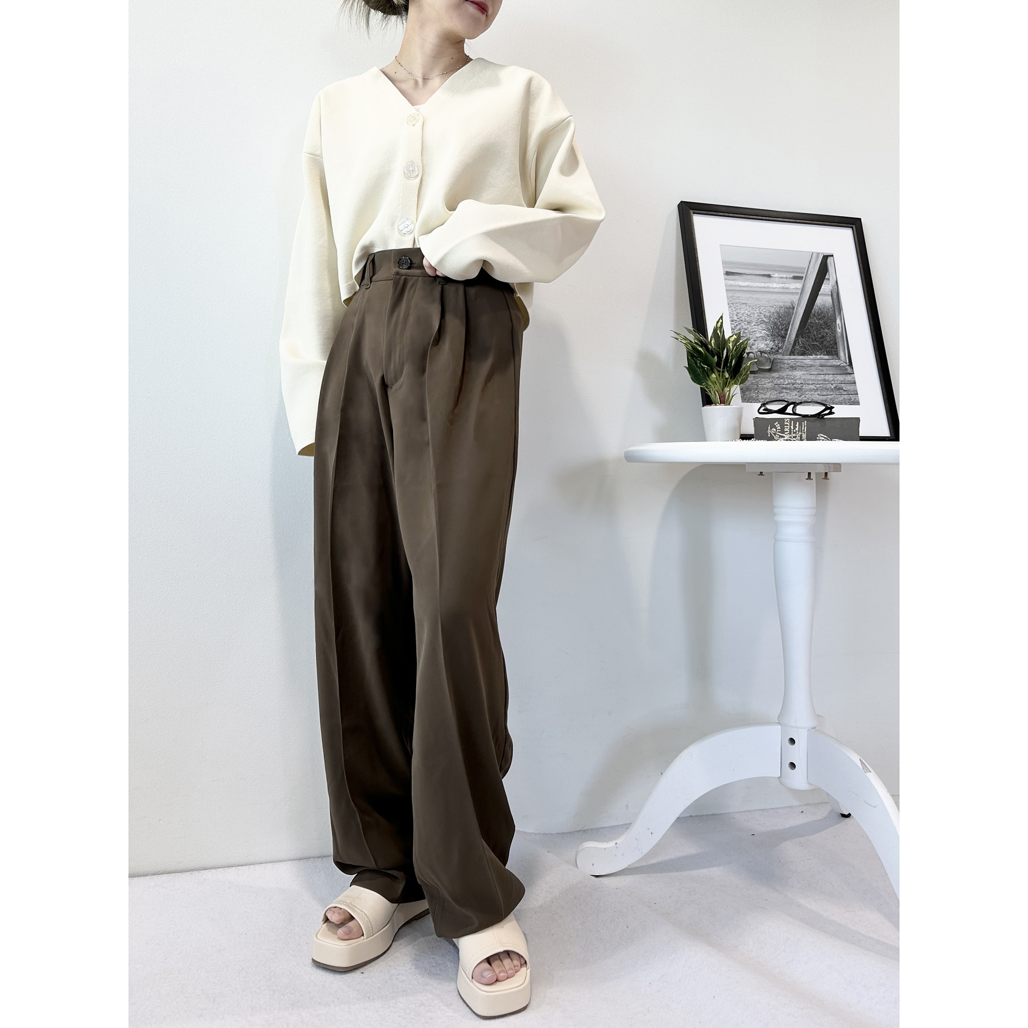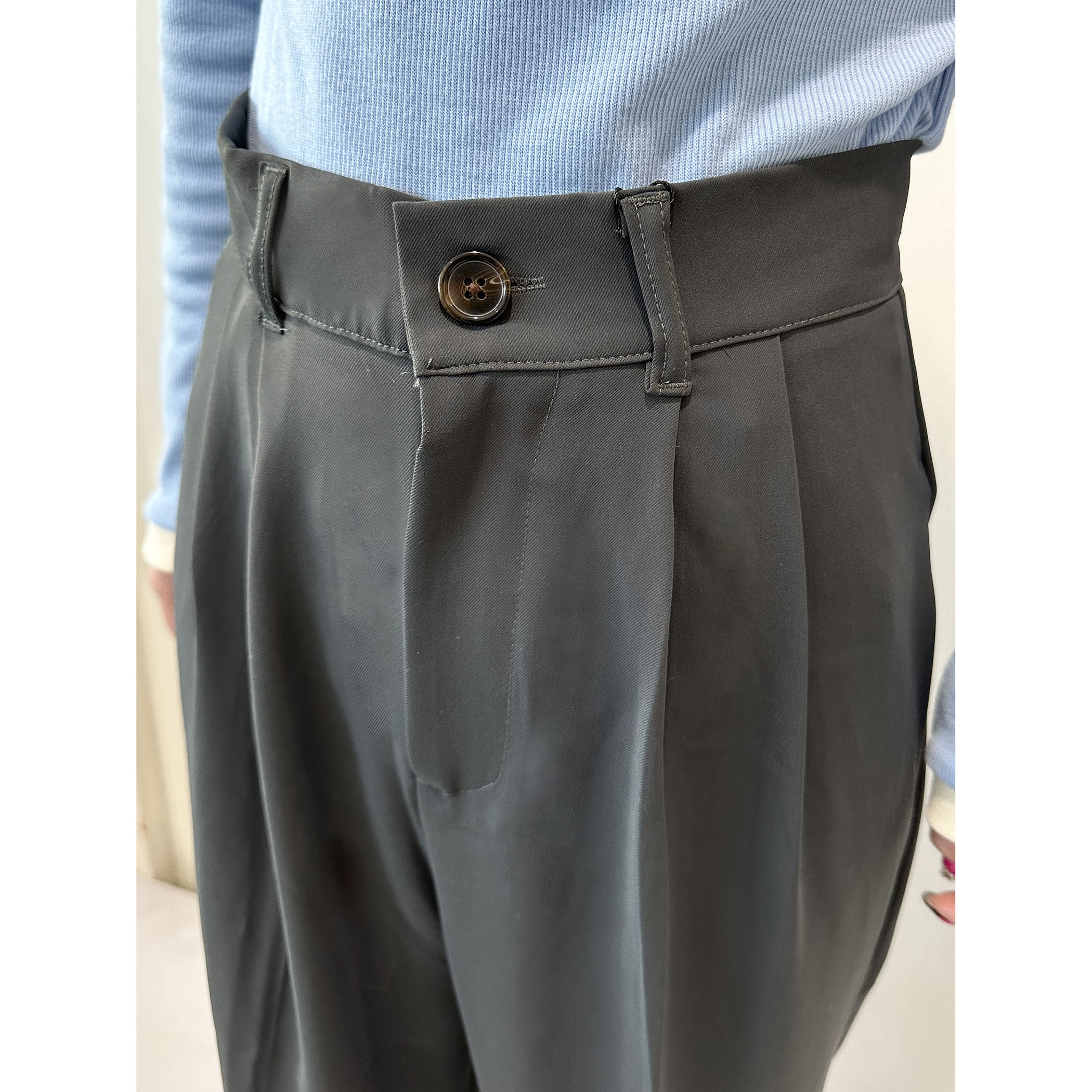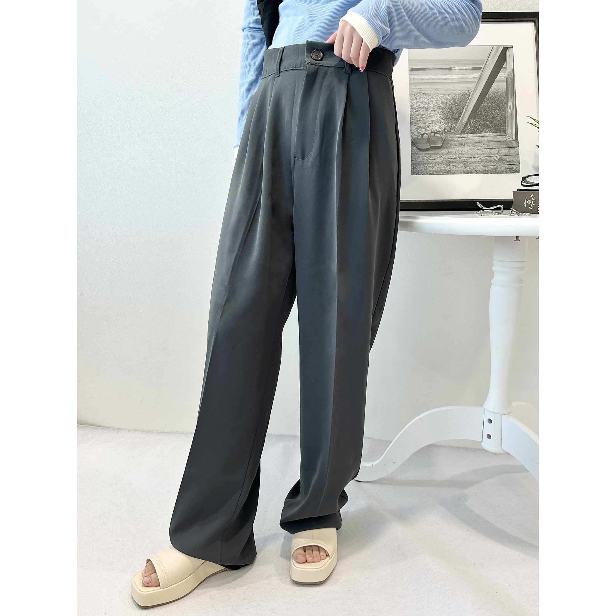 ウエストタックのきれいな縦落ちシルエットで女性らしい腰回りを演出し