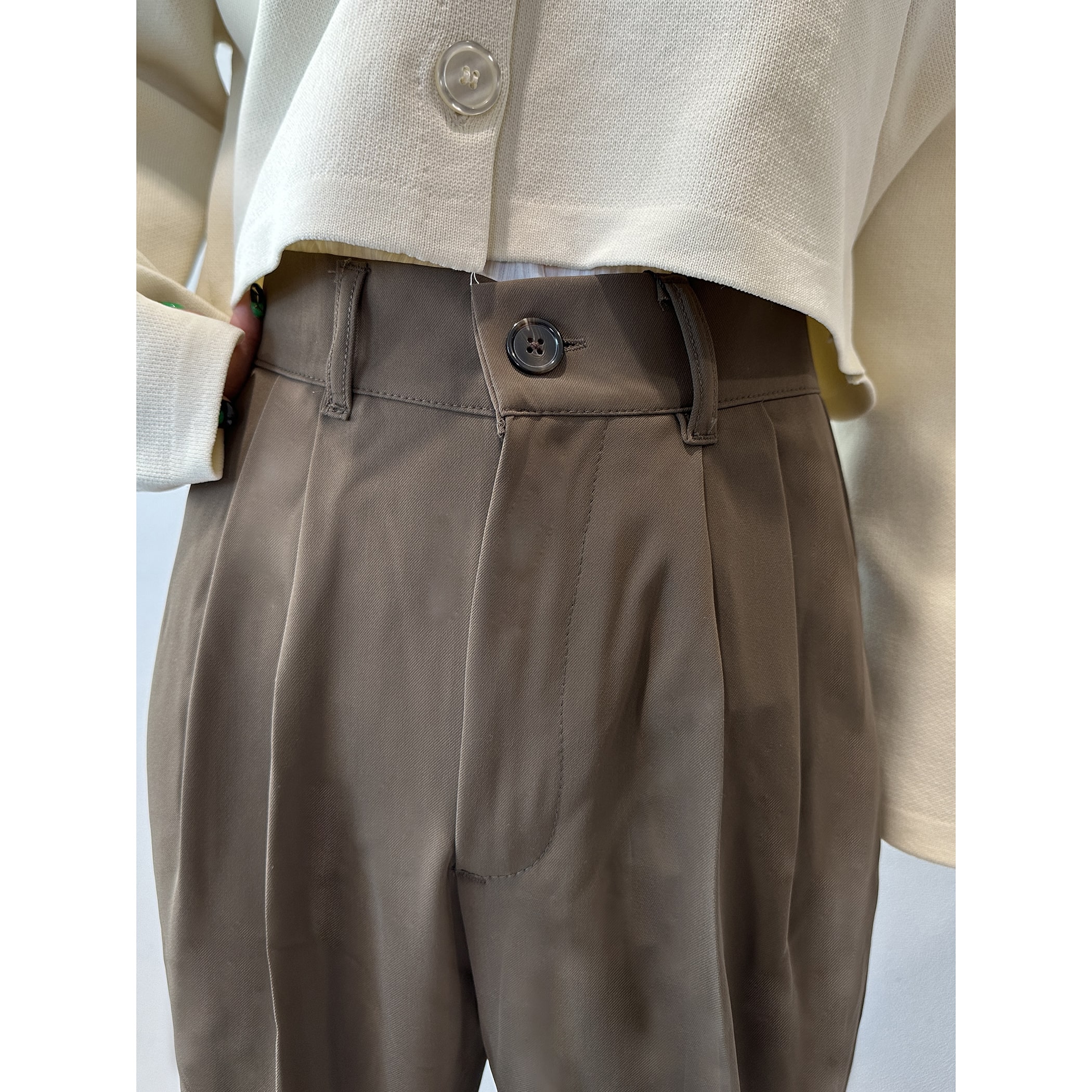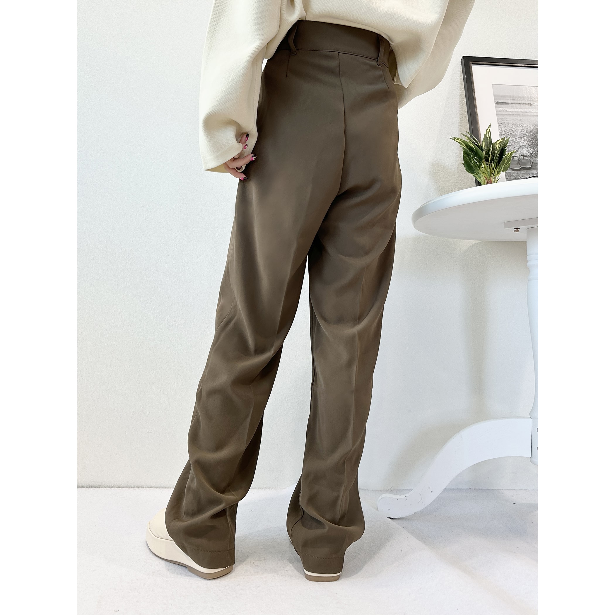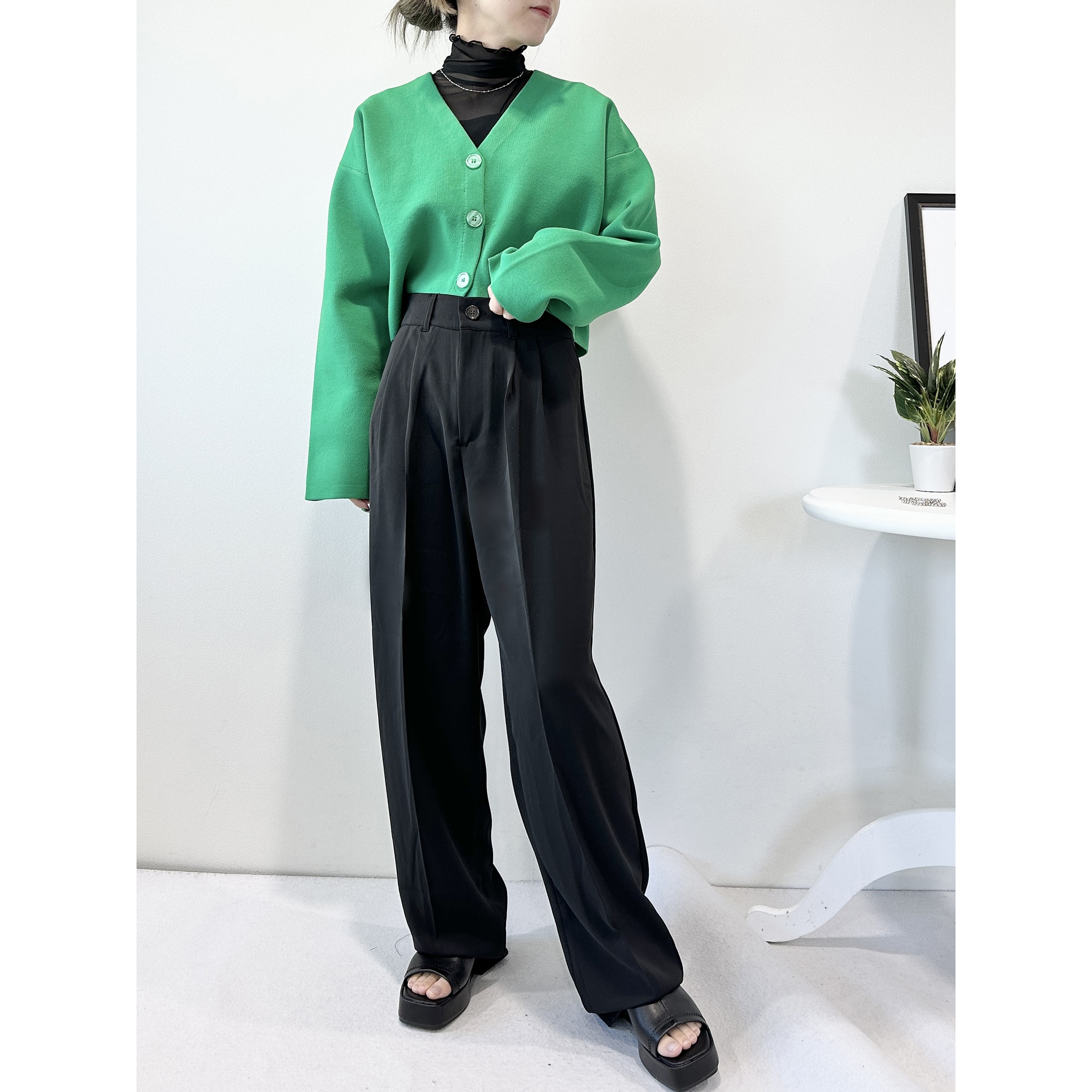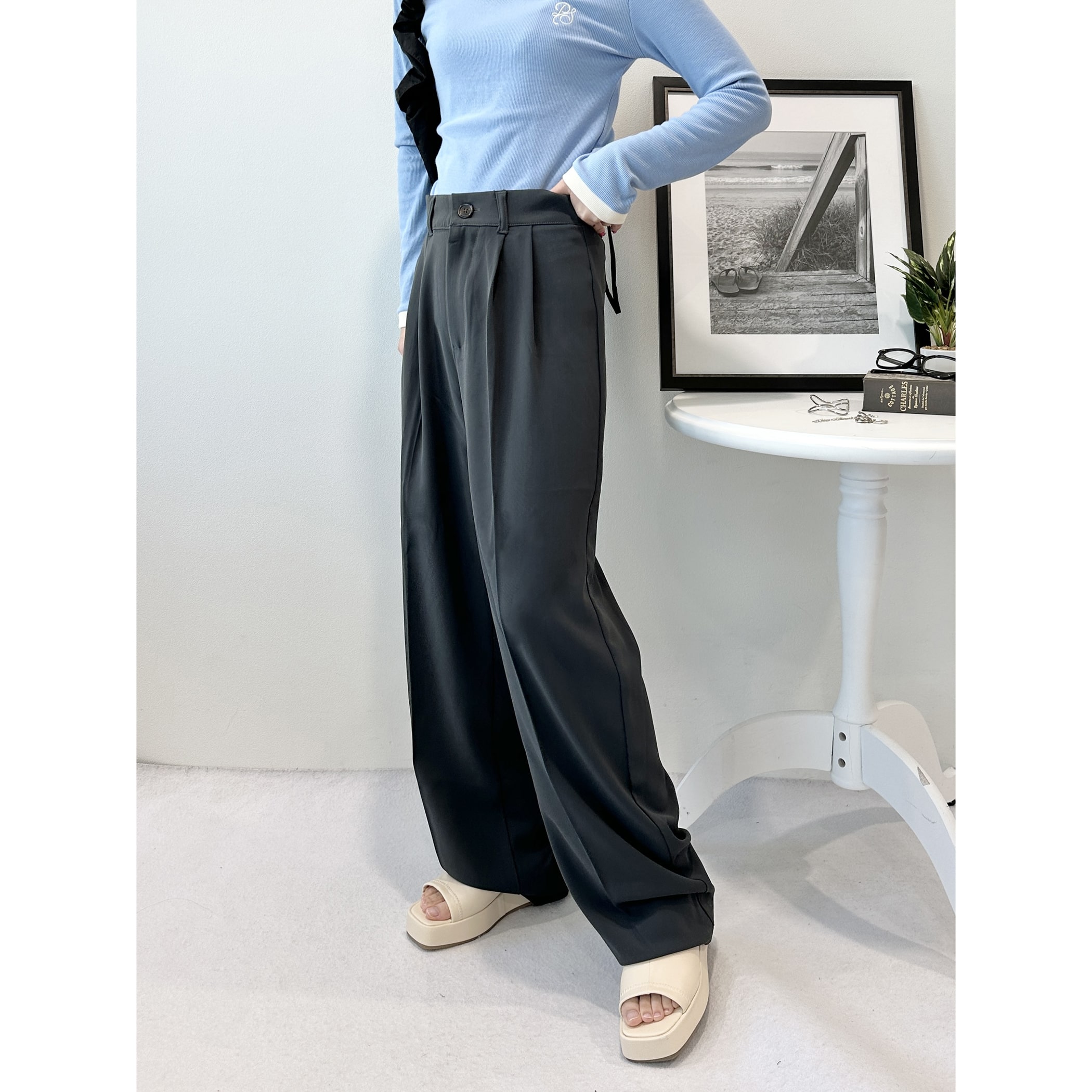 ウエストタックのきれいな縦落ちシルエットで女性らしい腰回りを演出し