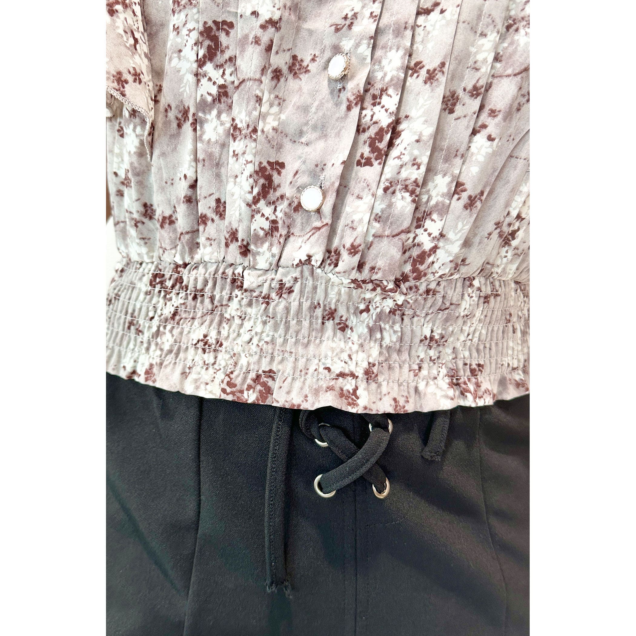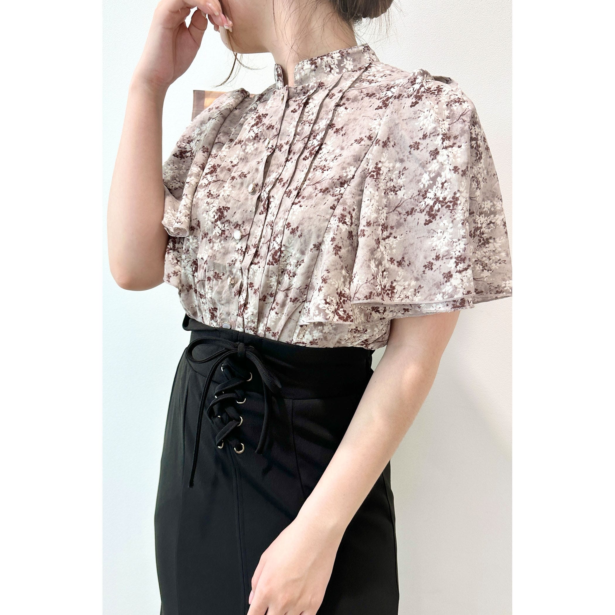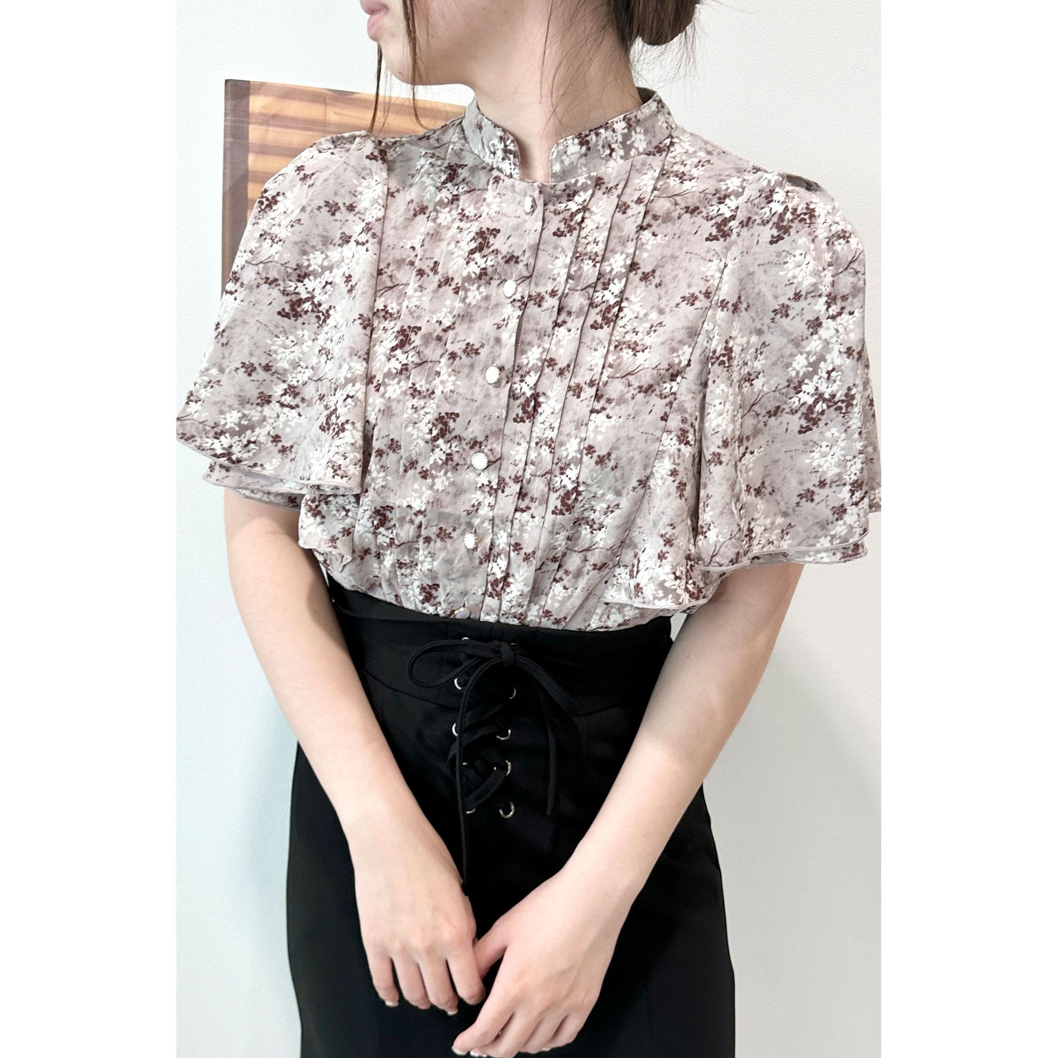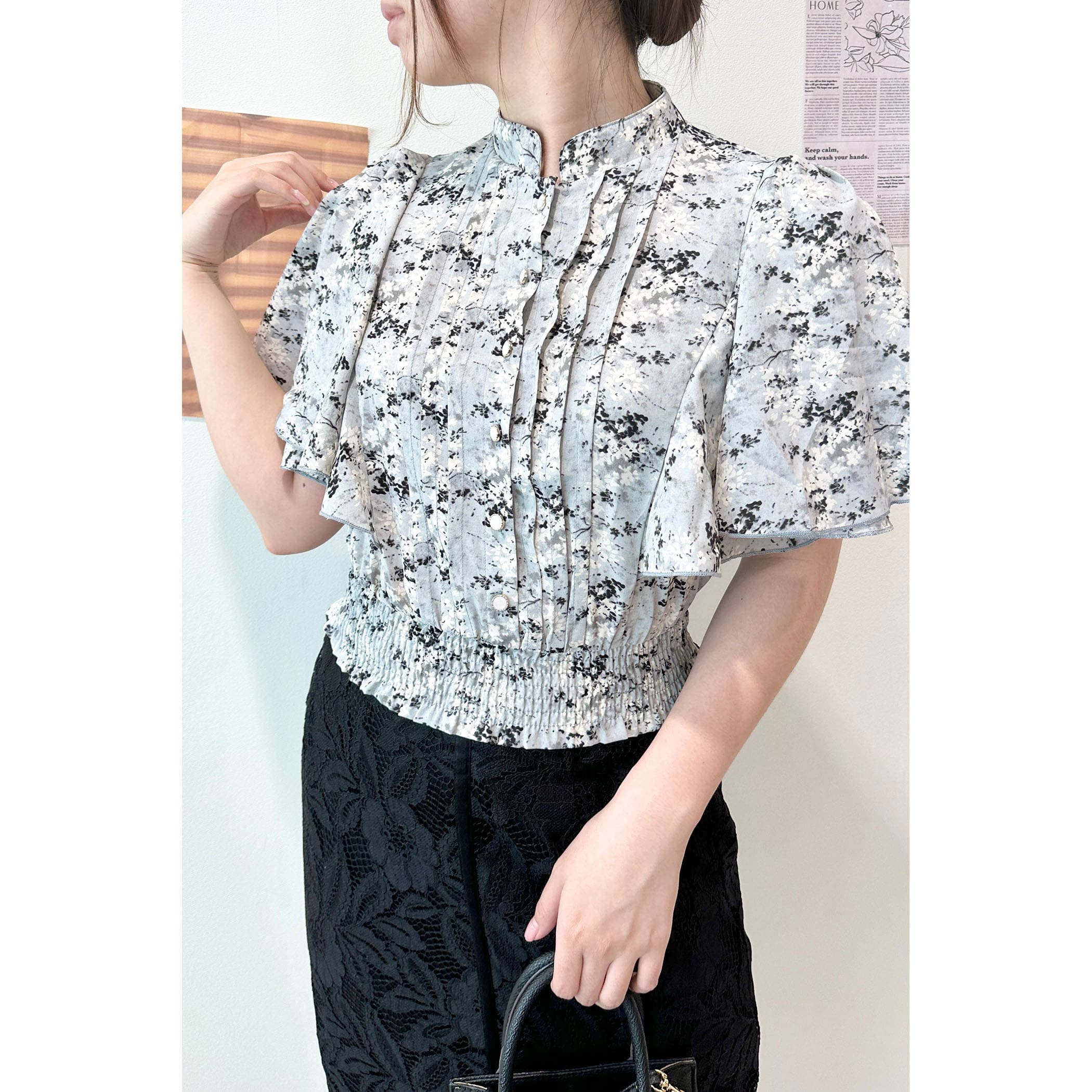 フレアデザインの袖とフラワープリントがフェミニンムードを演出してくれるブラウス。ウエストのシャーリングがアクセントになっており、ウエストを細く見せてくれます。パンツスタイルにもスカートスタイルにも幅広く着用できる万能アイテムです♪