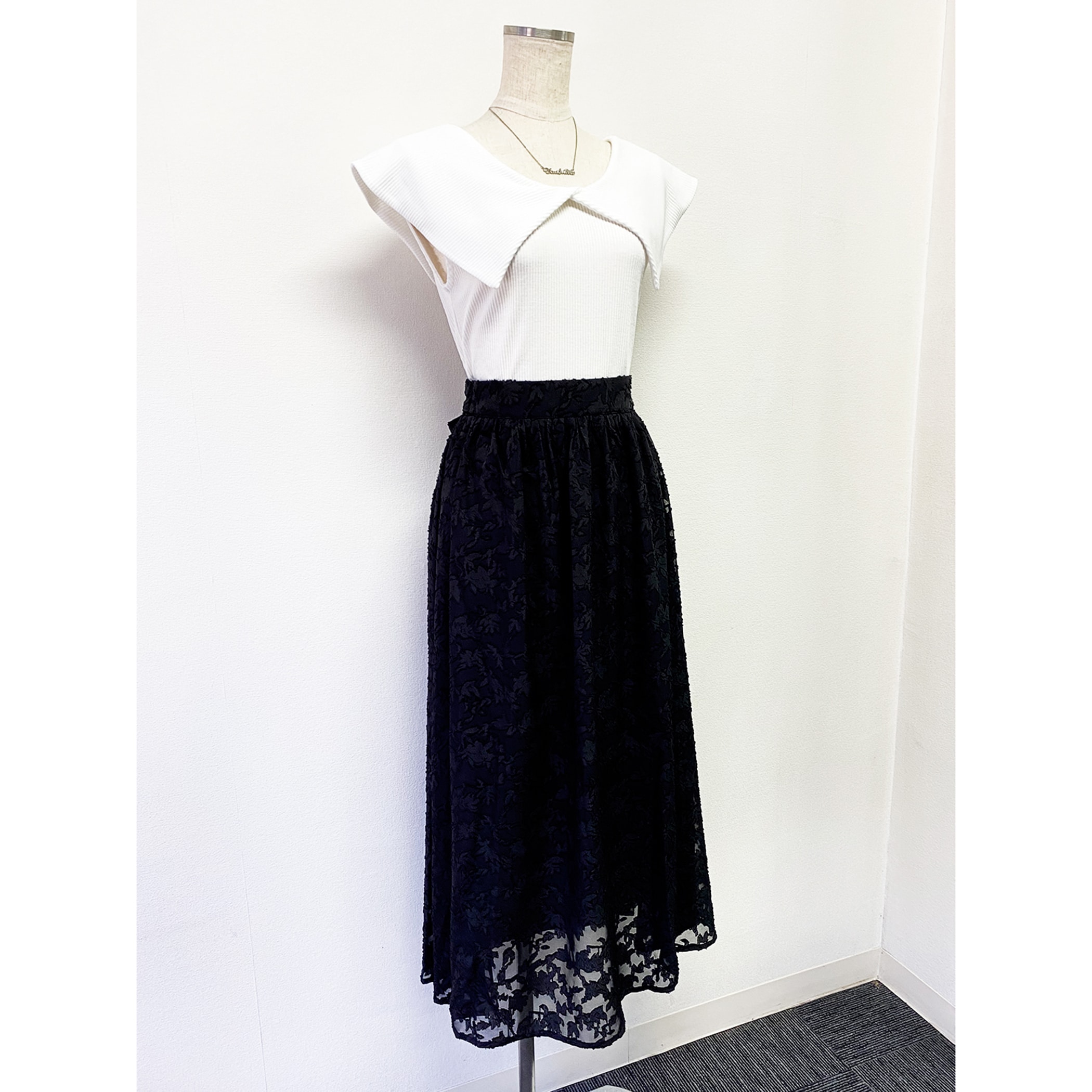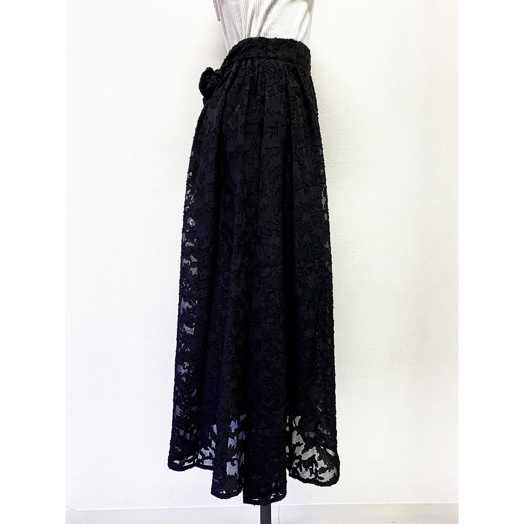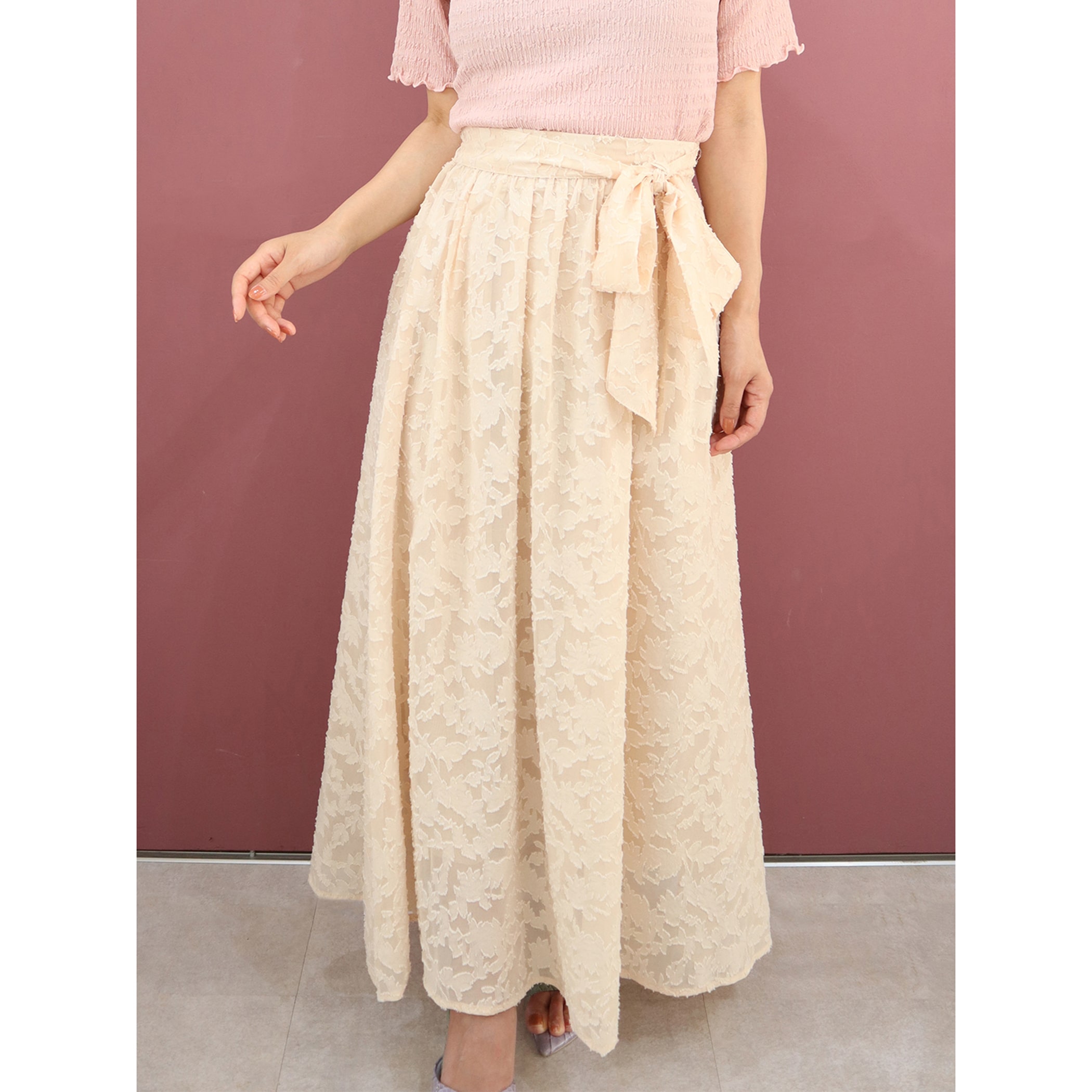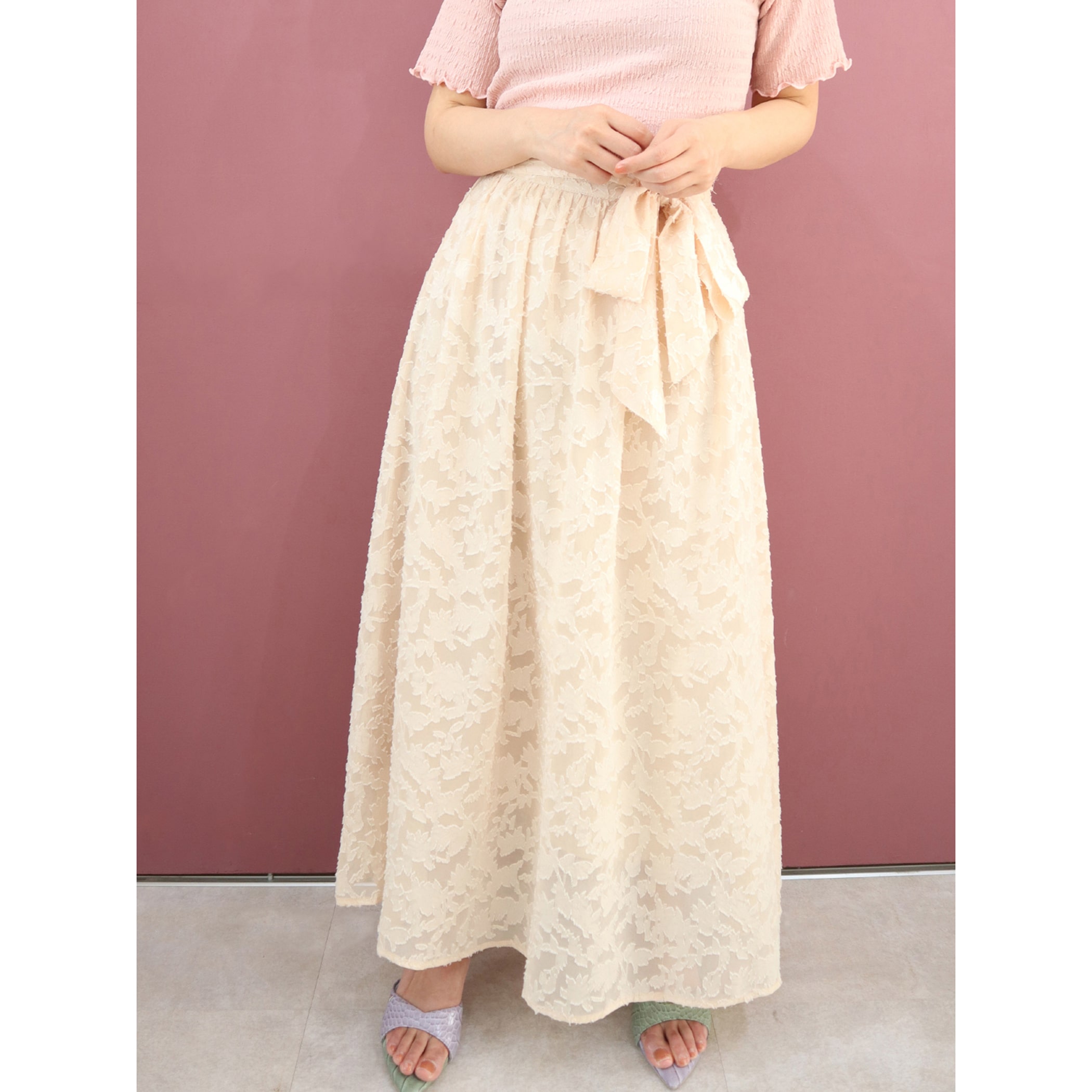 透け感のあるフラワージャガード素材が存在感がありながら美しいシルエット◎