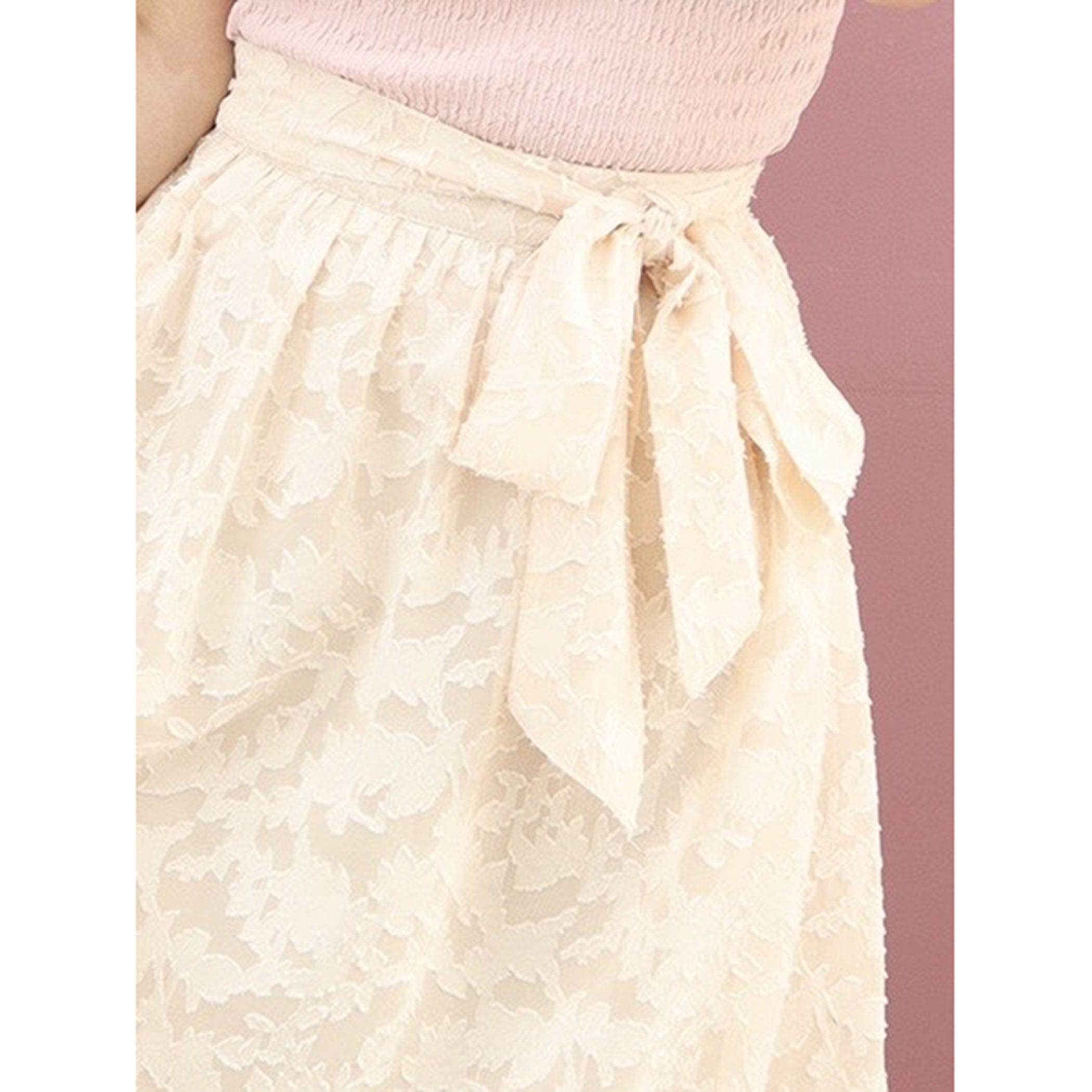 花柄ジャカードがさりげなく、大人かわいいスタイルにぴったりです。