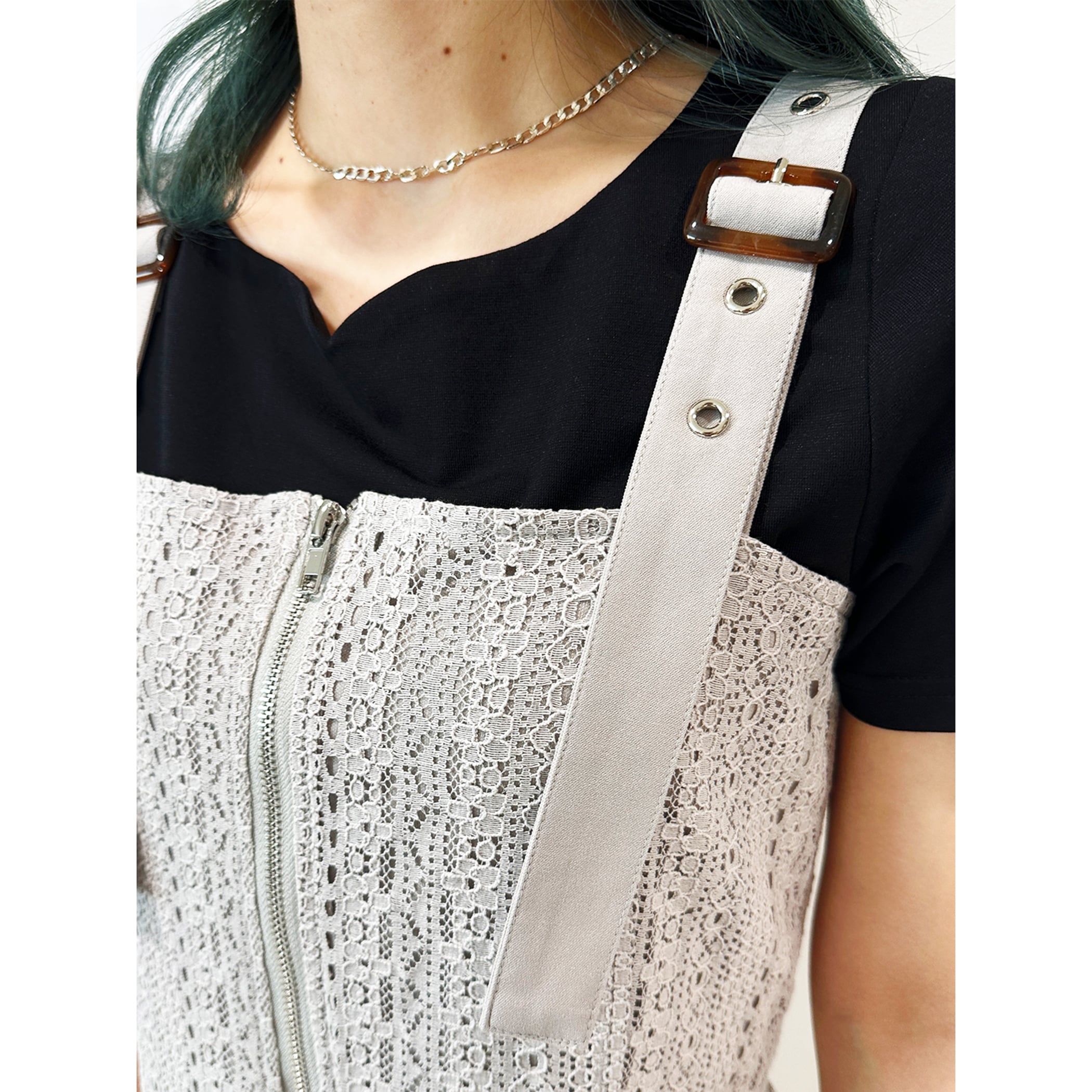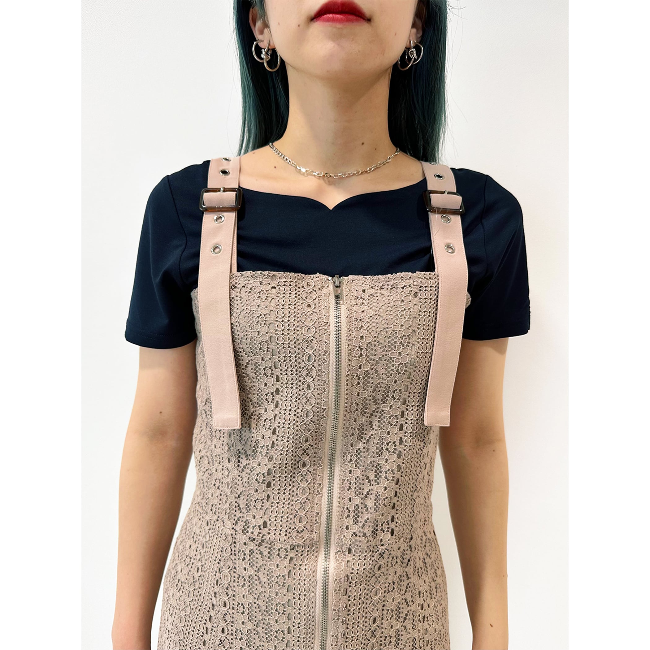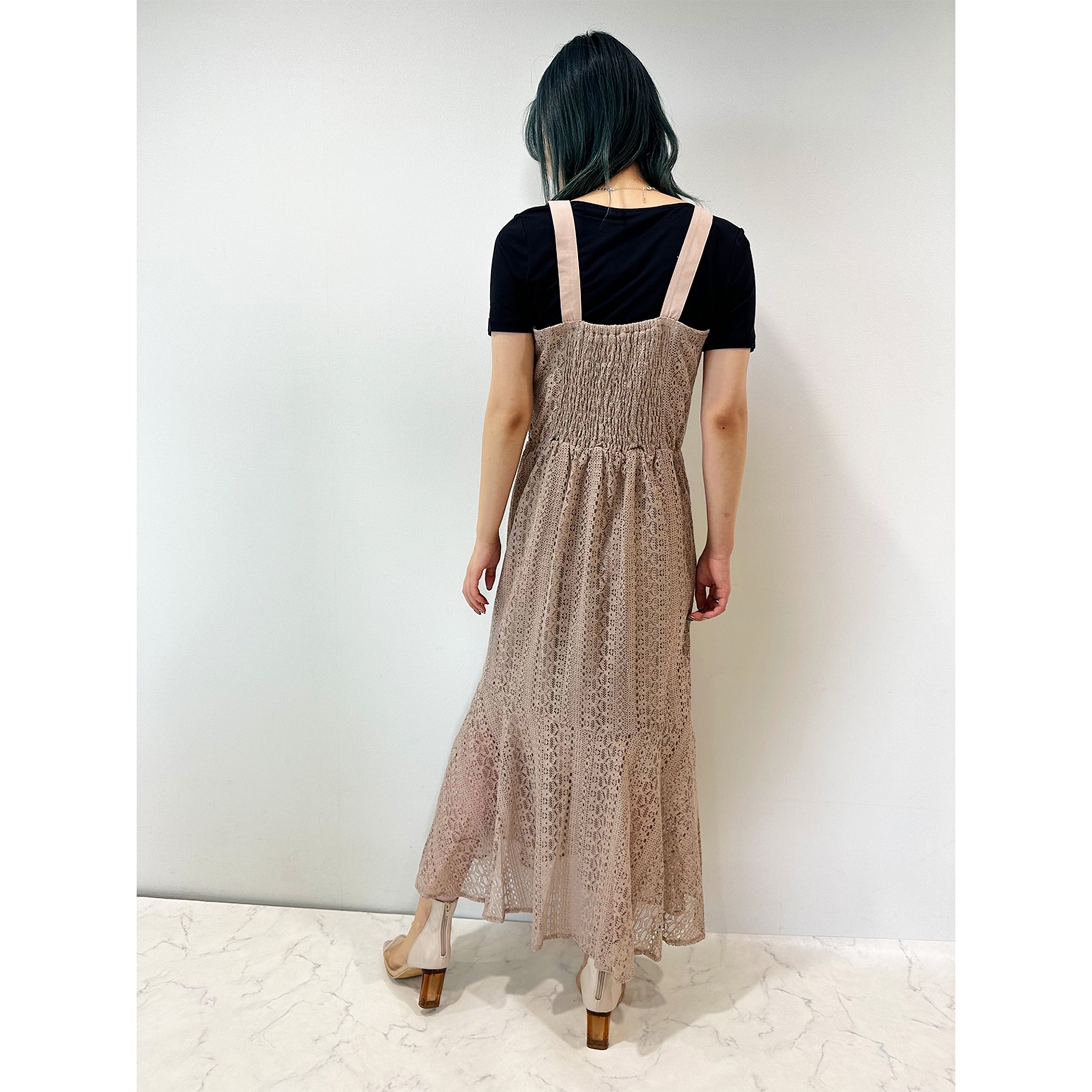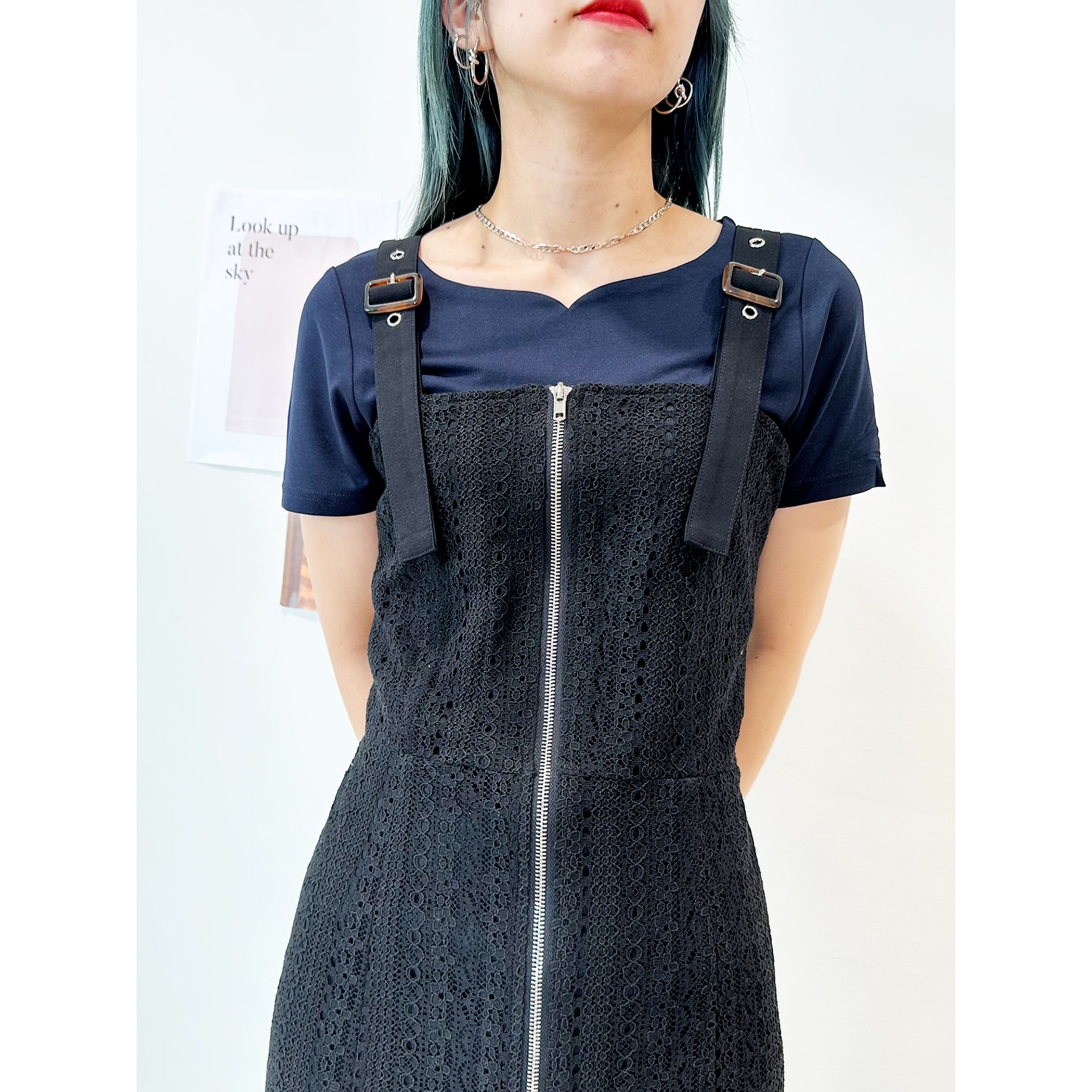 レースが着こなしのアクセントになるジャンパースカート。マーメイドシルエットで女性らしいスタイリングに仕上げてくれる一枚。シンプルなデザインなのでインナーを変えて幅広く着まわせるアイテムです。