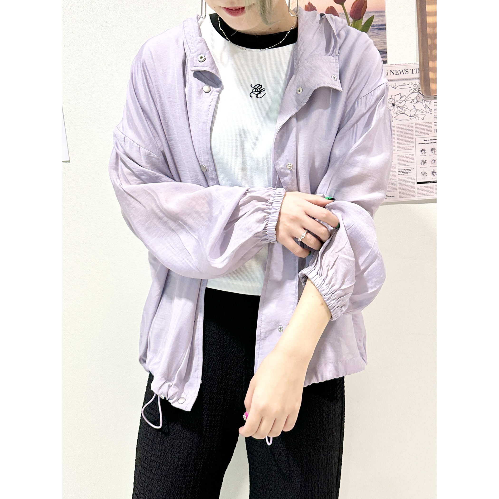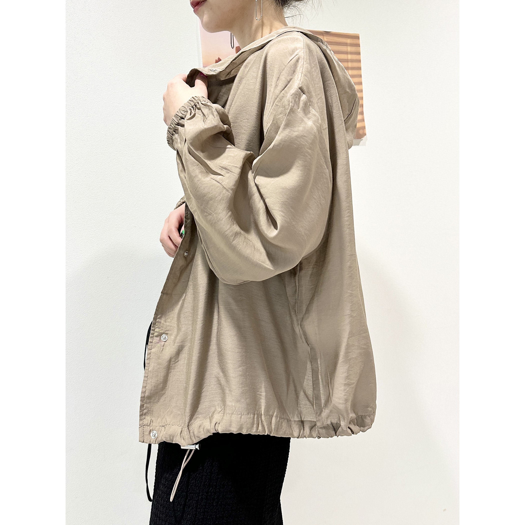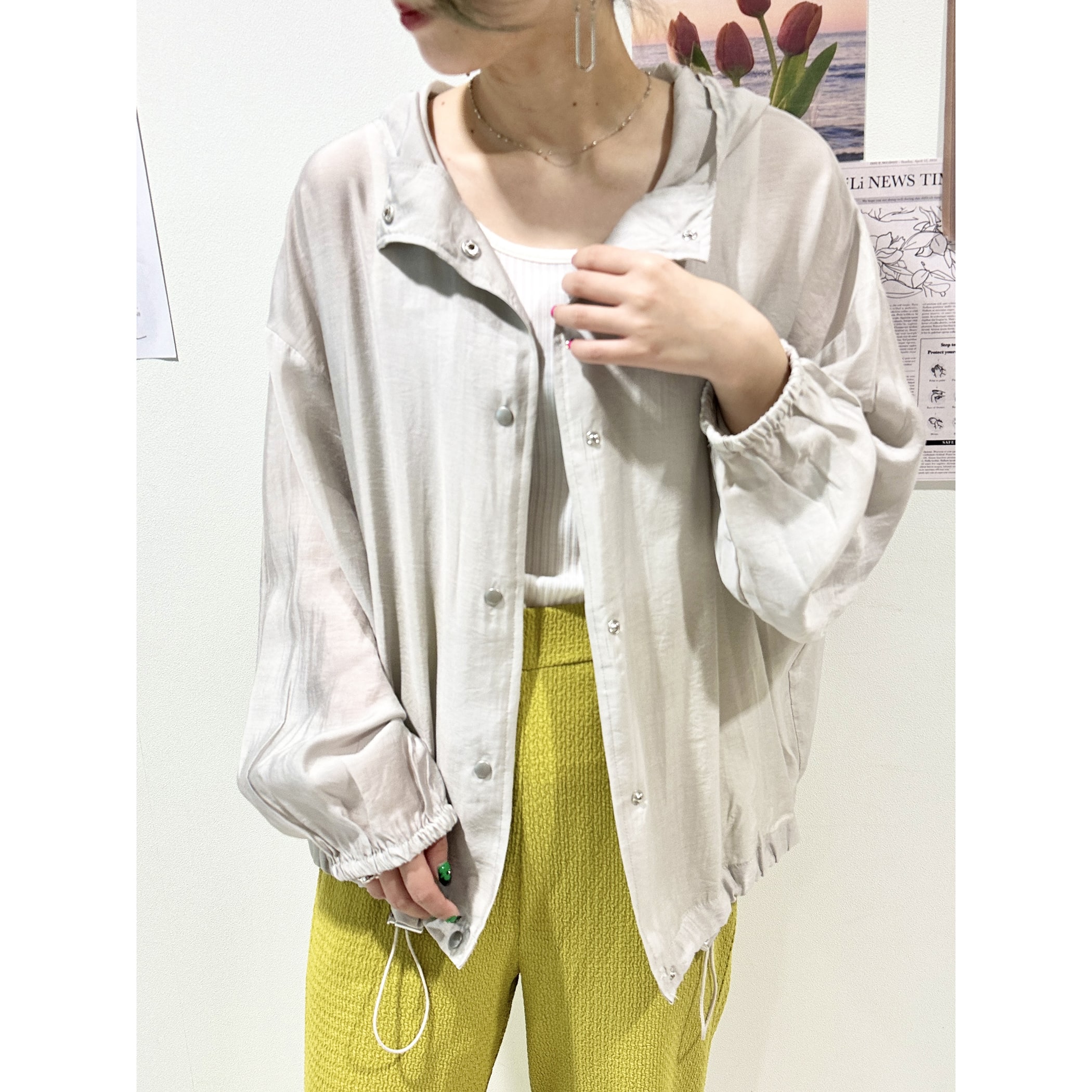 オーバーサイズのマウンテンパーカーをシアー素材で仕立てたトレンドライクなアイテム。透け感があり軽い素材なので春コーデに取り入れてほしい一枚。裾がドロスト仕様になっているのでサイズ調整ができるのも◎。気分に合わせてシルエットの変化も楽しめます。