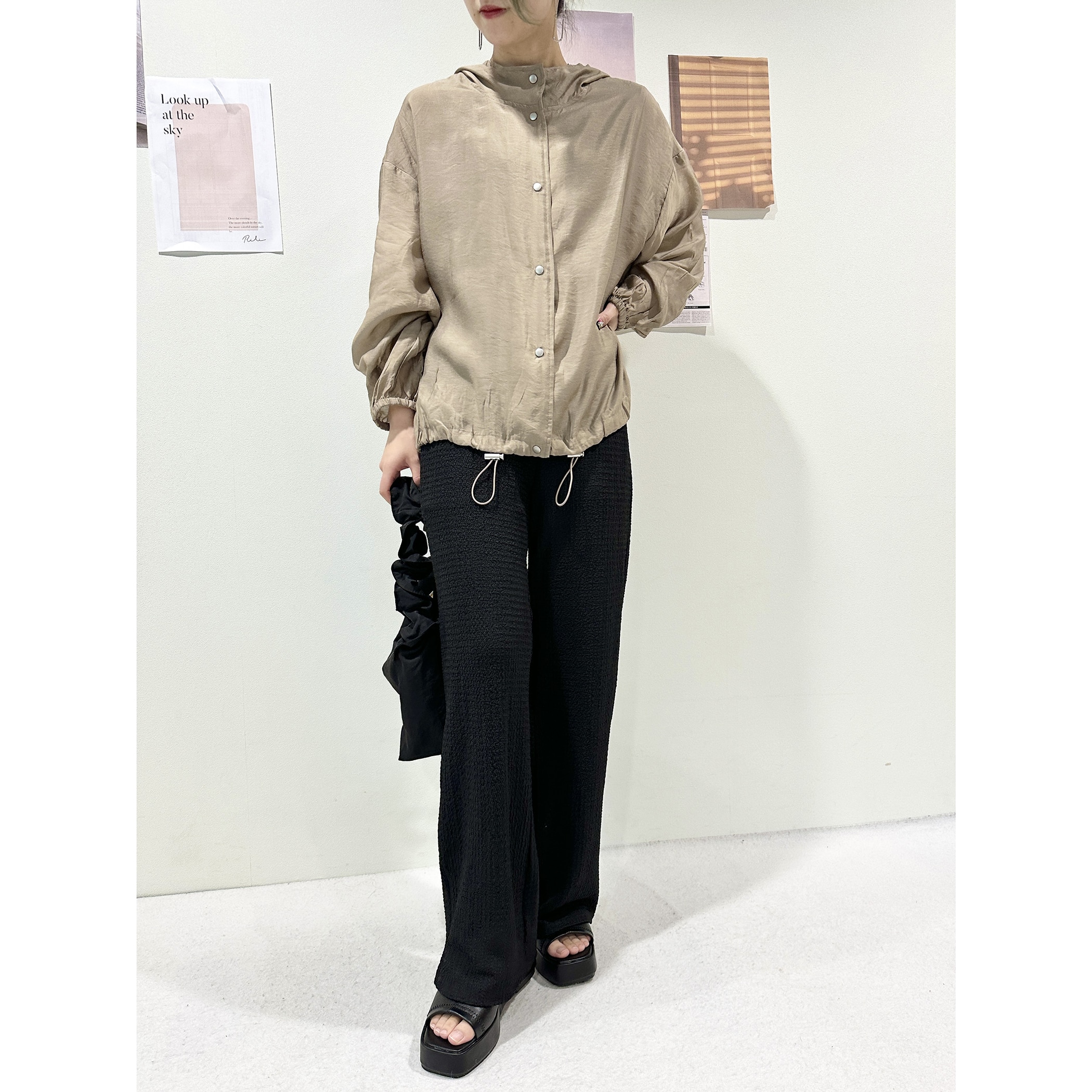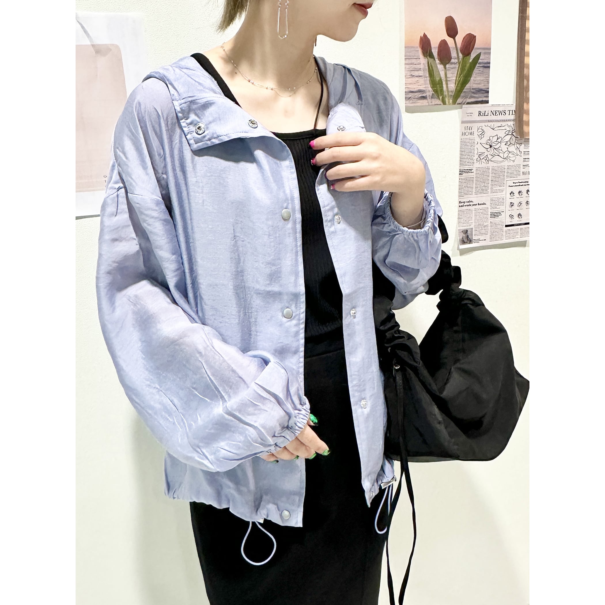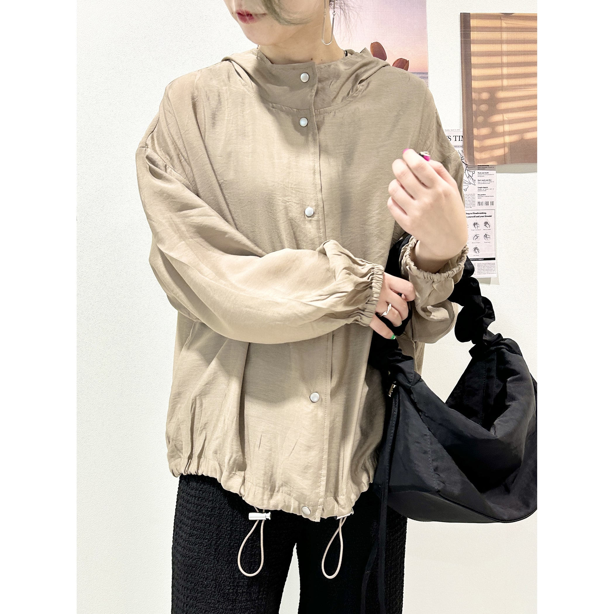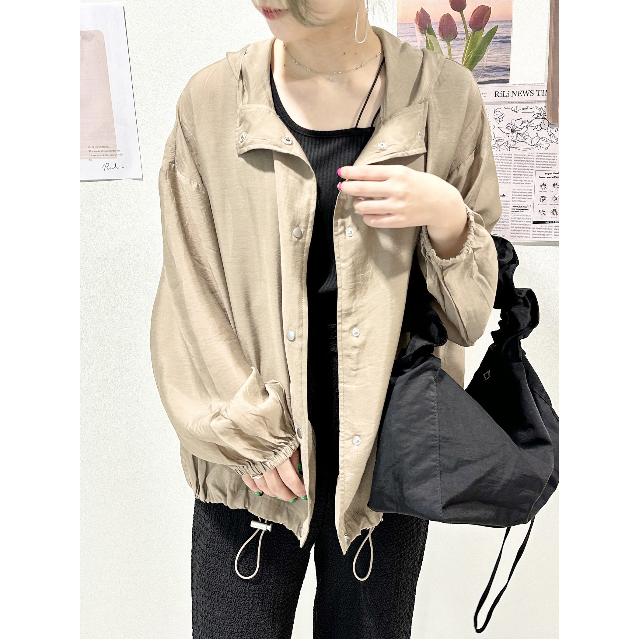 オーバーサイズのマウンテンパーカーをシアー素材で仕立てたトレンドライクなアイテム。透け感があり軽い素材なので春コーデに取り入れてほしい一枚。裾がドロスト仕様になっているのでサイズ調整ができるのも◎。気分に合わせてシルエットの変化も楽しめます。