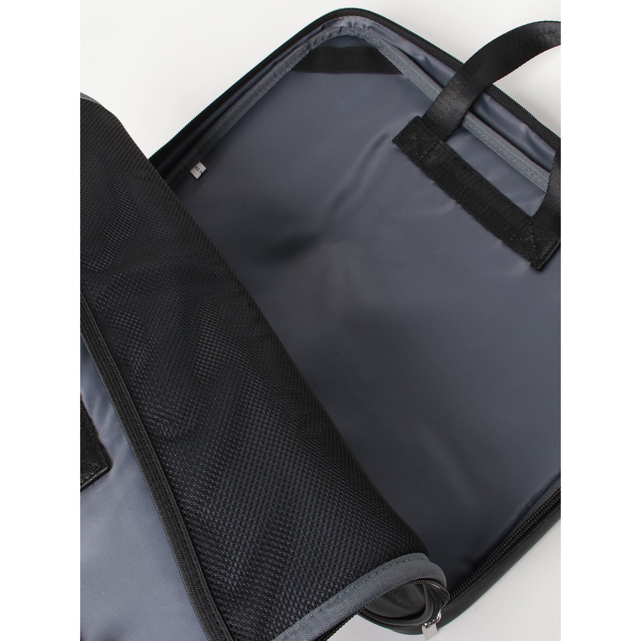 パンチング素材のバイカラーポーチシリーズ。日常使いの化粧ポーチにも、またガジェットケースとしてもお使いいただけます。マルチに使えるフラットなポーチです。出し入れできる持ち手も付いていて、PCバッグとしてもお使いいただけます。