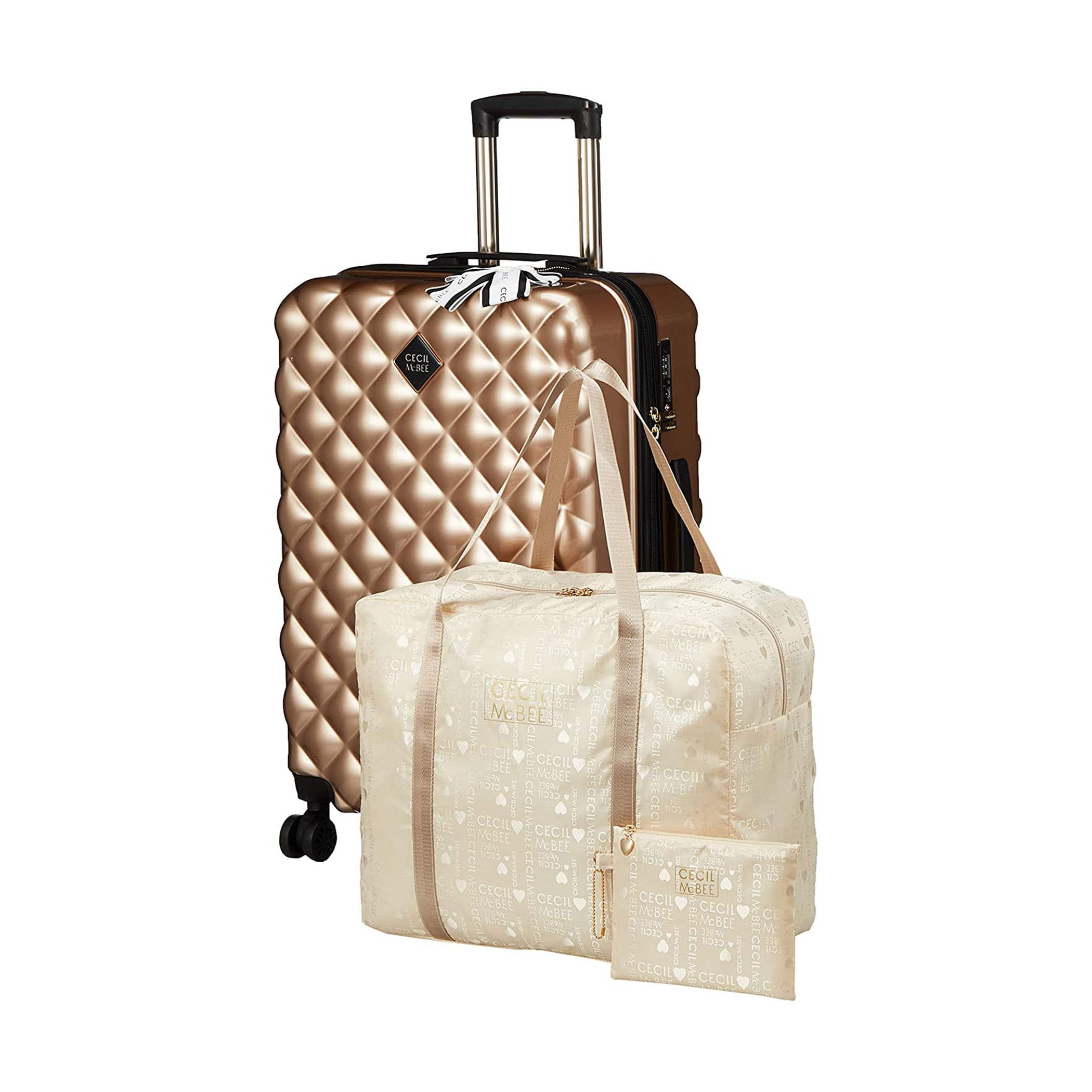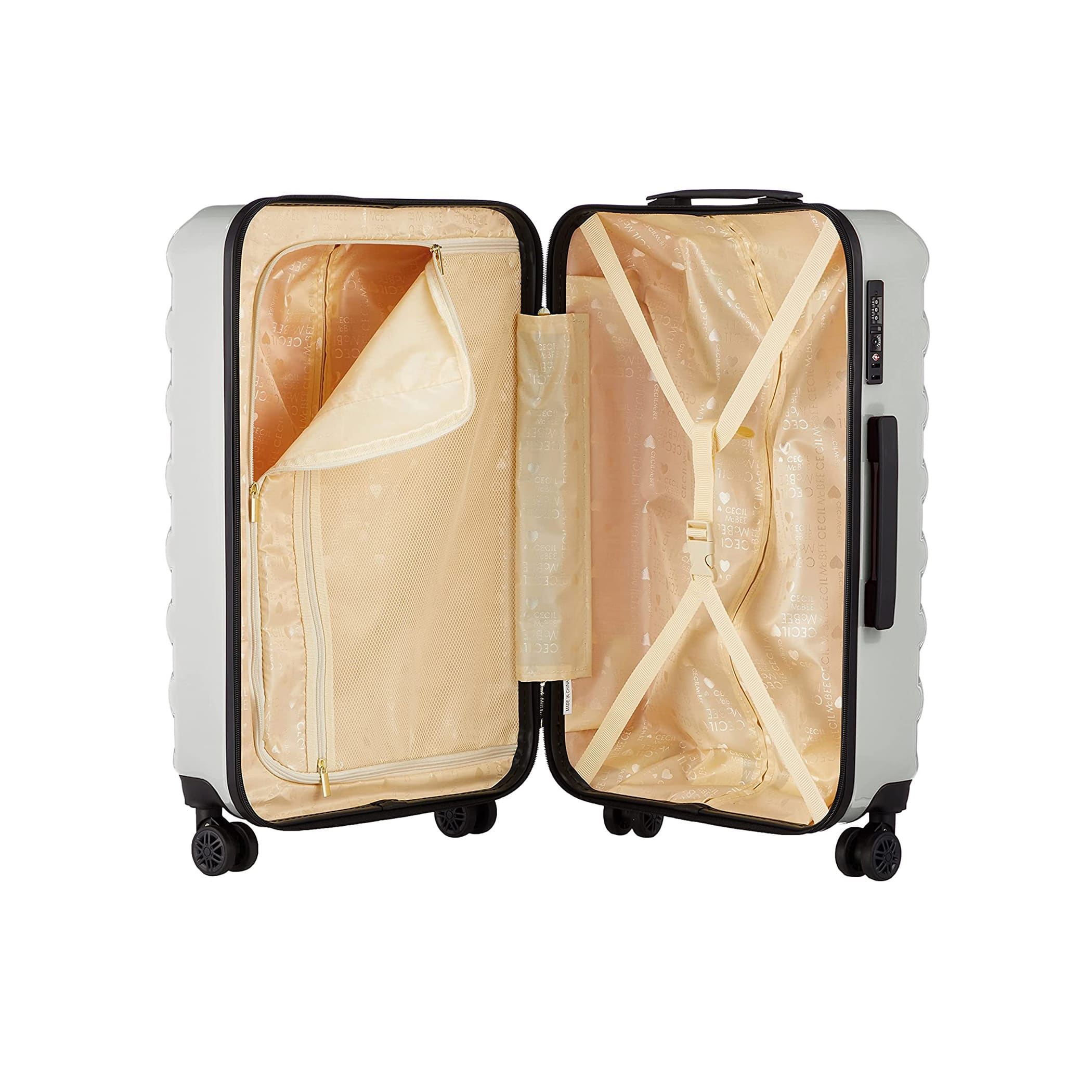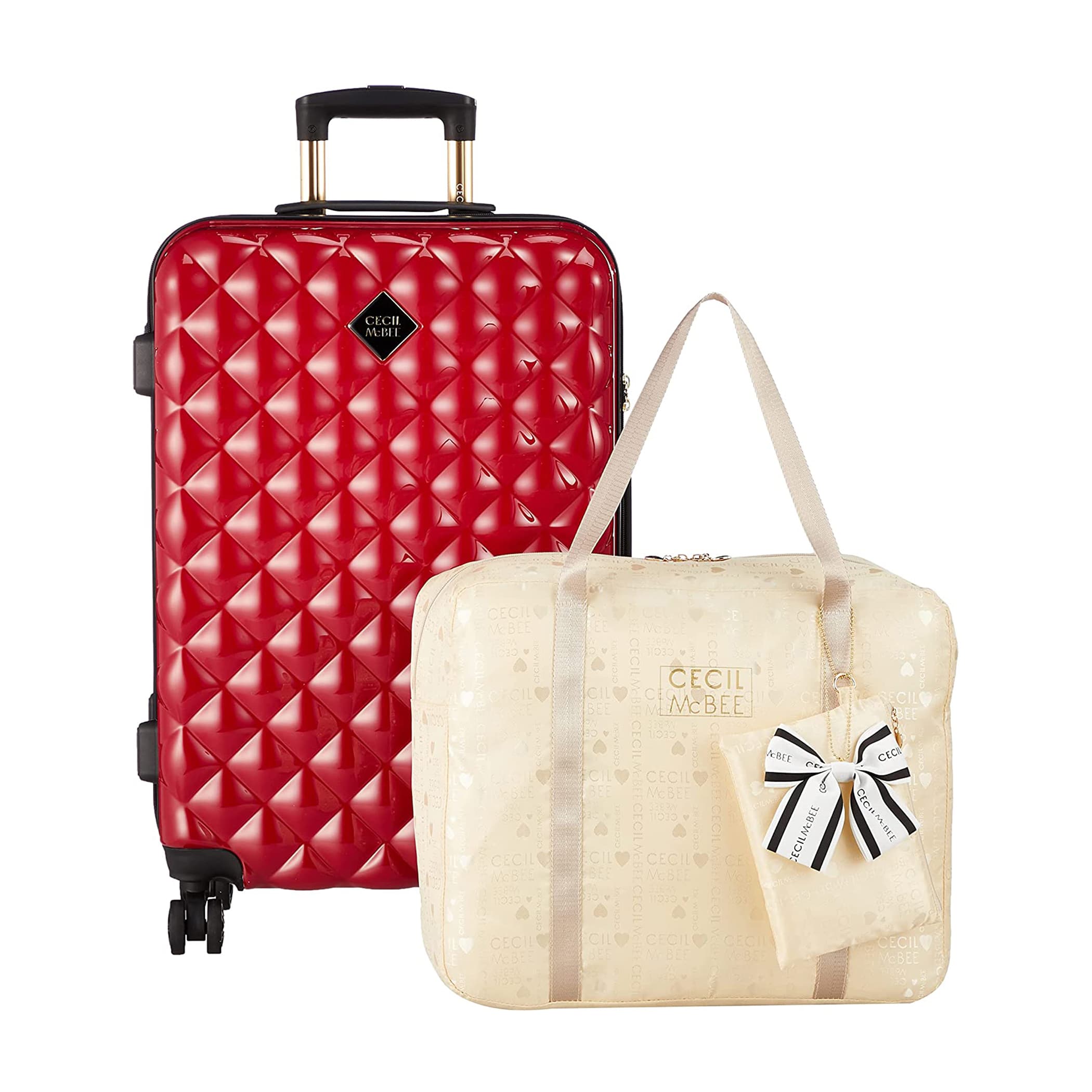 キルト風のボディーのキャリーケース。長旅に便利なサイズ感。内装にはオリジナルのジャカード素材を使用。エポタイプのプレートが高級感を演出。オリジナルジャカードのボストンとリボンチャームが付属されます。