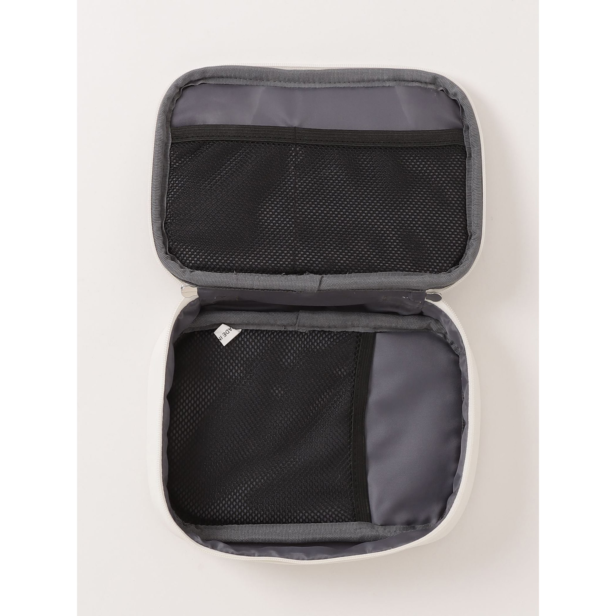パンチング素材のバイカラーポーチシリーズ。日常使いの化粧ポーチにも、またガジェットケースとしてもお使いいただけます。持ち手が付いたマルチに使えるスクエア型のポーチです。ガジェットケースとしてもお使いいただけます。
