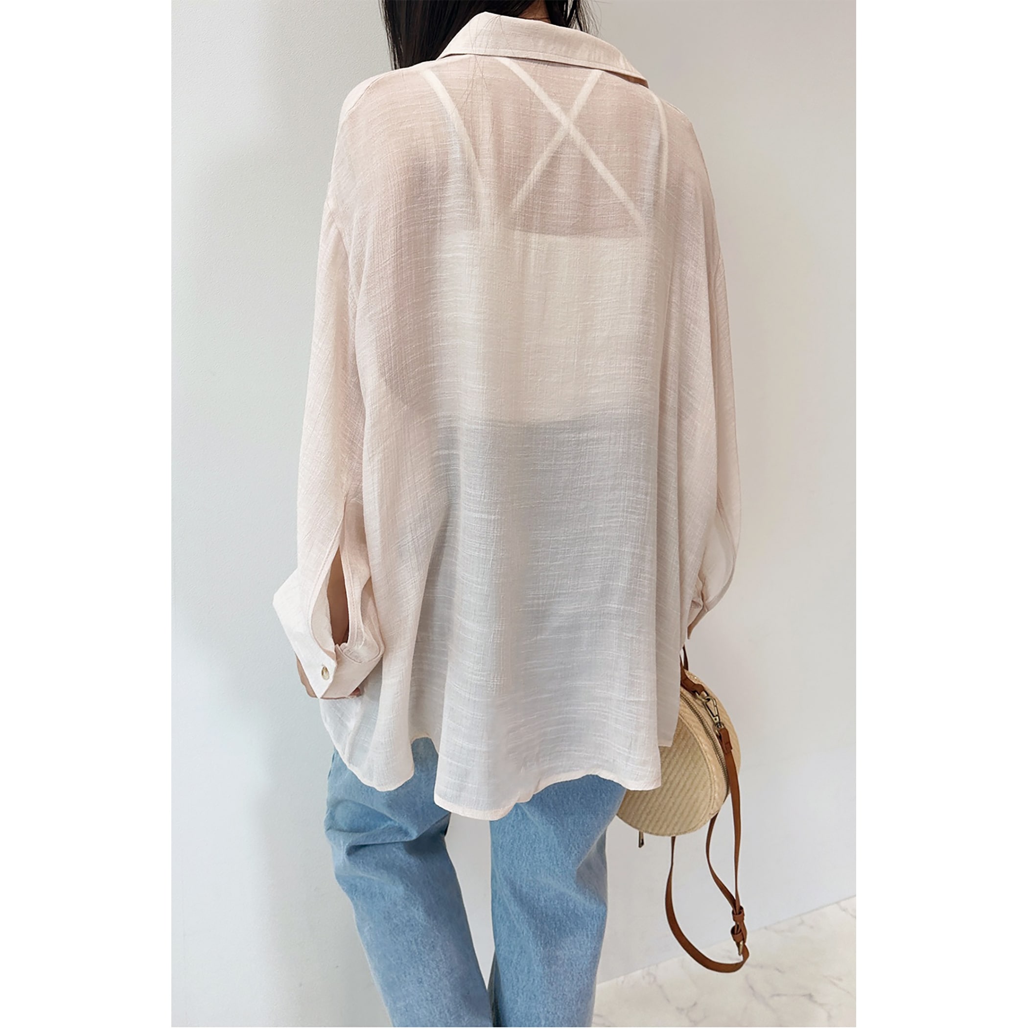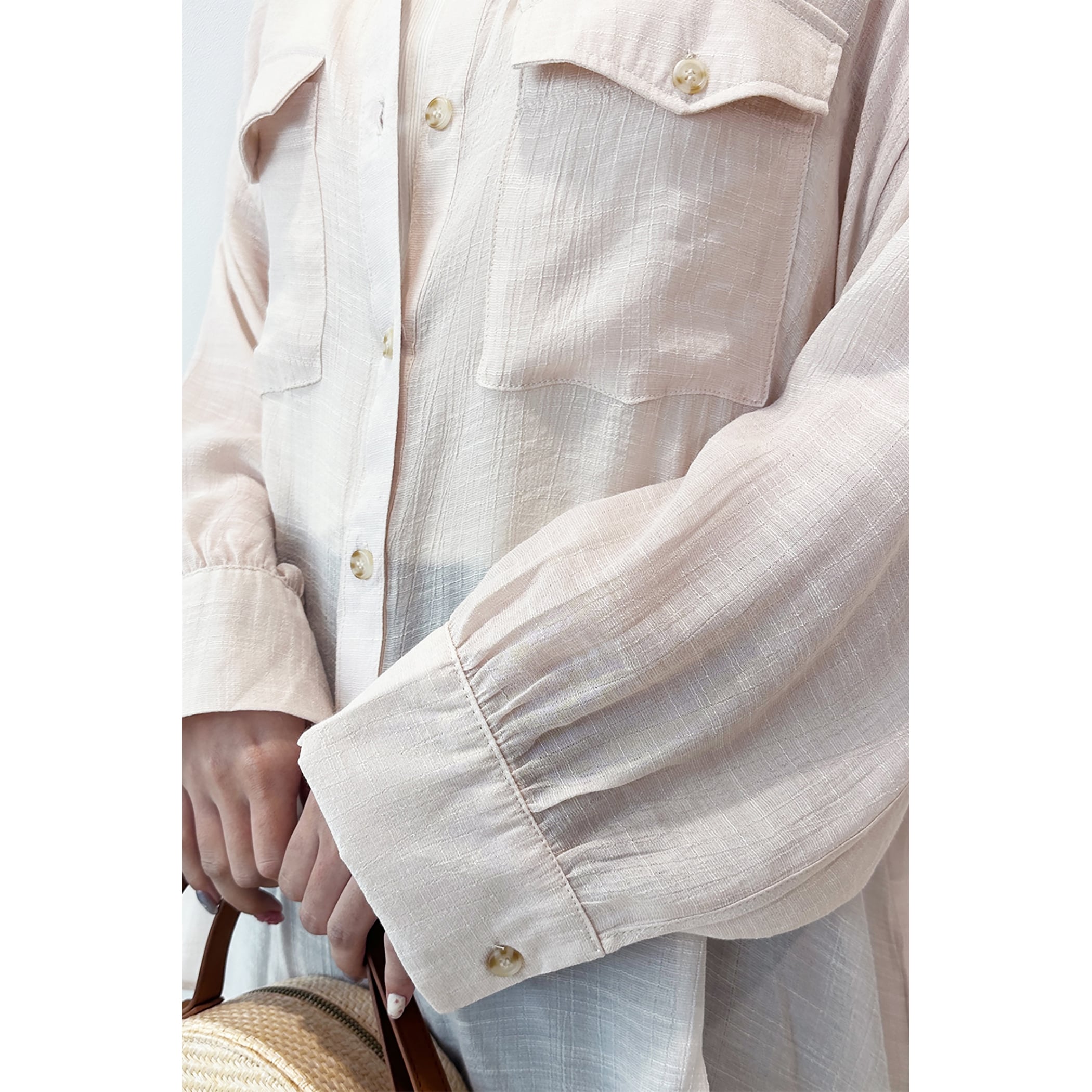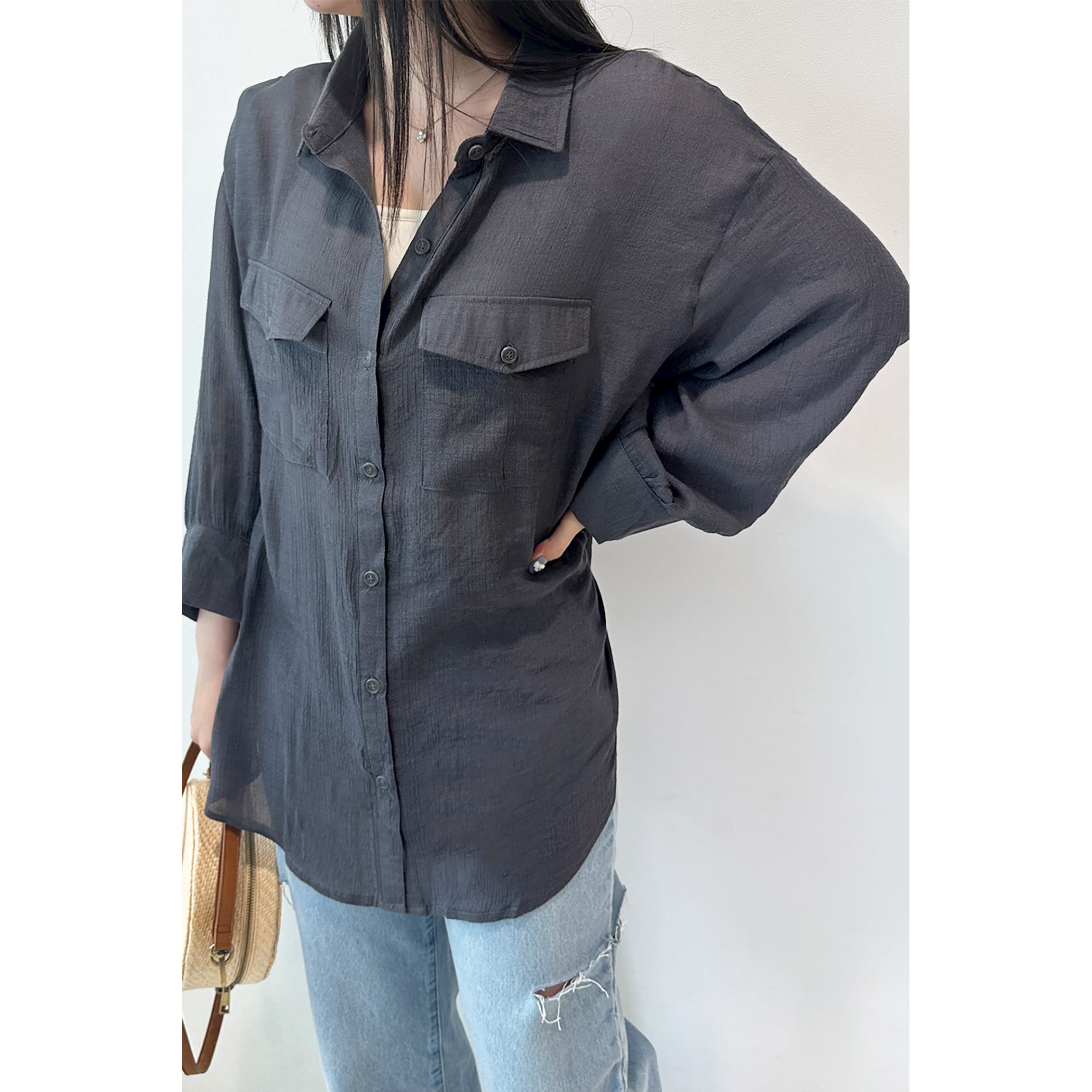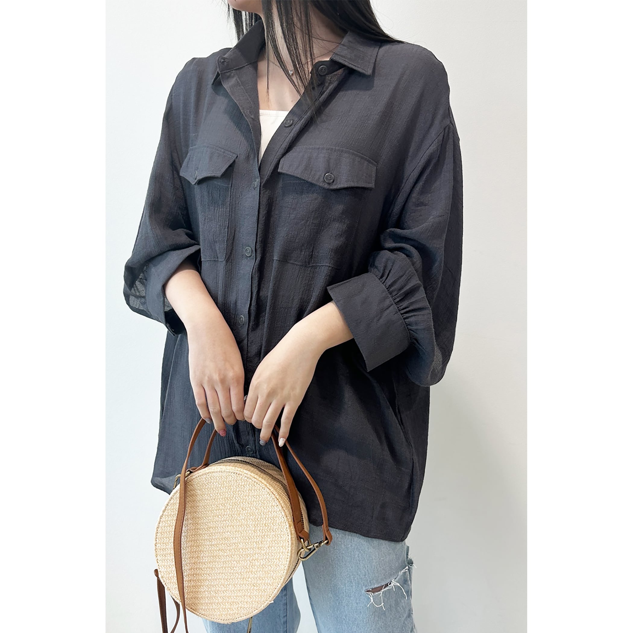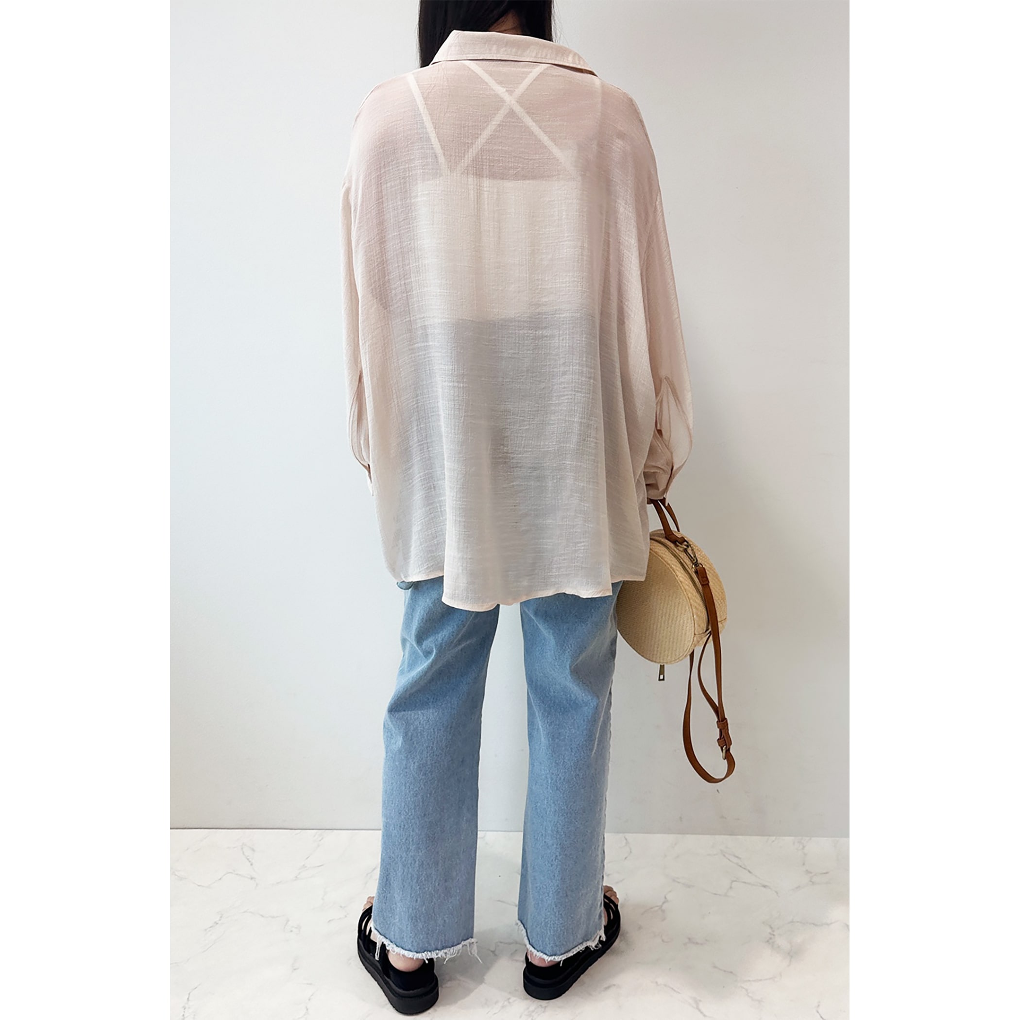 とろみのある軽やかな生地感で着心地もよく、シンプルなデザインで着回しが効くアイテム。袖口のスリットから手を出した着方も手元が映えてオススメ◎夏の日焼け対策・冷房対策としてもオススメです。