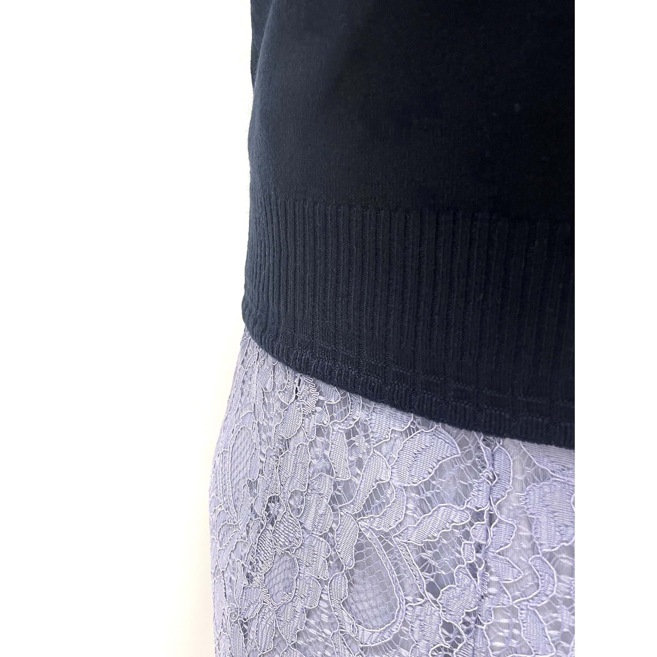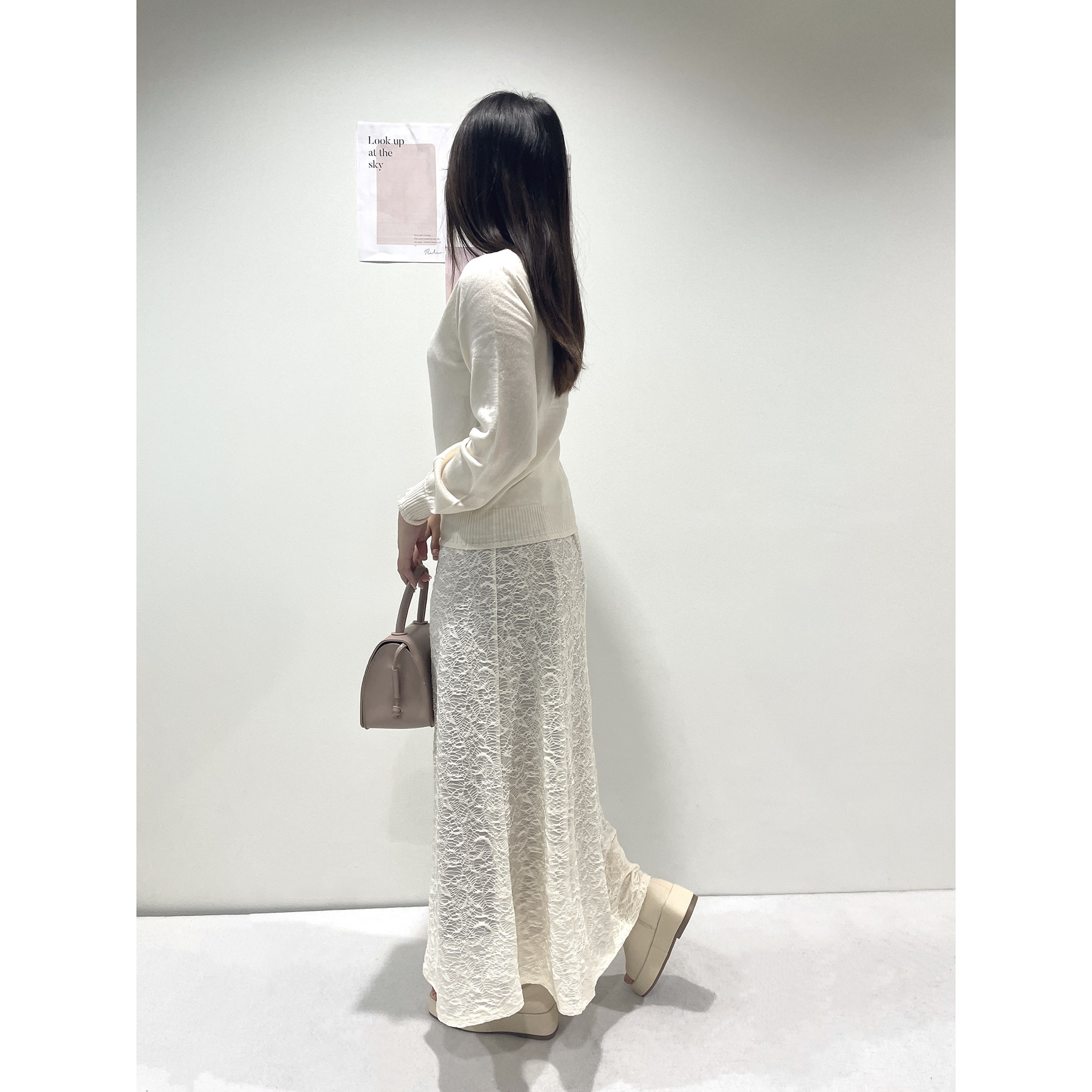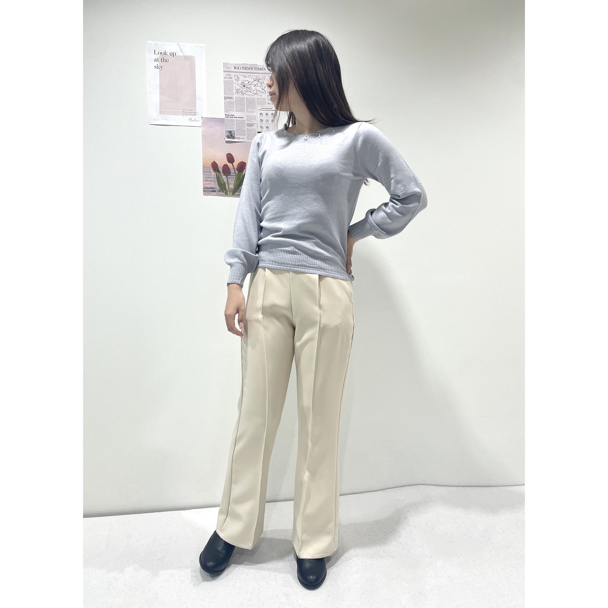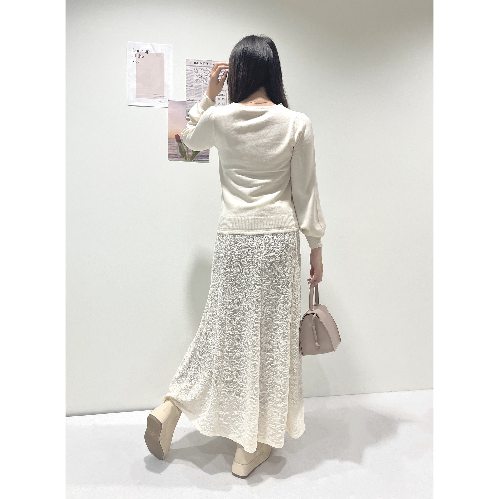 ビジューを飾ったスカラップの衿ぐりが華やかなプルオーバー。