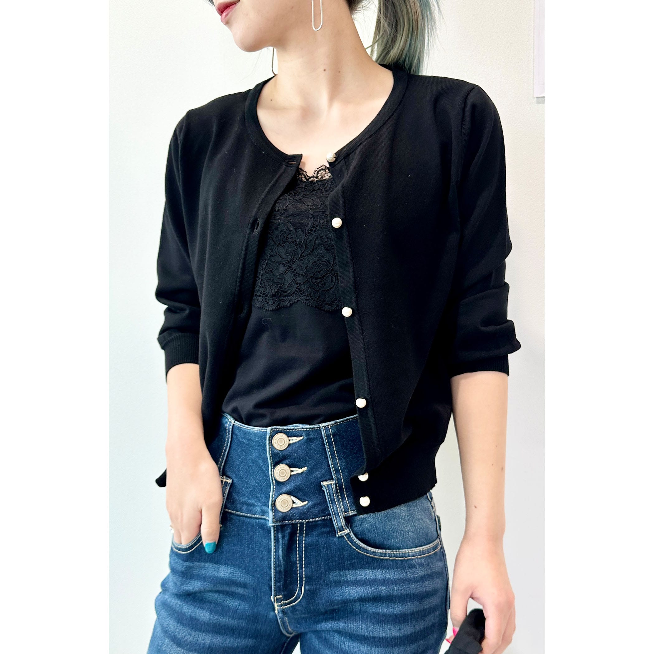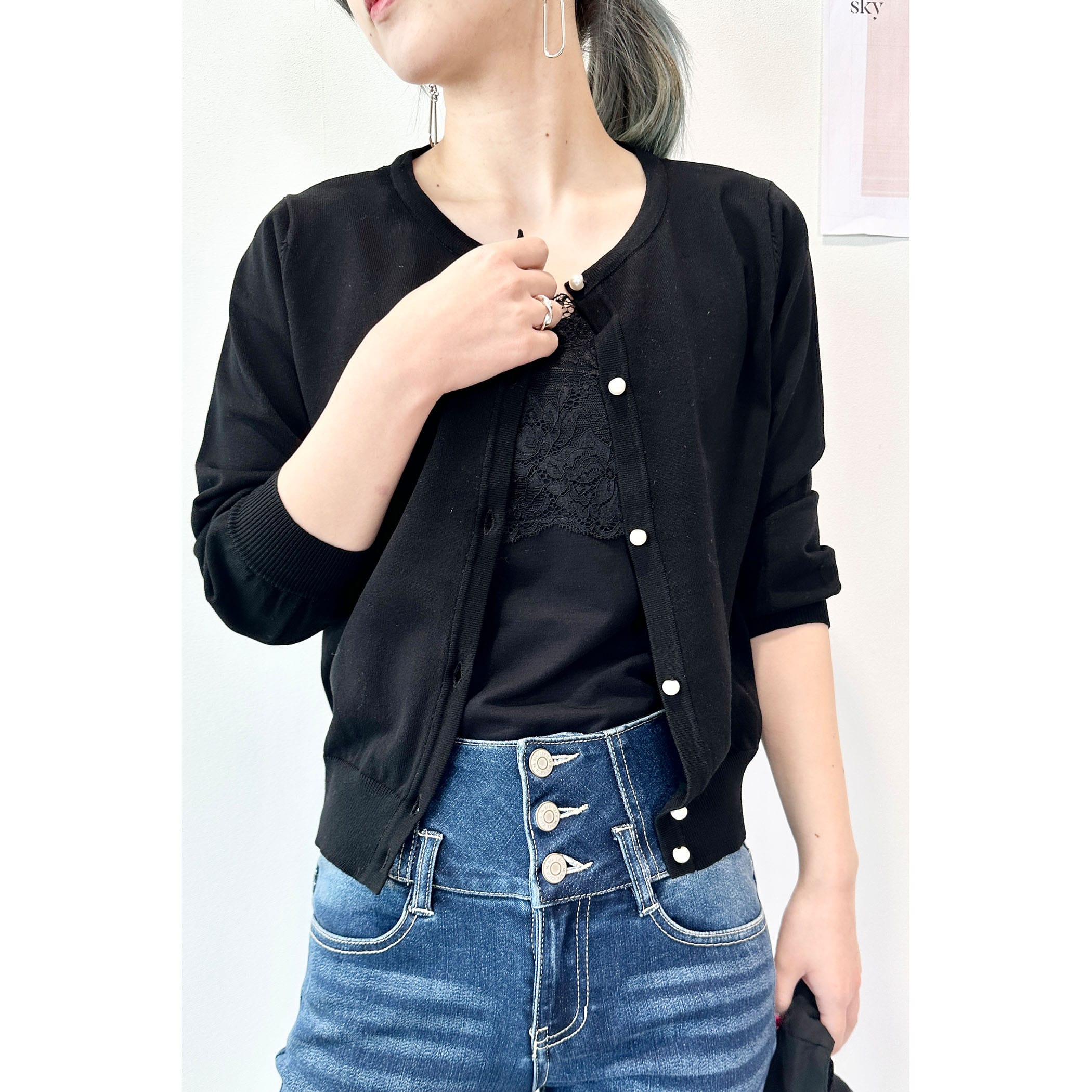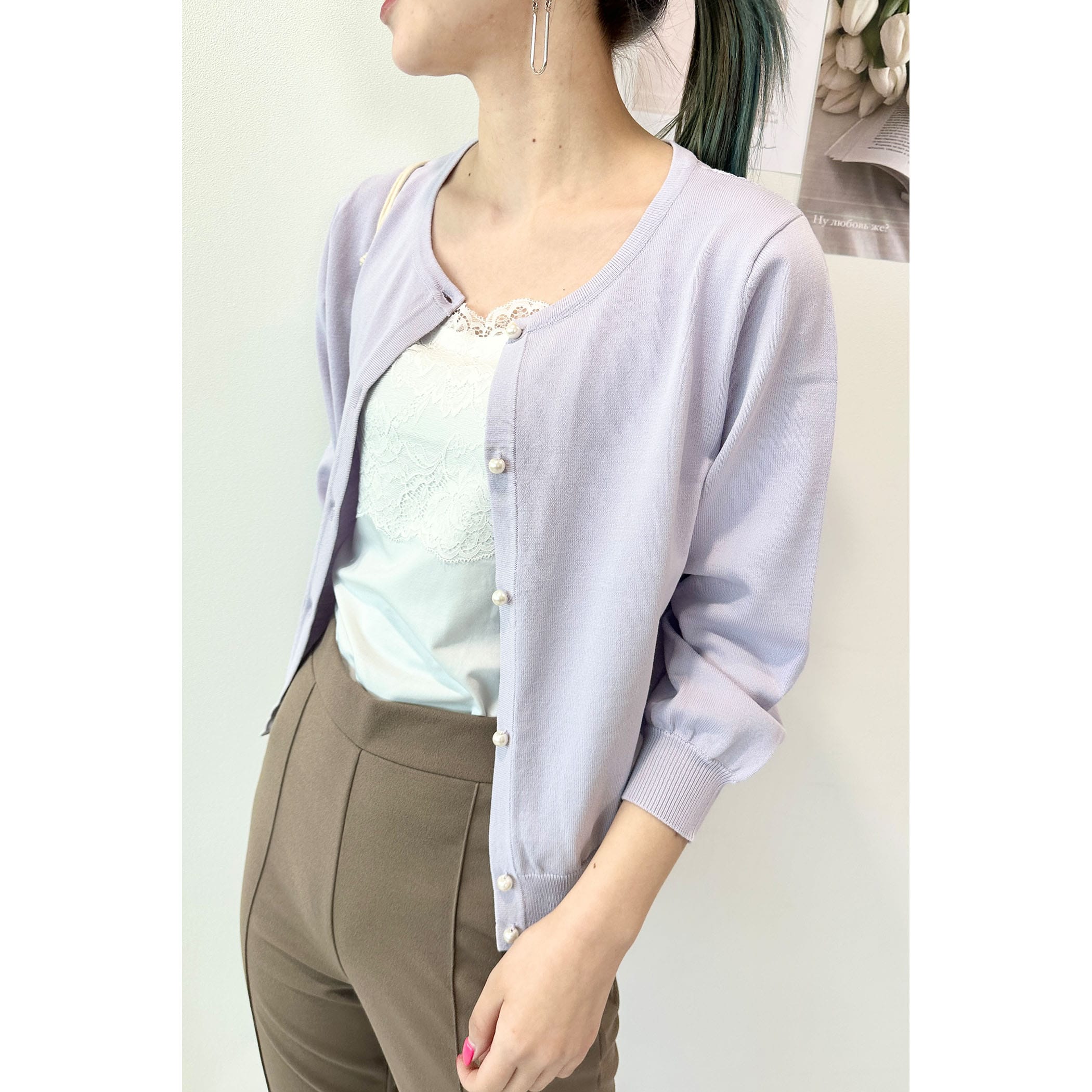 品のあるレースを贅沢に使用したきれいめカーディガン。フロント部分のパールボタンで抜け目ない愛らしい印象に。360°女性らしく、コーディネートを楽しめる一着です。短丈なのでバランスも取りやすい1枚です。ワンピースやロングスカート合わせがおすすめです。