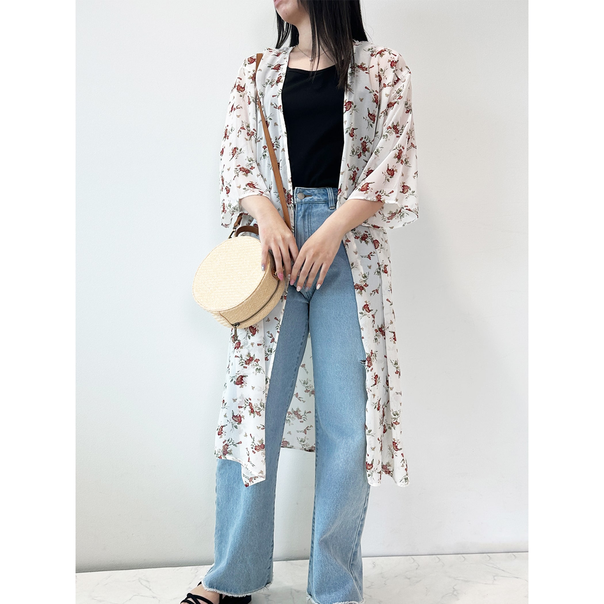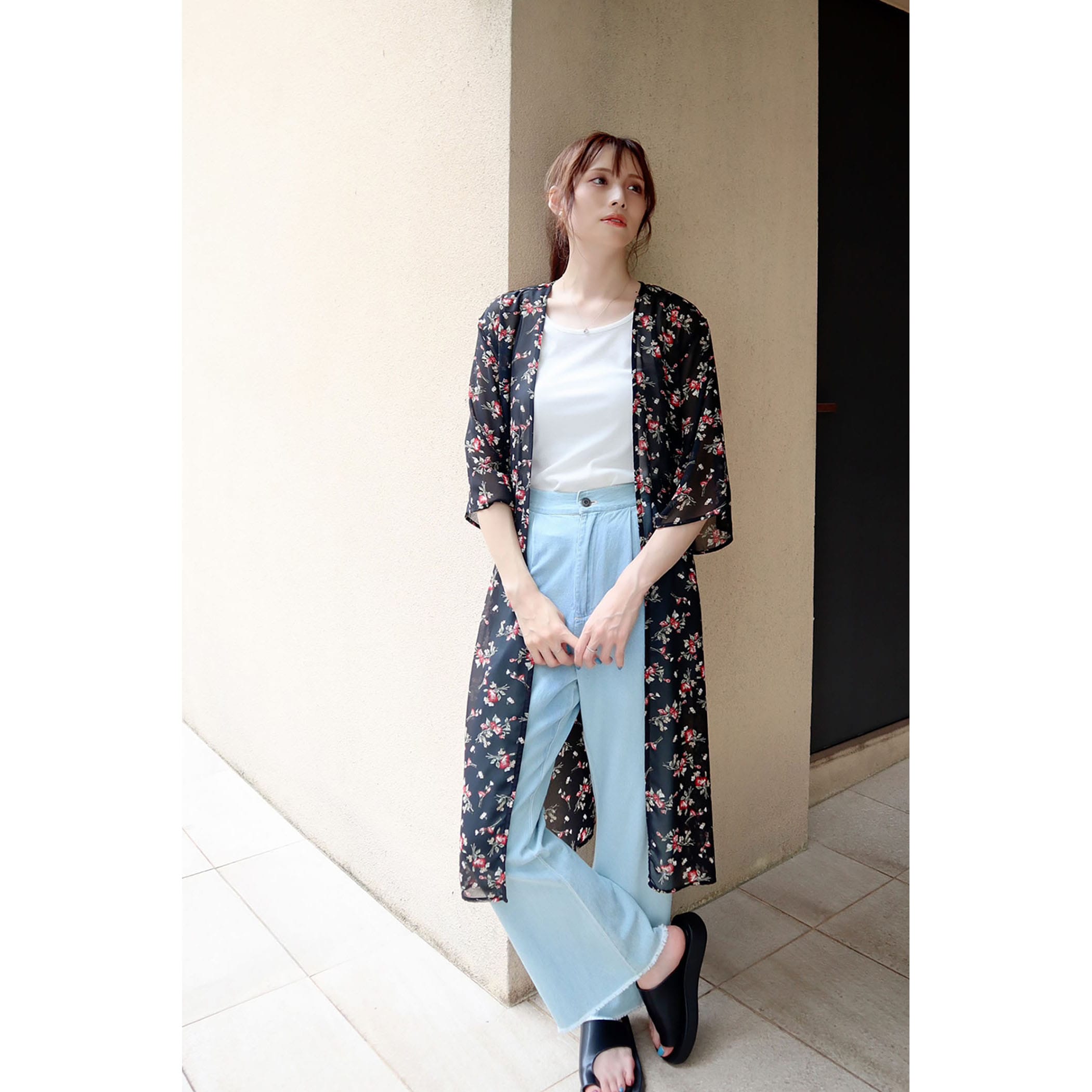 さらっと羽織るだけでオシャレに決まるロングガウンとタンクのセット商品。ガウンはシフォン素材で細よい透け感があり、歩くだけでふんわりと広がり清涼感のあるアイテムです。パンツにもスカートにも合わせやすく、レイヤードするアイテムによってカジュアル・フェミニン・クールとどんなテイストにもコーディネートしやすいアイテムです。